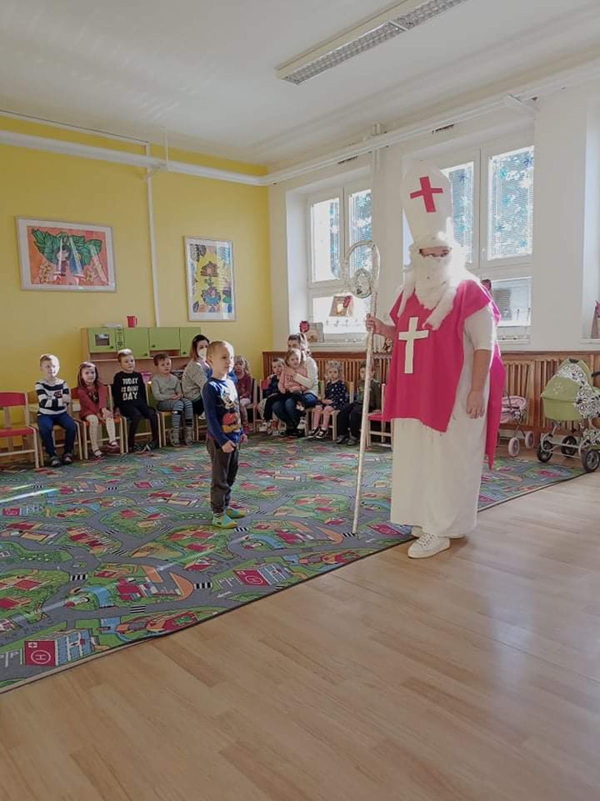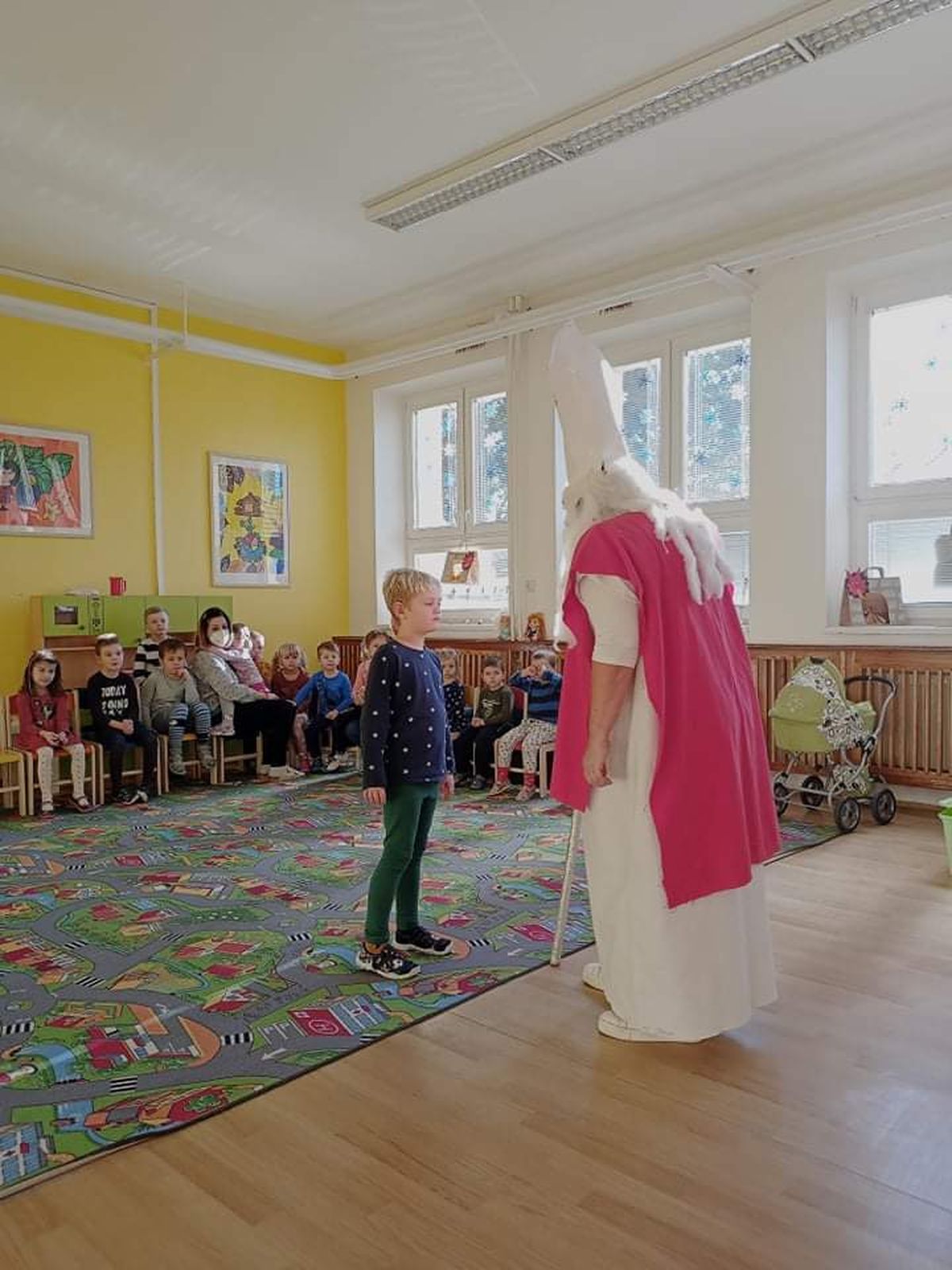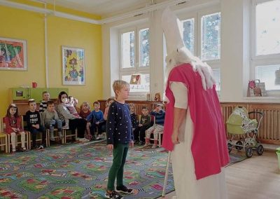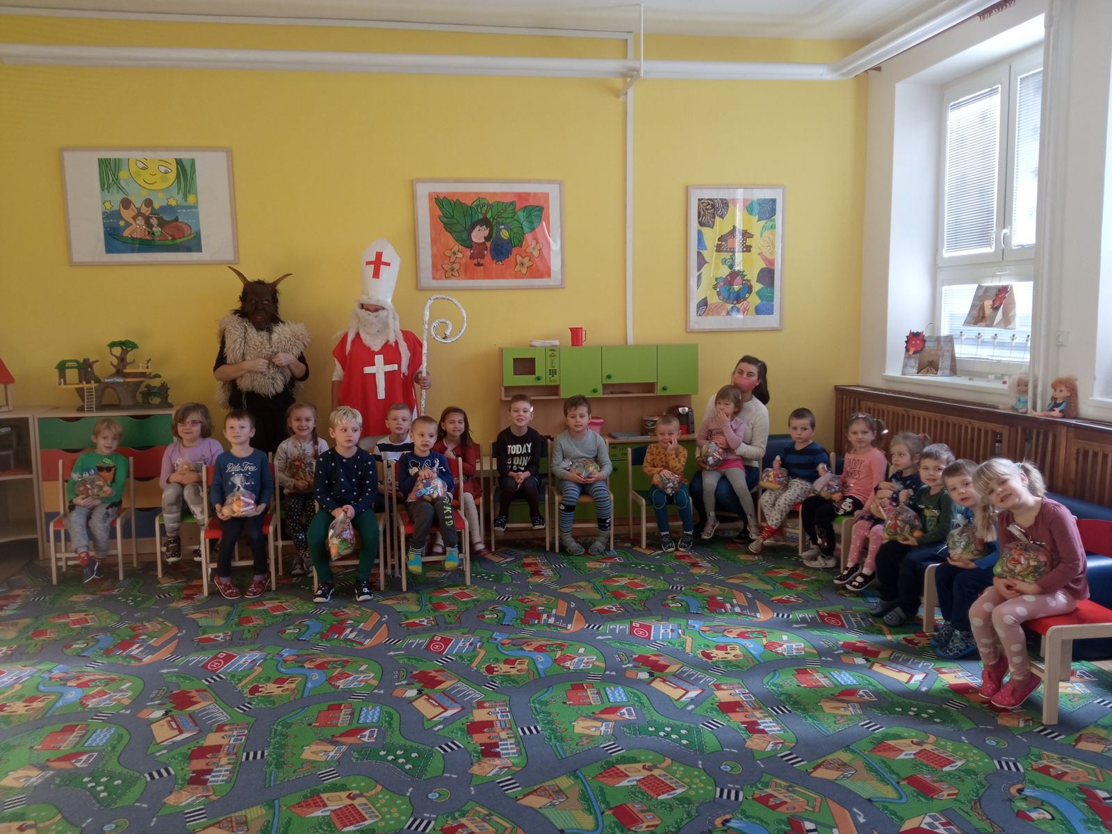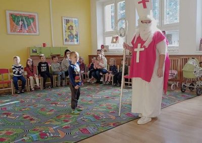 A přece přišel…6. Pro, 2020 | Mateřská škola Kdo? No přece Mikuláš a čert. V pátek 3. 12. 2021 do naší školky sice neočekávaně, ale přece dorazil Mikuláš s čertem. Děti ho potěšily básničkami i písničkami. Za to je odměnil balíčkem dobrot a ovoce.