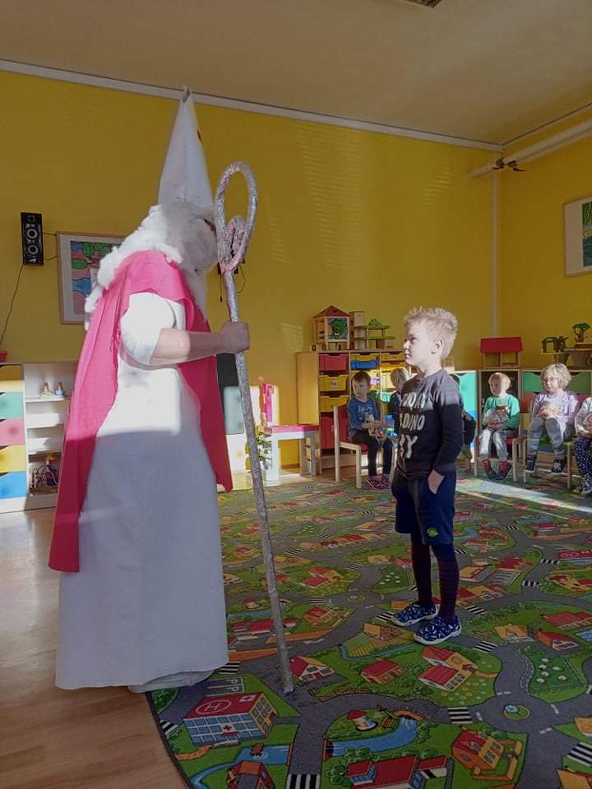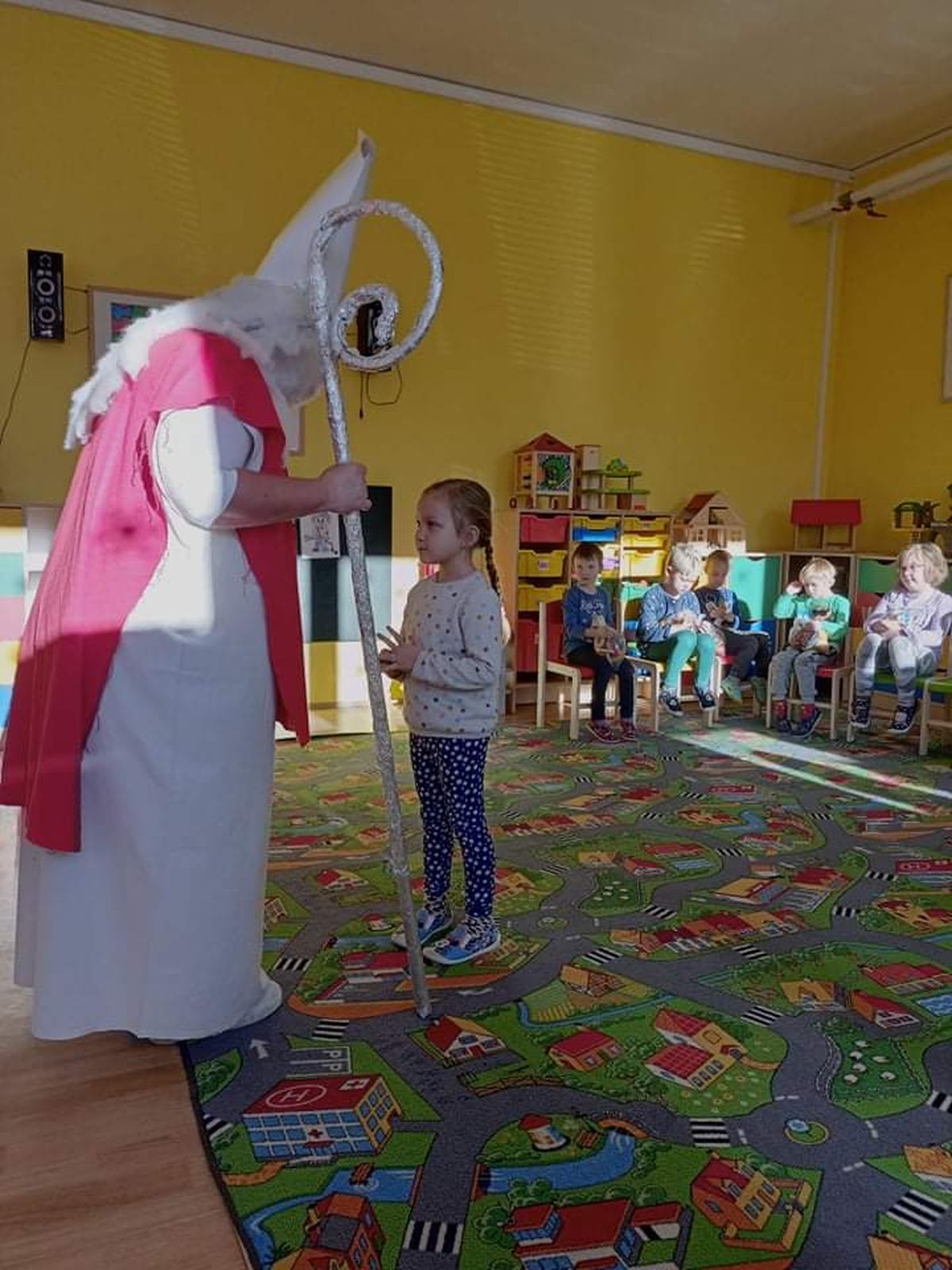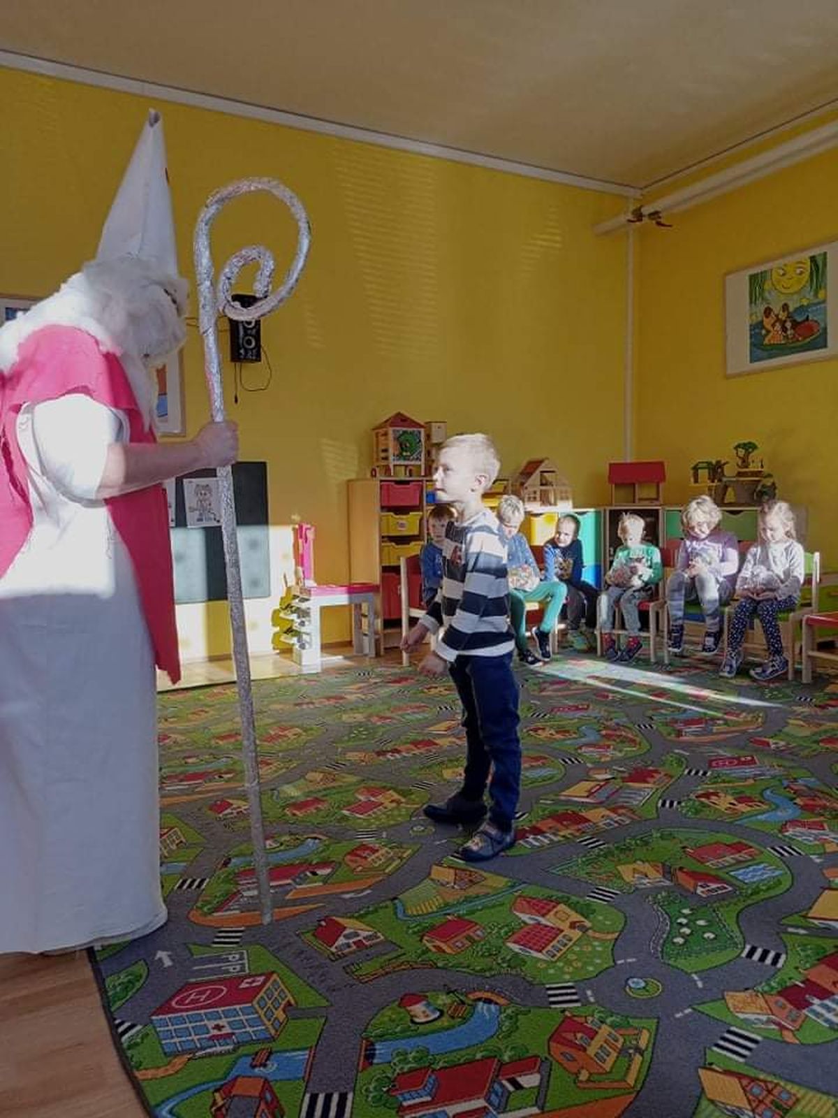 A přece přišel…6. Pro, 2020 | Mateřská škola Kdo? No přece Mikuláš a čert. V pátek 3. 12. 2021 do naší školky sice neočekávaně, ale přece dorazil Mikuláš s čertem. Děti ho potěšily básničkami i písničkami. Za to je odměnil balíčkem dobrot a ovoce.