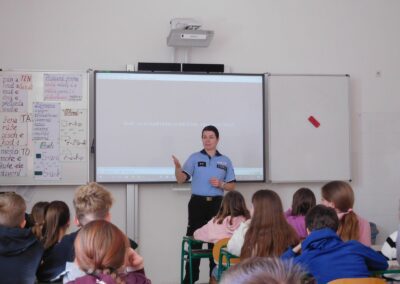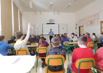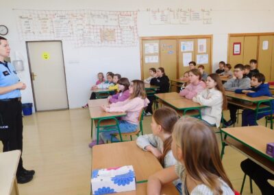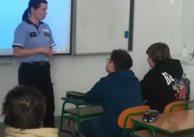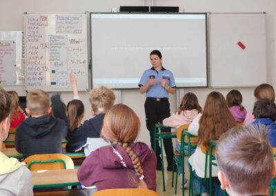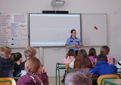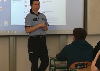 Ve středu 3. dubna navštívila naši školu por. Bc. Miroslava Šimoníková z oddělení prevence Policie ČR. Pro žáky 5. a 8. ročníku si připravila besedu na téma kybernetického bezpečí. Žáci se dozvěděli, jaké nebezpečí jim hrozí v kyberprostoru a jak se v něm bezpečně pohybovat.
