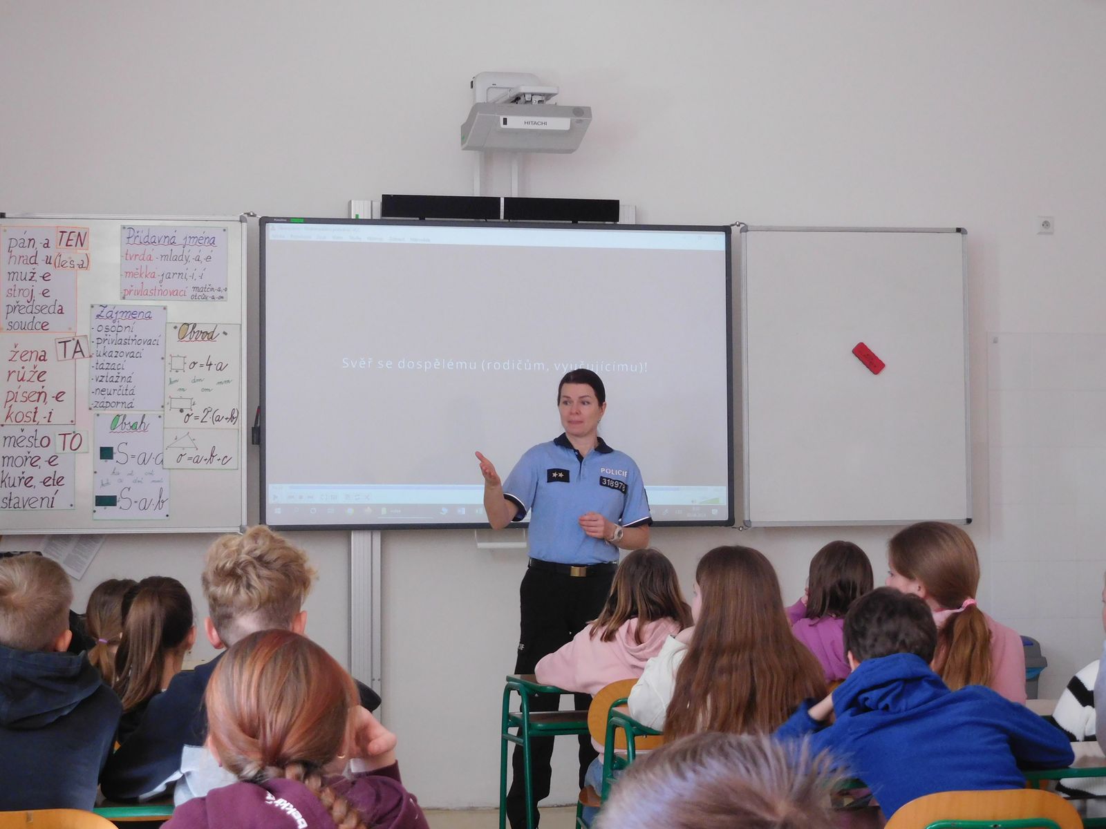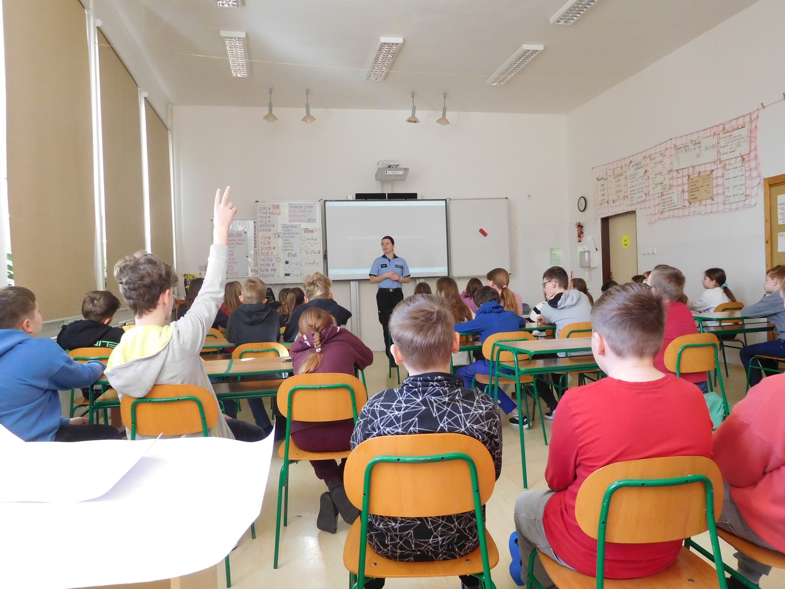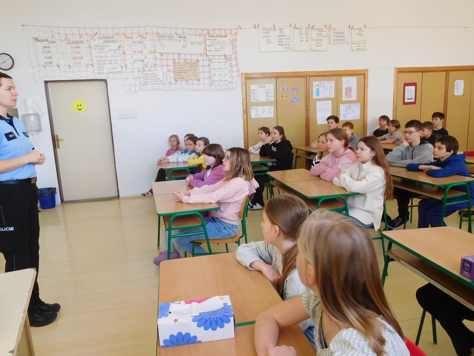 Ve středu 3. dubna navštívila naši školu por. Bc. Miroslava Šimoníková z oddělení prevence Policie ČR. Pro žáky 5. a 8. ročníku si připravila besedu na téma kybernetického bezpečí. Žáci se dozvěděli, jaké nebezpečí jim hrozí v kyberprostoru a jak se v něm bezpečně pohybovat.