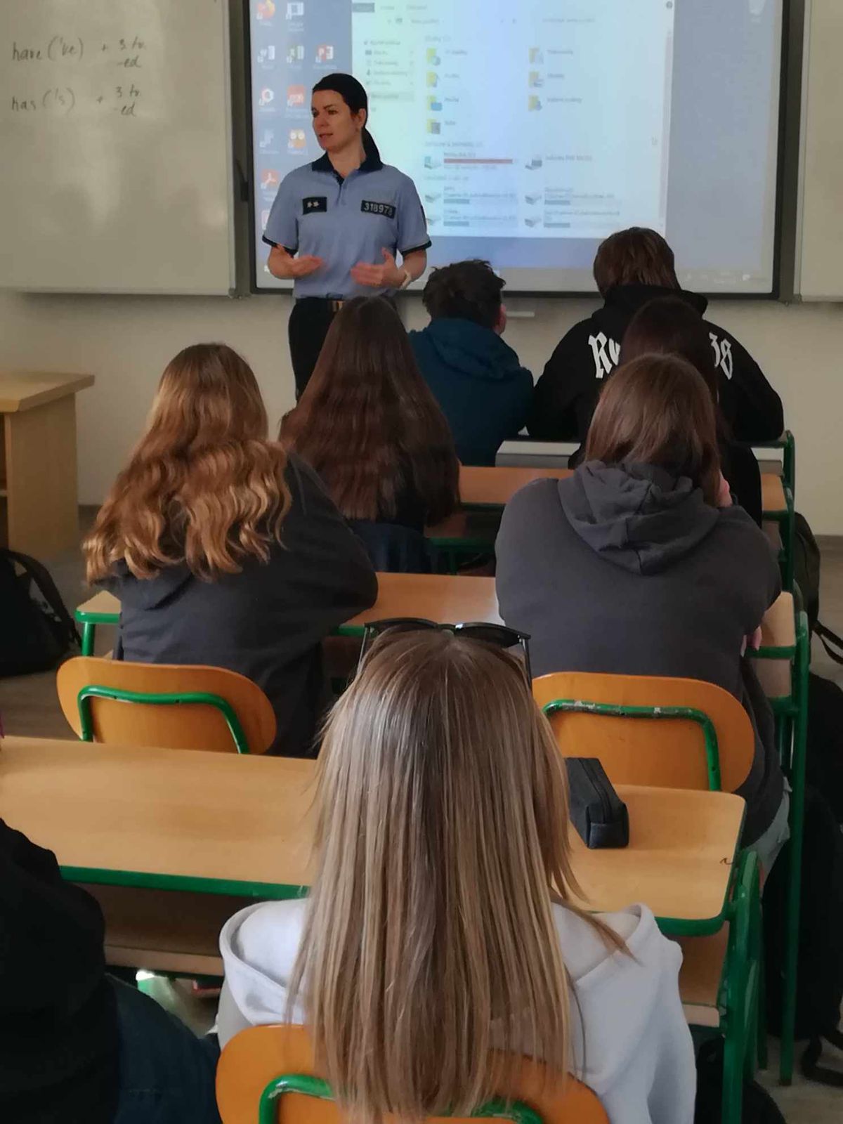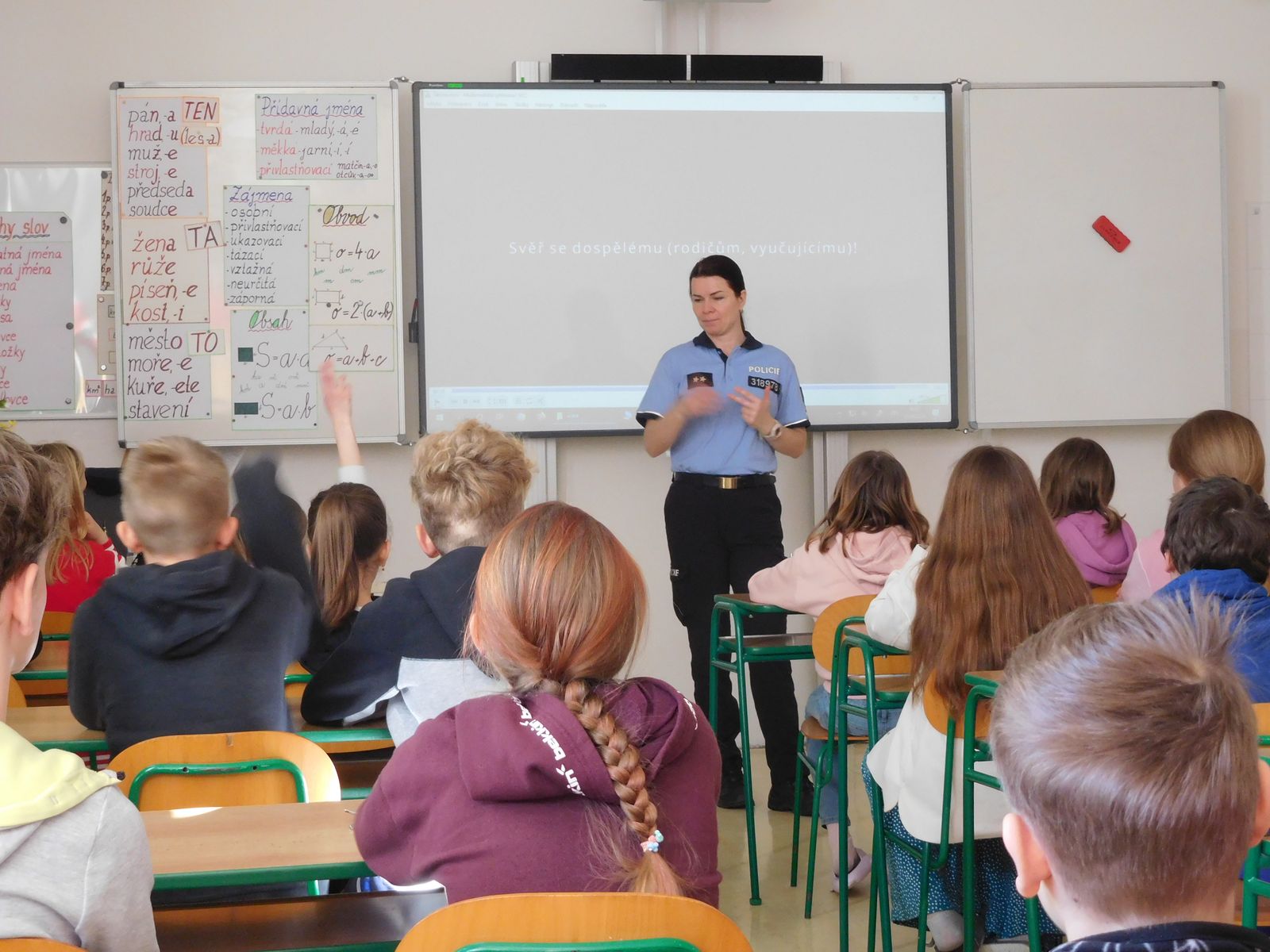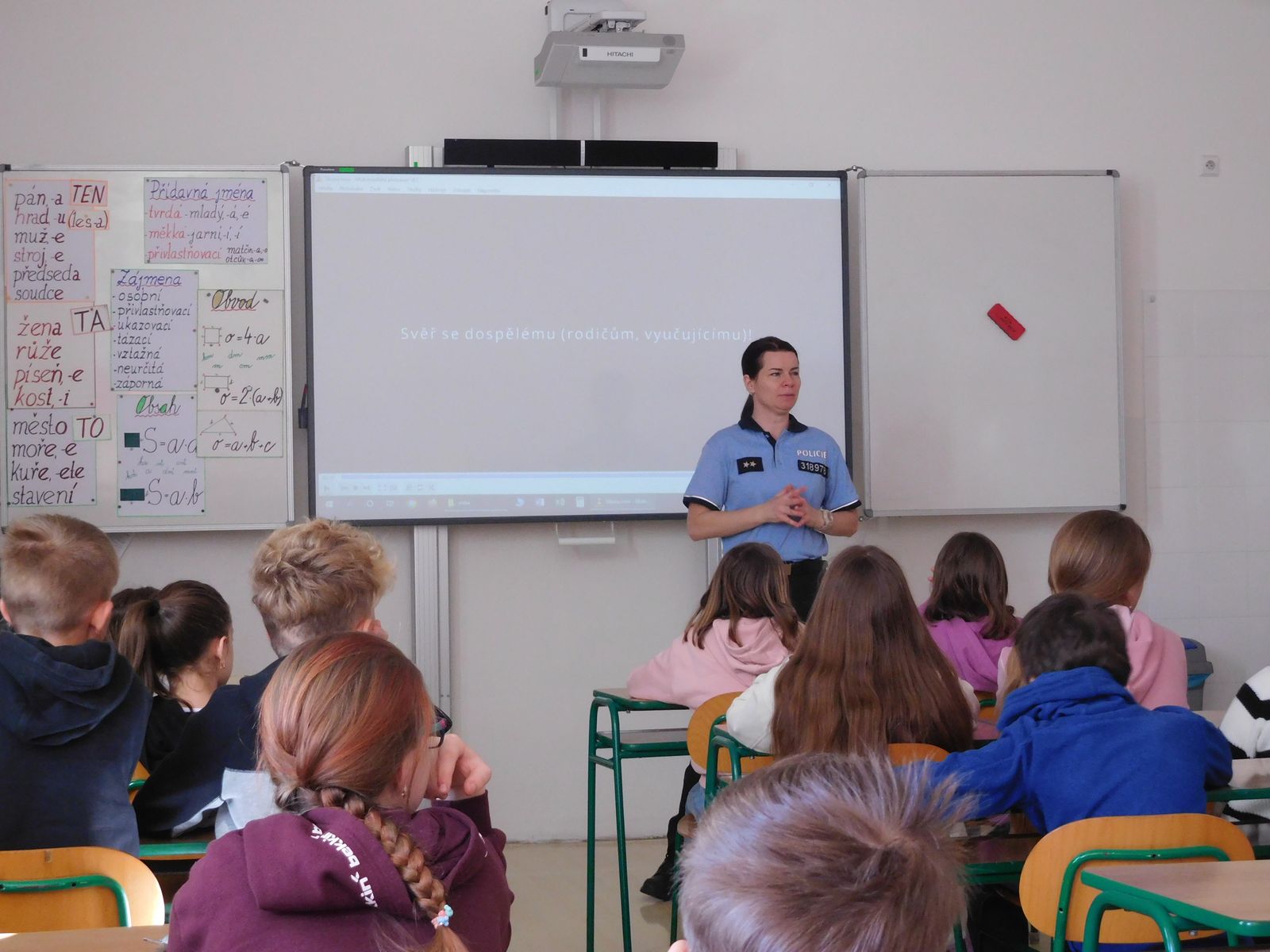 Ve středu 3. dubna navštívila naši školu por. Bc. Miroslava Šimoníková z oddělení prevence Policie ČR. Pro žáky 5. a 8. ročníku si připravila besedu na téma kybernetického bezpečí. Žáci se dozvěděli, jaké nebezpečí jim hrozí v kyberprostoru a jak se v něm bezpečně pohybovat.