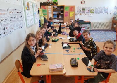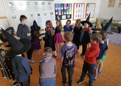 V úterý 30. 4. vletěly na Barborku čarodějnice ve svých kostýmech, a tak jsme si zpříjemnili výuku čarodějnickou tematikou. Nejdříve jsme si ve třídách vypracovali čarodějnické pracovní listy a pak už na nás čekala čtyři stanoviště. Na prvním jsme si povídali o zvycích a tradicích pálení čarodějnic, na druhém jsme se naučili písničku Čárymáry lektvary, na třetím jsme si vyrobili černého kocoura a nakonec si zahráli čarodějnické pohybové hry. Celý den jsme si užili a už se těšíme na pálení čarodějnic s rodinou a kamarády.