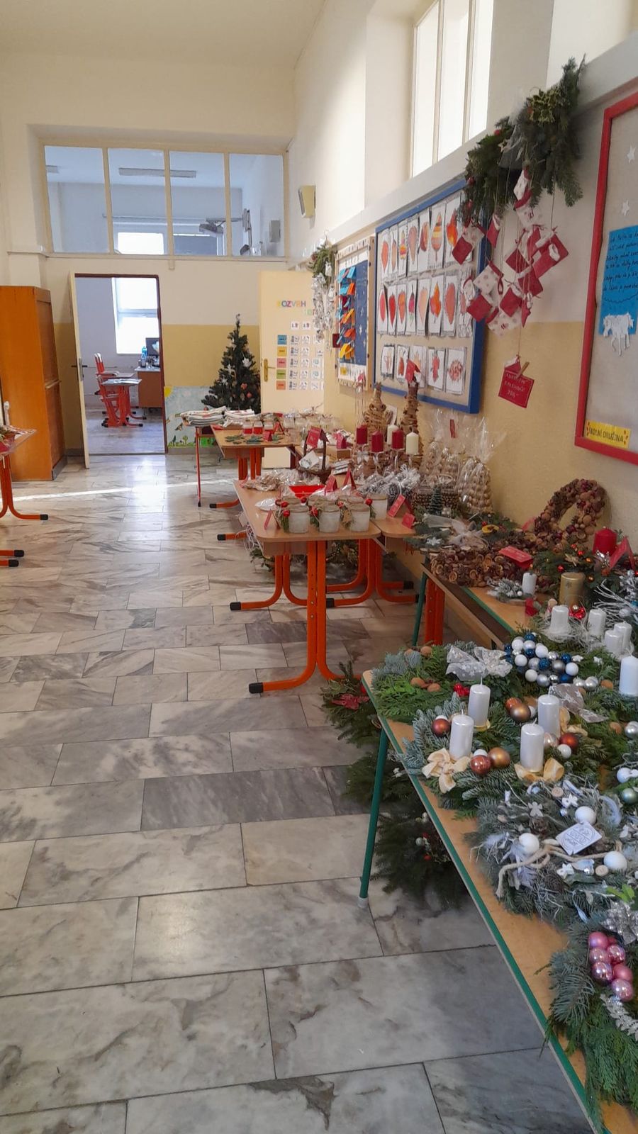 Velký úkol nás čekal v listopadu. Vyráběli jsme výrobky s vánoční tématikou, ty se prodávaly na vánočním jarmarku, který proběhl v rámci Dne otevřených dveří naší školy. Paní vychovatelky připravily také pro všechny návštěvníky krásnou vánoční tvořivou dílnu. Z peněz, které jsme na jarmarku utržili, jsme pořídili dětem nové hry, magický létající kruh a další vybavení družiny.