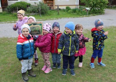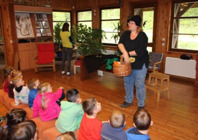 Čekal nás program: „Jak sedlák k žížale přišel“. Na pozadí pohádkového příběhu děti zjistily, co všechno dokáže žížala, prozkoumaly život v půdě opravdu zblízka a vyzkoušely originální pomůcky.