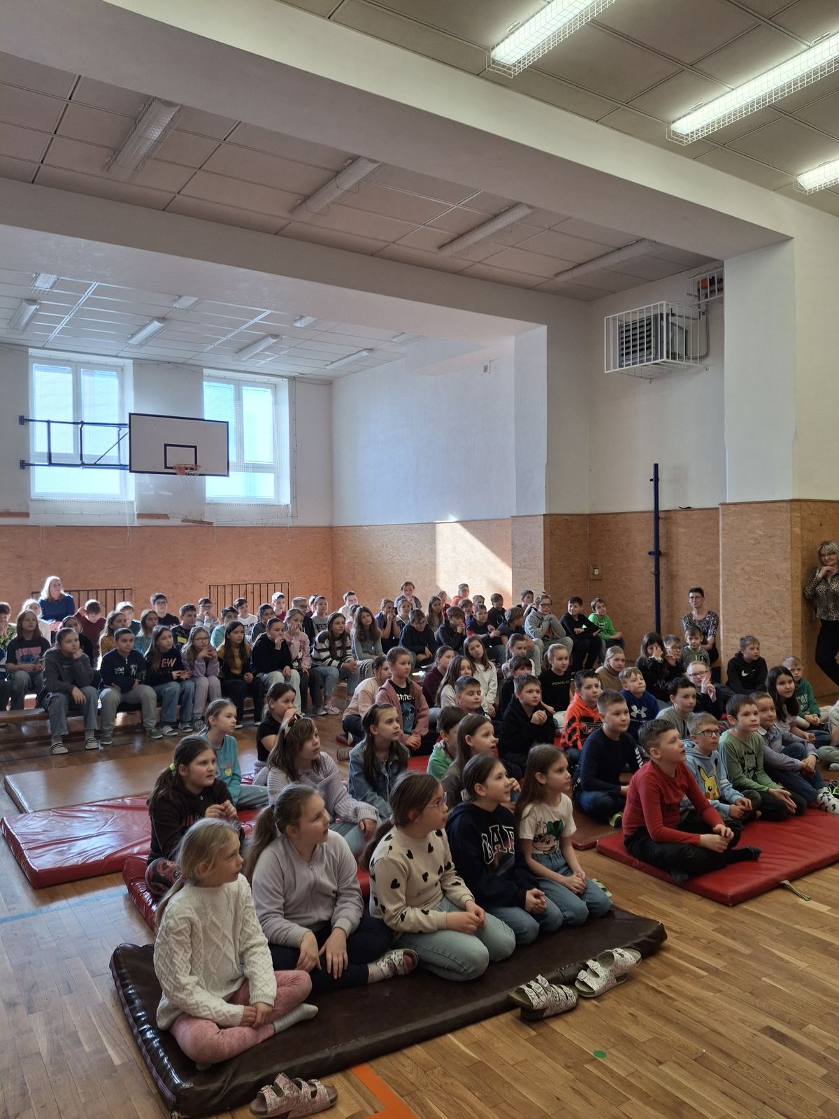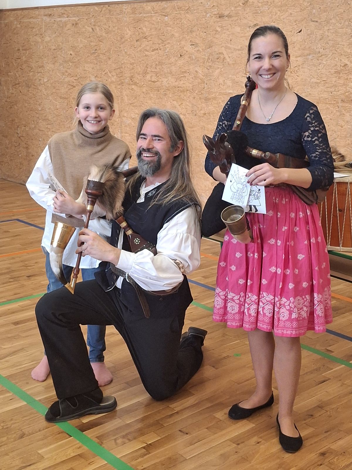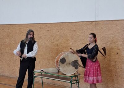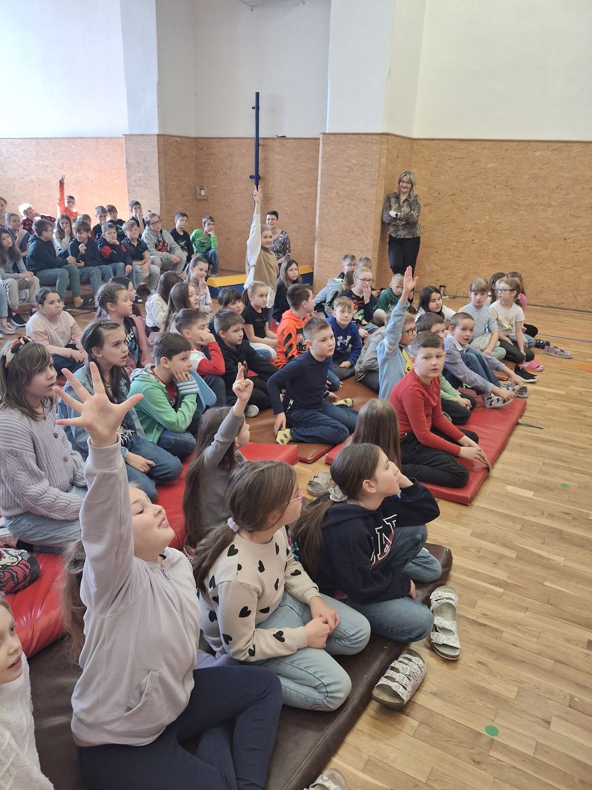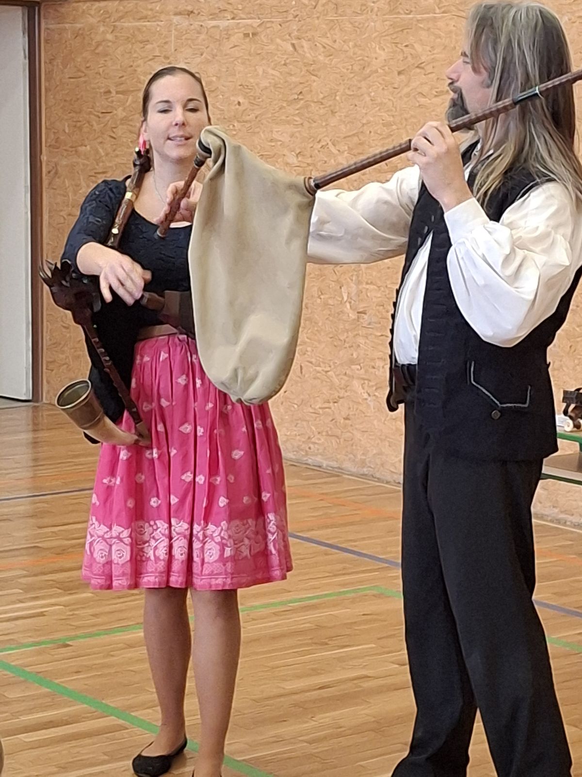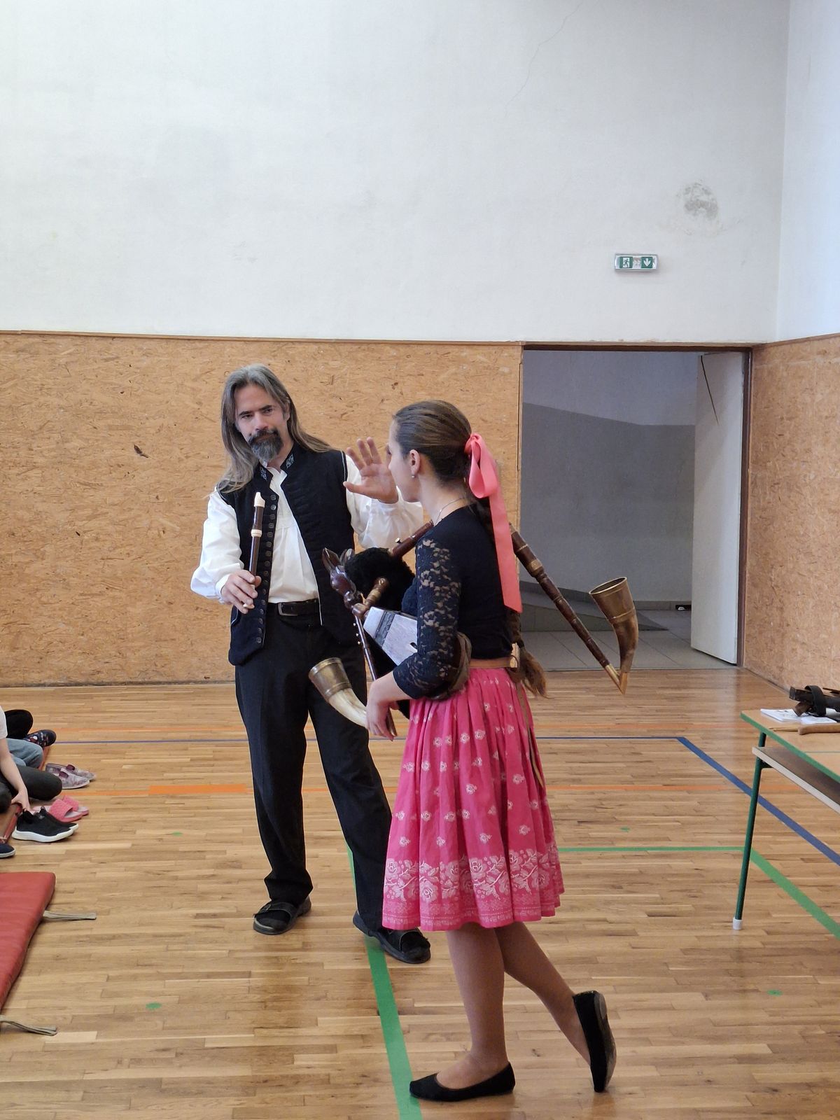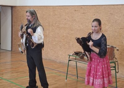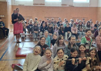 Ve čtvrtek 6. 3. za námi přijeli Dudáci – Ondřej a Lucie Tryhuci se svým programem. Pro děti z MŠ a žáky 1. – 6. ročníku si připravili hudební pásmo „S kozlíkem na cestách“, kde dětem představili neobvyklý hudební nástroj dudy. S kozlíkem, jak se říkalo českým dudám, se děti podívaly na dudy z celého světa a mohly jejich tvar i zvuk porovnat. Dětem byly představeny dudy z Chorvatska, Španělska, Skotska, Slovenska a našeho rodného Brna. Dudy doprovázel i velký buben. O další rytmiku se postaraly děti, kdy vytleskáváním a podupáváním doprovázely písničky. Dudáci hráli a zpívali lidové písničky i skladby z pohádek. Za správné odpovědi, kdy děti poznávaly melodie, dostaly autorské omalovánky. Ondřej Tryhuk a jeho manželka Lucie nám ukázali, že se na dudy dají hrát jak lidové písně, tak i moderní nebo klasická hudba.