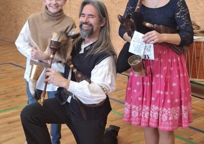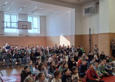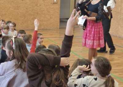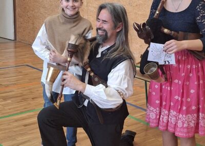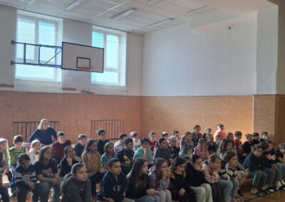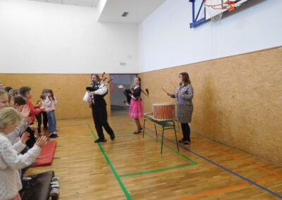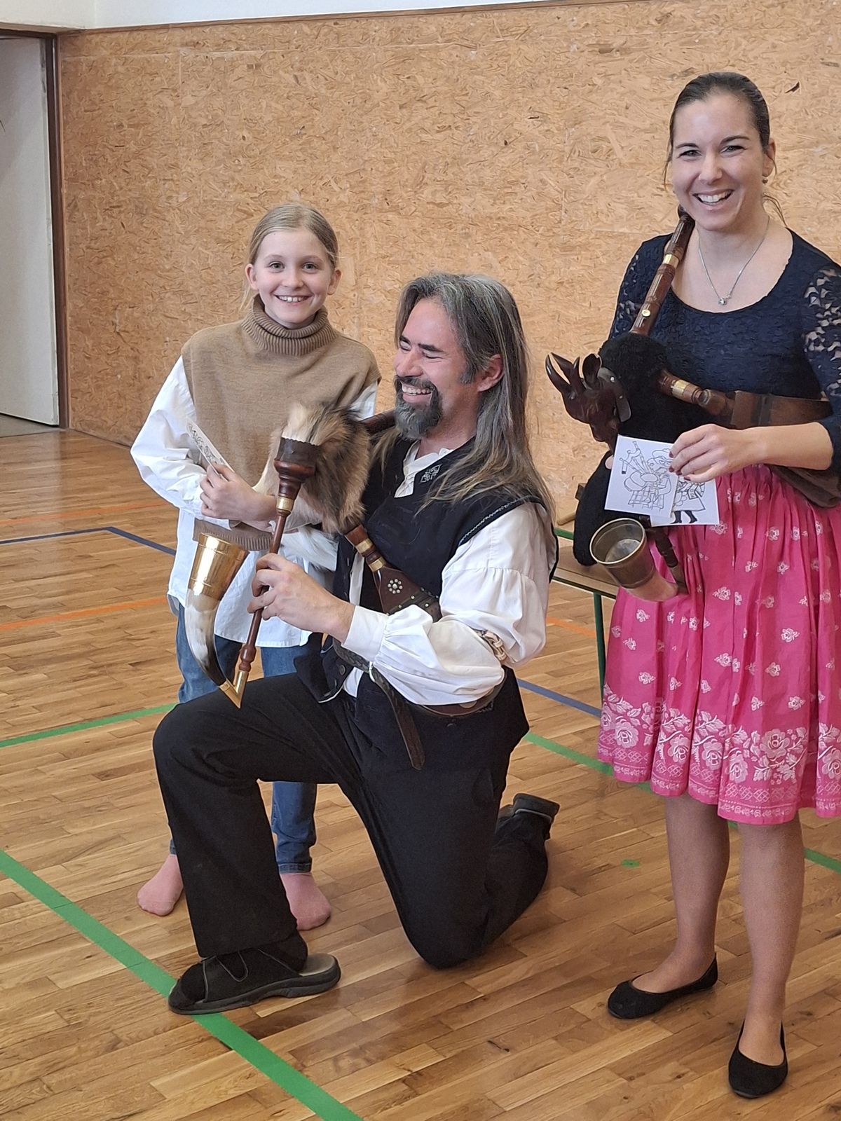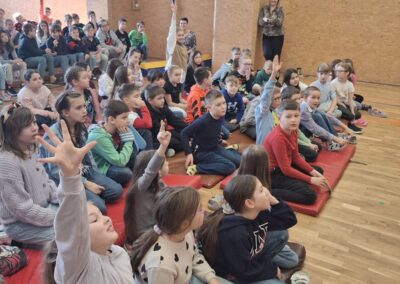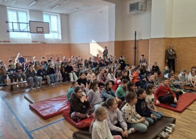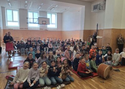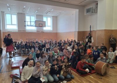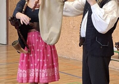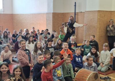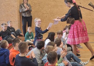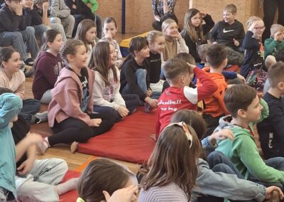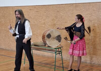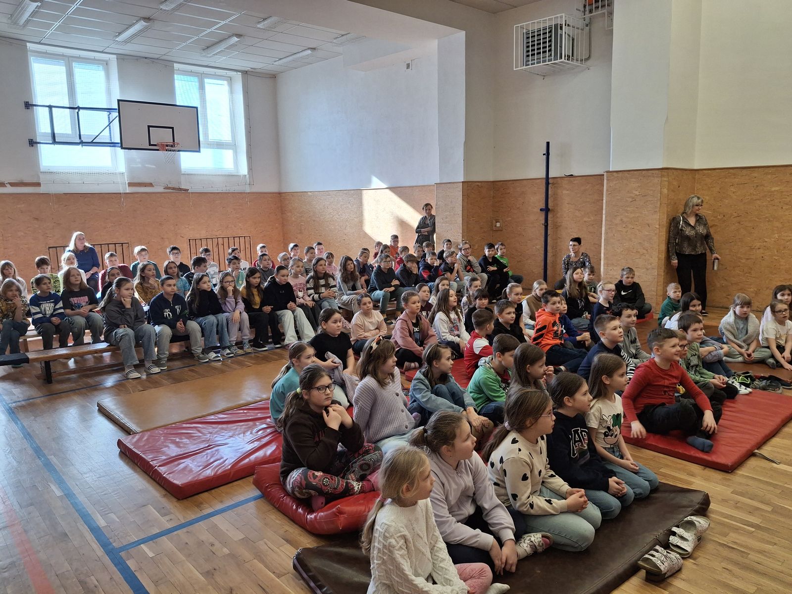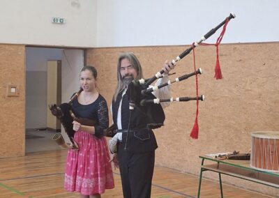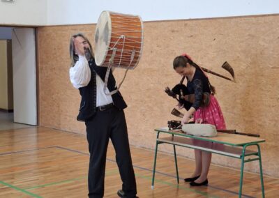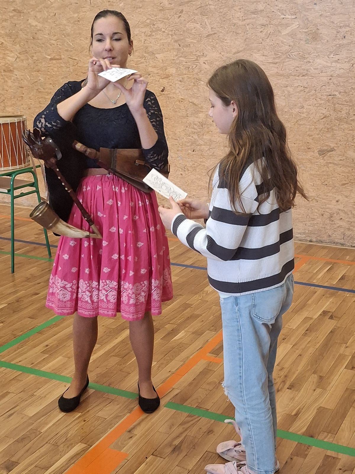Ve čtvrtek 6. 3. za námi přijeli Dudáci – Ondřej a Lucie Tryhuci se svým programem. Pro děti z MŠ a žáky 1. – 6. ročníku si připravili hudební pásmo „S kozlíkem na cestách“, kde dětem představili neobvyklý hudební nástroj dudy. S kozlíkem, jak se říkalo českým dudám, se děti podívaly na dudy z celého světa a mohly jejich tvar i zvuk porovnat. Dětem byly představeny dudy z Chorvatska, Španělska, Skotska, Slovenska a našeho rodného Brna. Dudy doprovázel i velký buben. O další rytmiku se postaraly děti, kdy vytleskáváním a podupáváním doprovázely písničky. Dudáci hráli a zpívali lidové písničky i skladby z pohádek. Za správné odpovědi, kdy děti poznávaly melodie, dostaly autorské omalovánky. Ondřej Tryhuk a jeho manželka Lucie nám ukázali, že se na dudy dají hrát jak lidové písně, tak i moderní nebo klasická hudba.