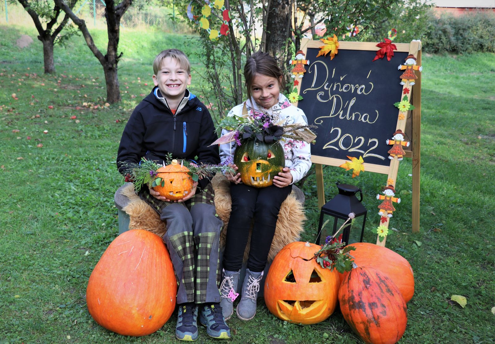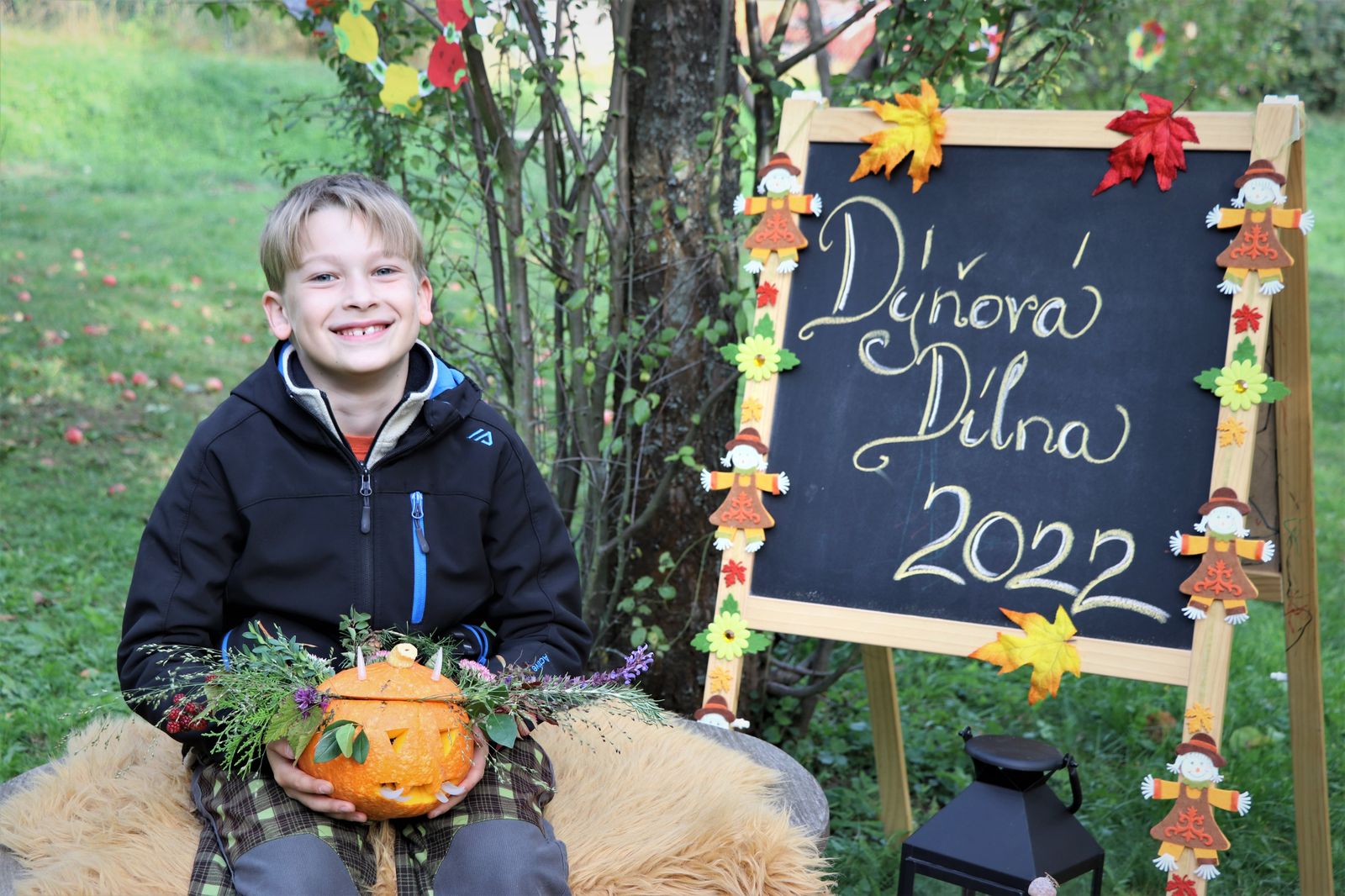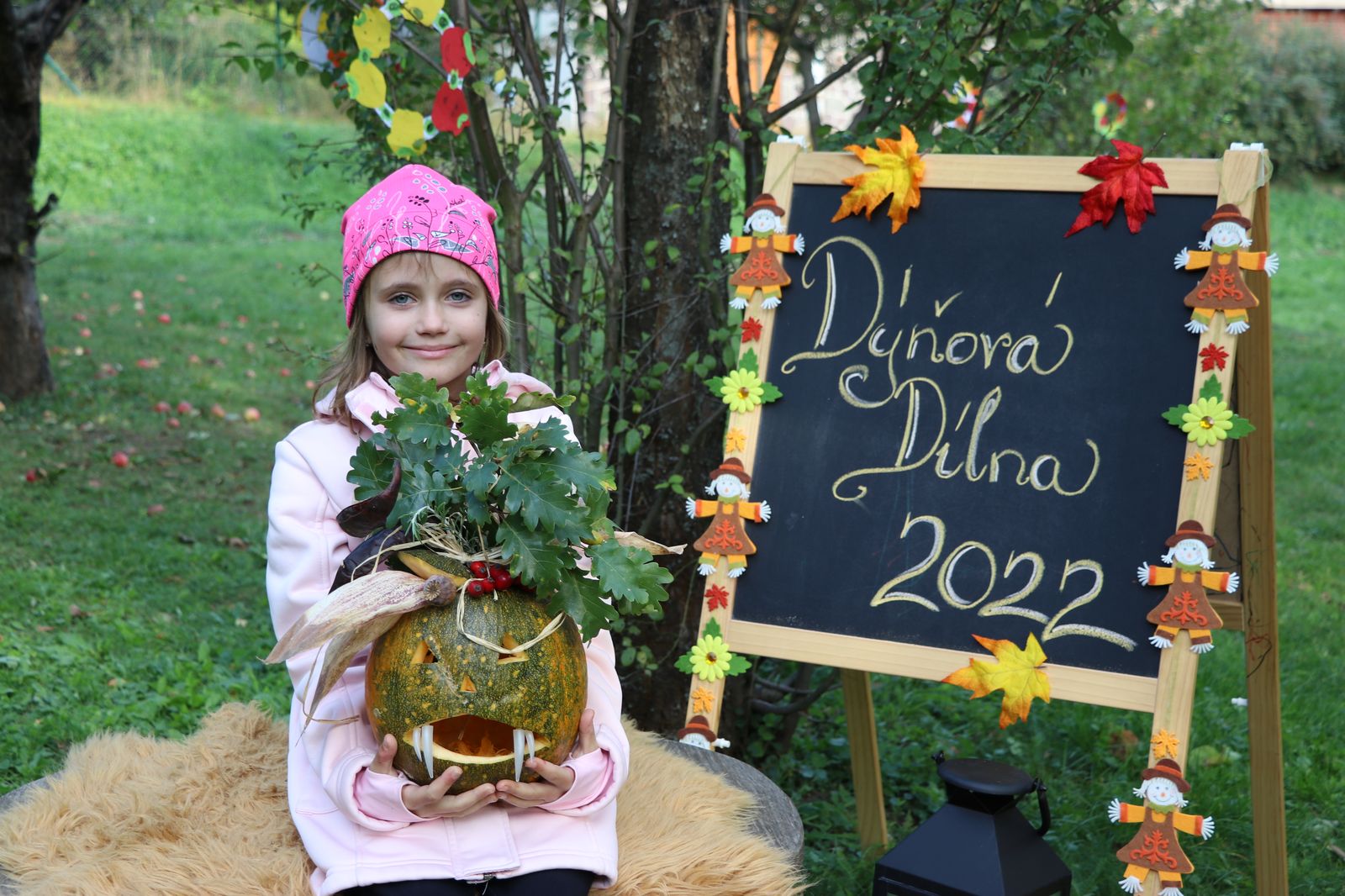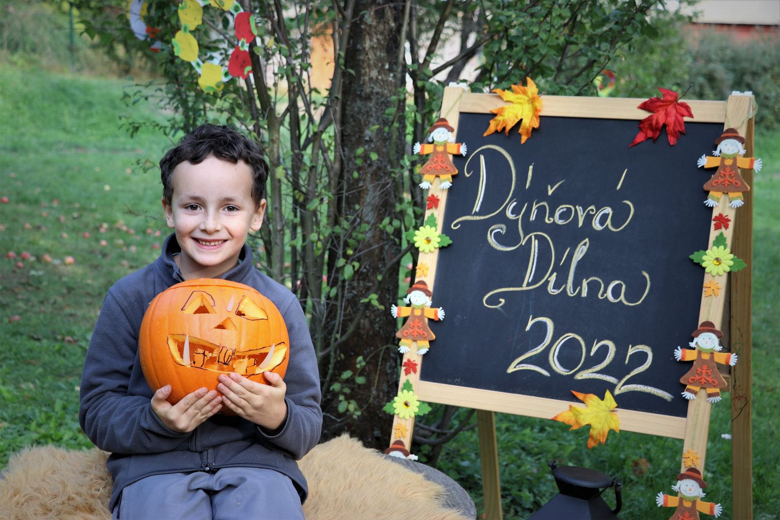 Letos všechno začalo na poli v Kupařovicích. Tímto bychom chtěli ještě jednou poděkovat paní Kratochvílové, která nám věnovala krásné dýně. Paní vychovatelky napekly dobroty a nazdobily školní zahradu. Ve čtvrtek 29. 9. v 16 hodin se zahrada zaplnila dětmi a jejich rodiči. Vyřezávání a zdobení dýní jsme si všichni užili. Děti se měly možnost vyfotit se svými výtvory v podzimním fotokoutku a pořídit si tak vzpomínku na dýňovou dílnu.