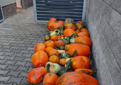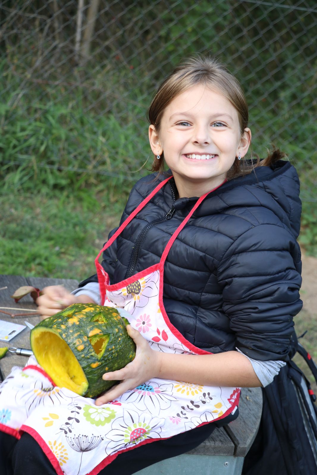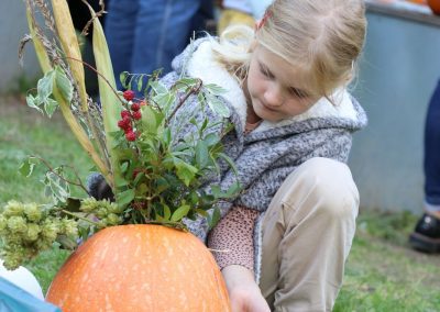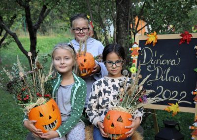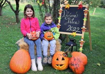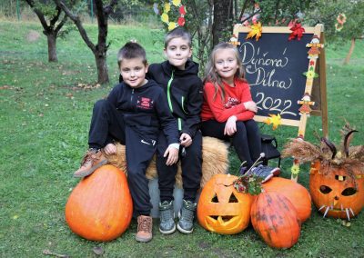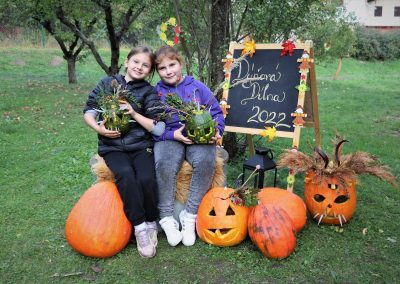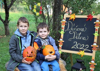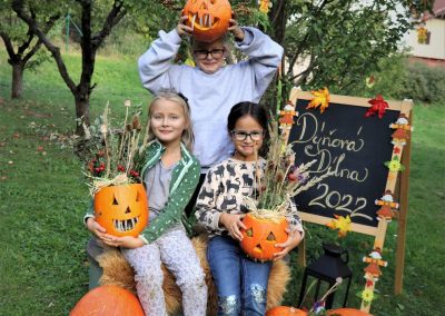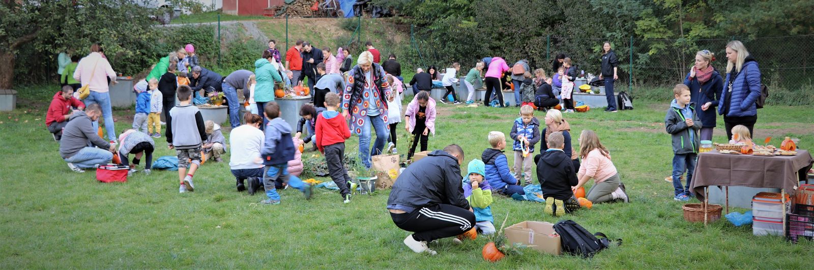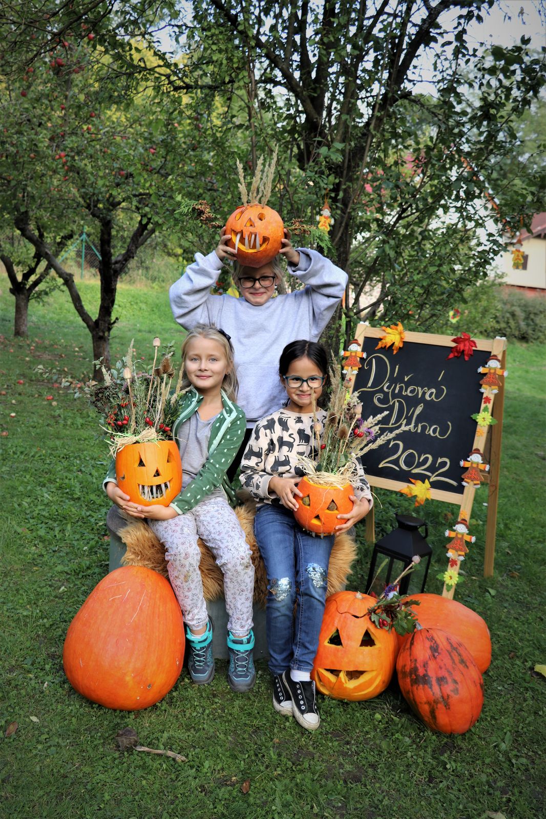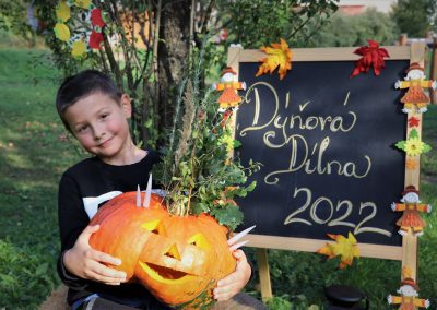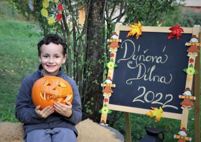 Letos všechno začalo na poli v Kupařovicích. Tímto bychom chtěli ještě jednou poděkovat paní Kratochvílové, která nám věnovala krásné dýně. Paní vychovatelky napekly dobroty a nazdobily školní zahradu. Ve čtvrtek 29. 9. v 16 hodin se zahrada zaplnila dětmi a jejich rodiči. Vyřezávání a zdobení dýní jsme si všichni užili. Děti se měly možnost vyfotit se svými výtvory v podzimním fotokoutku a pořídit si tak vzpomínku na dýňovou dílnu.