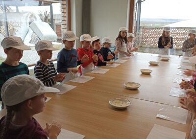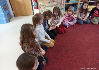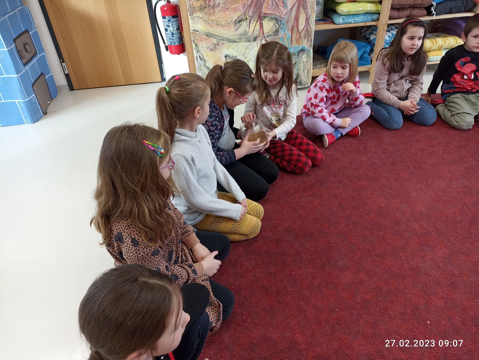 V pondělí 27. února 2023 jsme se vydali opět do Velkých Pavlovic na krásný výukový program Cesta chleba na náš stůl, kde se děti prožitkem seznámily s růstem obilí od zrníčka až po upečení pečiva. Poznaly různé druhy obilí a k čemu se využívají, jaké nástroje se používaly dříve a jak dnešní stroje ulehčují lidem na poli práci, a nakonec si i upekly svůj chlebánek. Více ve fotogalerii.