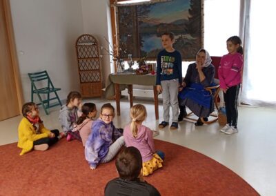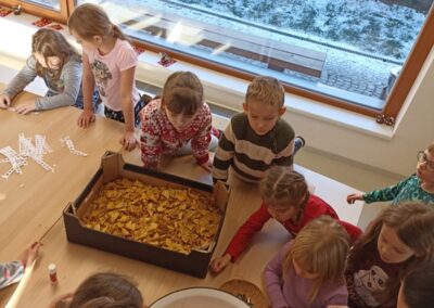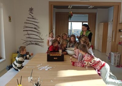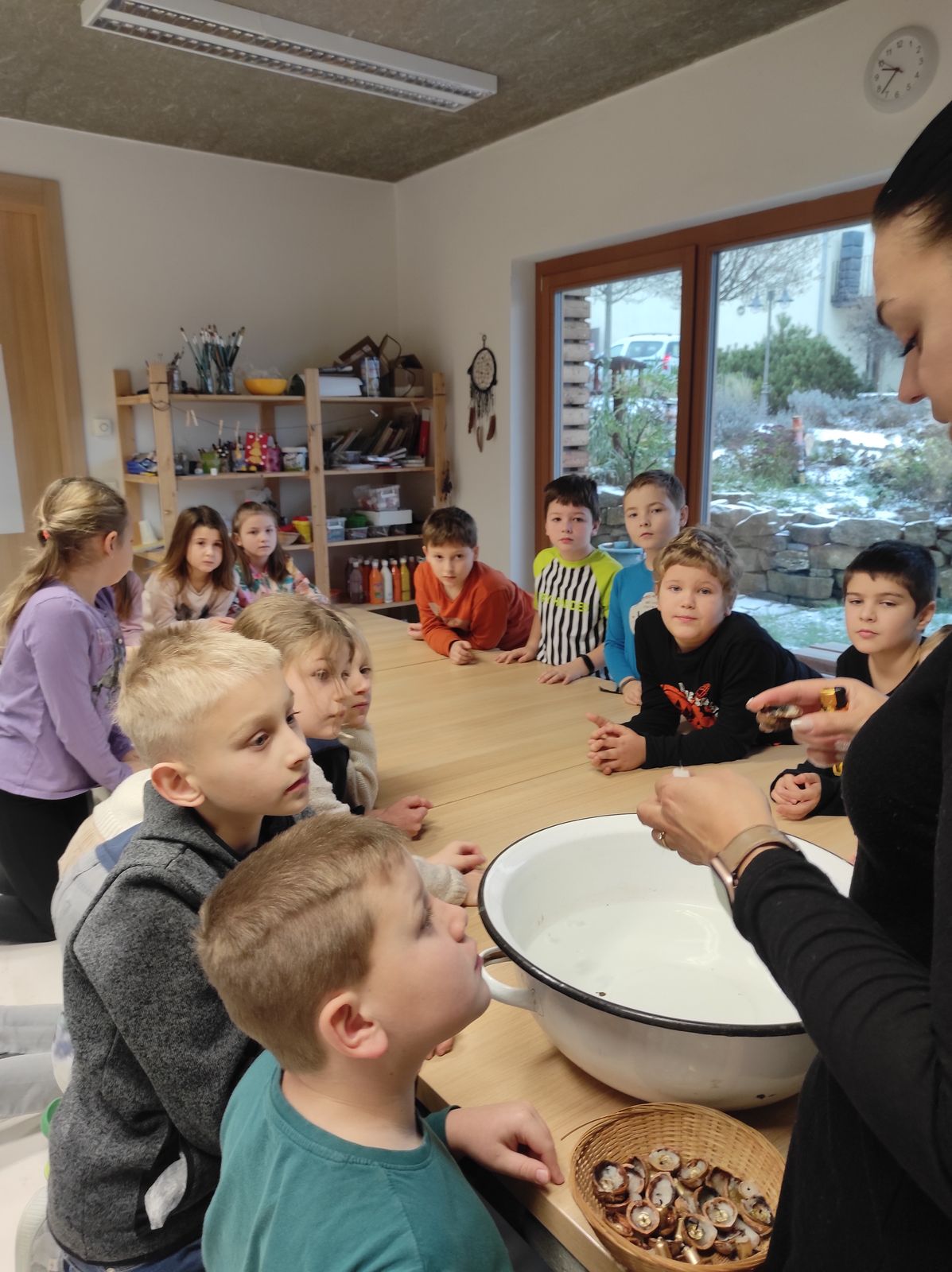 Ve dnech 13. – 15. prosince 2022 jsme se s žáky 1., 2. a 3. ročníků vydali do Ekocentra Trkmanka ve Velkých Pavlovicích. Tam nás čekal dopolední program zaměřený na tradice a zvyky o Vánocích. Programem nás doprovázela babička Maruška, která dětem vyprávěla příběh o narození Ježíška. Aby děti jen neposlouchaly, zapojila je do příběhu a společně si s babičkou zahrály divadlo. V jiné místnosti si vyrobily dekorace a přáníčko na Vánoce. Příjemná atmosféra nás naladila na blížící se Vánoce. Více ve fotogalerii