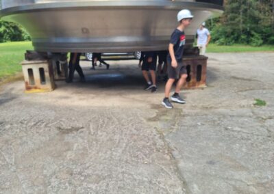 Poznatky nabyté v infocentru jaderné elektrárny mohli žáci porovnat s informacemi, které získali při prohlídce přečerpávací vodní elektrárny. Zde si žáci prohlédli vyřazenou turbínu, opět jim průvodce popsal, na jakém principu funguje přečerpávací vodní elektrárna a že její výhodou je schopnost okamžité reakce na nedostatek elektrické energie a samozřejmě také využívání obnovitelné energie z vody. Na závěr měli žáci možnost prohlédnout si dokonce i strojovnu vodní elektrárny.