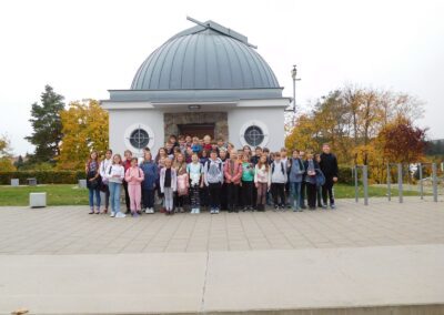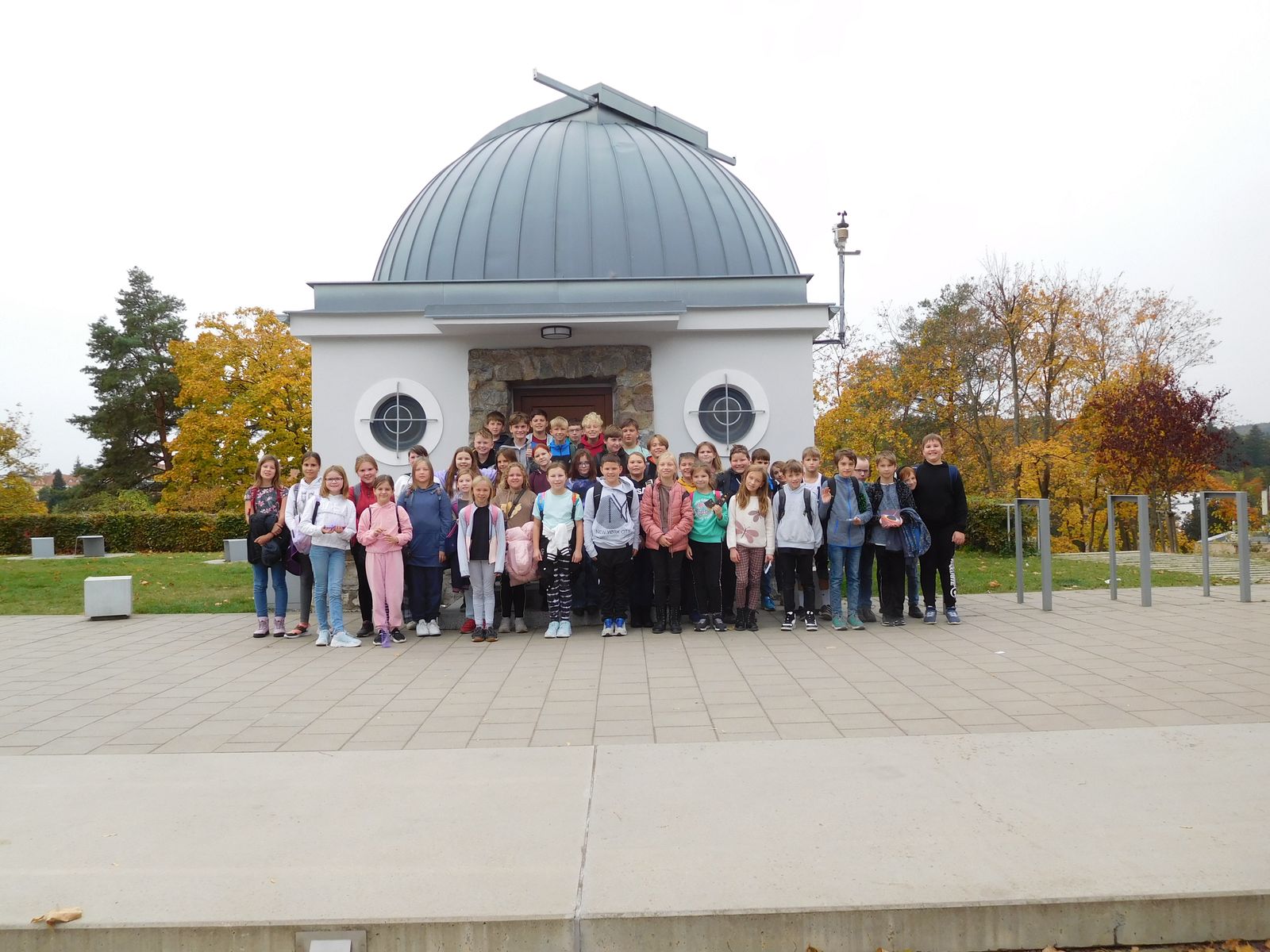 V úterý 24. října 2023 jsme s žáky 5. ročníku navštívili Hvězdárnu a planetárium v Brně. Exkurze byla uspořádaná v rámci předmětu Člověk a jeho svět, ve kterém se probírá učivo o vesmíru. V úvodní části programu byla prohlídka hvězdné oblohy s orientací na večerní obloze. Podívali jsme se na nejnápadnější hvězdy, souhvězdí a tělesa naší soustavy a vypravili jsme se i za její hranice. V další části jsme zhlédli program s názvem Cesta Sluneční soustavou. Na dobrodružné cestě jsme se seznámili s poznatky průzkumu vesmíru a s jeho objevy. Navštívili jsme planety, Měsíc a prolétli jsme i kolem kometárního jádra. Spolu s úžasnými zážitky z digitária jsme si na památku dovezli i řadu suvenýrů.