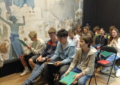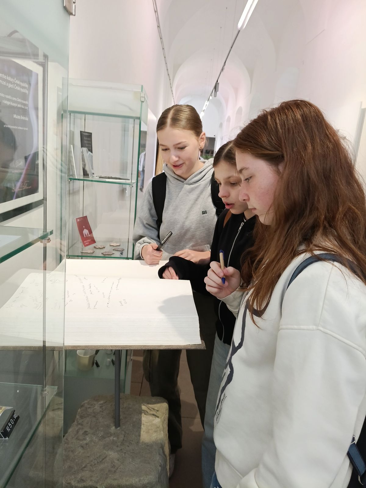 Ve dnech 23. – 25. 4. 2025 jsme společně a postupně se žáky 6. – 8. ročníku vyrazili na exkurzi do Památníku národního písemnictví v Rajhradě. Vždy se každé skupině ujala jedna milá paní, která ji odvedla do knihovny. Tam se jí podařilo zaujmout poutavým vyprávěním o zdejším klášteře. Poté všichni plnili úkoly z pracovního listu a hledali tajnou chodbu, která vede na ochoz s dalšími knihami. Dostalo se nám spoustu zajímavých a obohacujících informací i v malé galerii, např. dozvěděli jsme se o původu knih a tiskařského stroje. Také jsme měli příležitost navštívit kostel přímo u kláštera, kde jsme si prohlédli krásné malby. Někteří se podepsali do pamětní knihy, ale všem se to moc líbilo. Rádi se tam ještě někdy vrátíme.