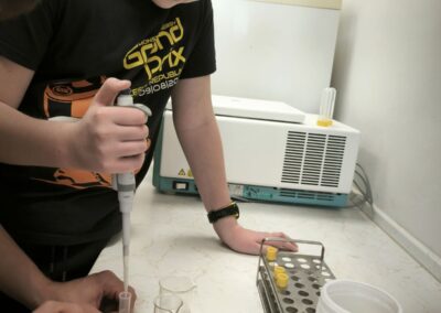 Žáci si dokonce vyzkoušeli samotnou přípravu vědeckého experimentu – učili se, jak extrahovat DNA z biologického materiálu a připravit ji na testování metodou PCR, což je zásadní technika v genetickém výzkumu a medicíně.