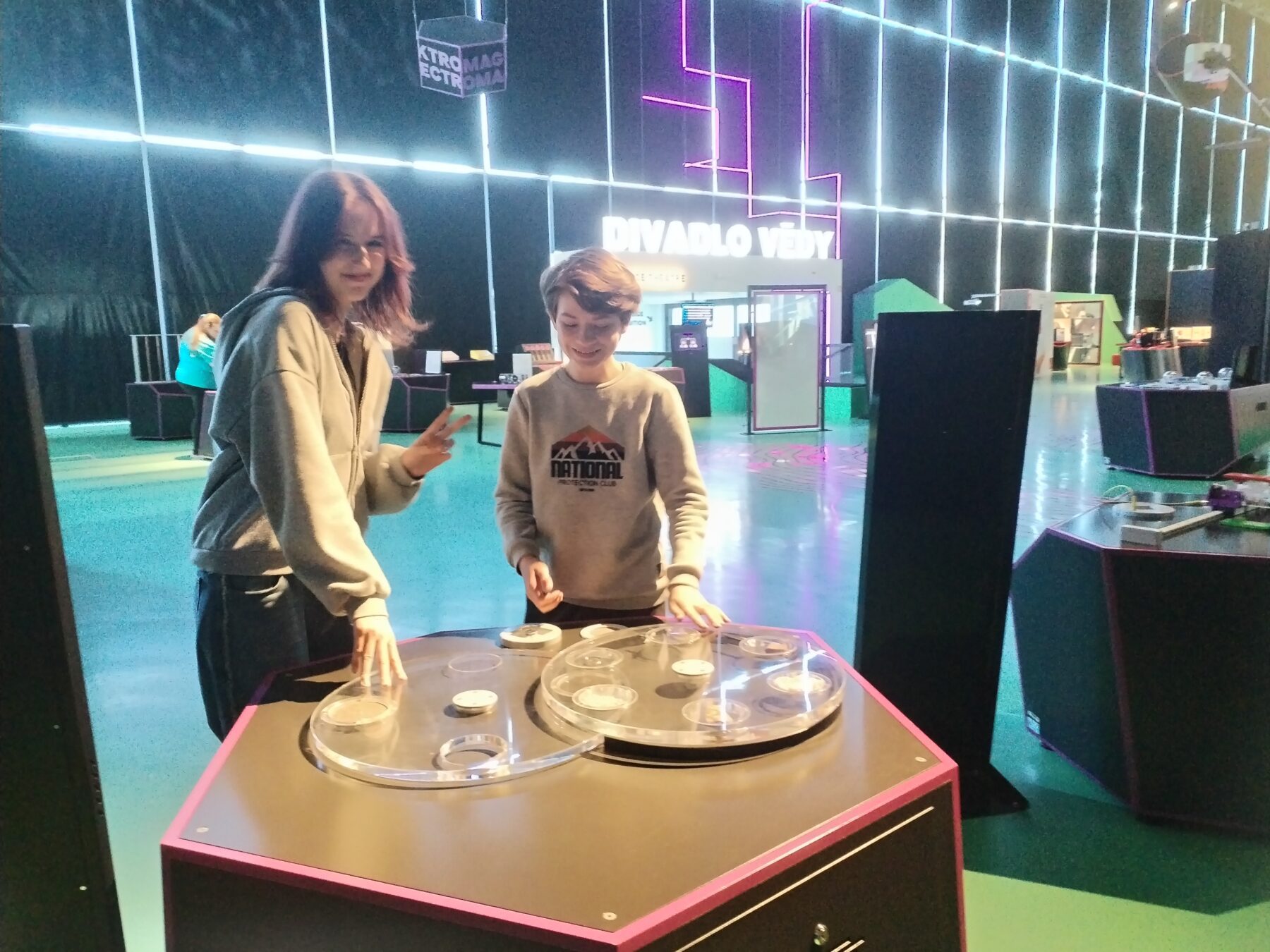 Nejdříve jsme si prohlédli jednotlivé vědecké expozice, kde se žáci seznamovali s principy zákonitostí napříč všemi vědeckými obory.