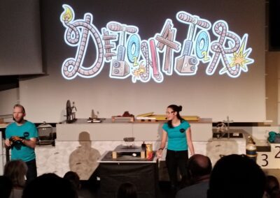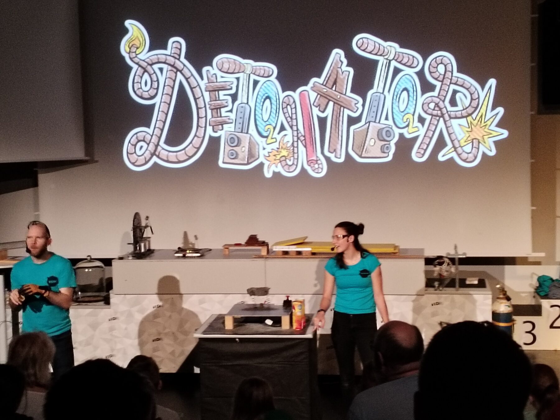 Pak jsme se přesunuli na Science Show s tématem DETONÁTOR – zjistili jsme, co všechno může být výbušninou a co jejím detonátorem. Viděli jsme pokusy s kapalným dusíkem, střelným prachem i hořlavými plyny. Dozvěděli jsme se, z čeho se skládá dynamit, semtex a jaký je princip atomového výbuchu.