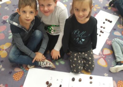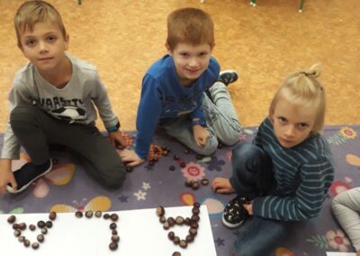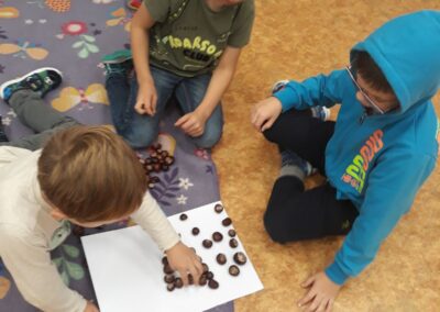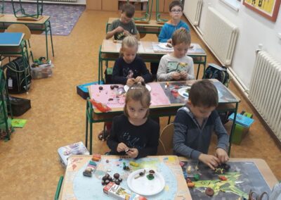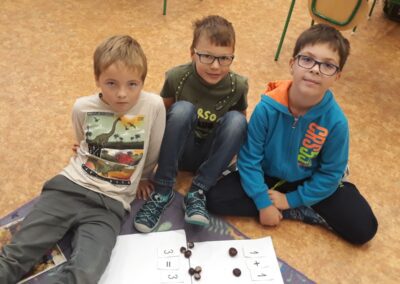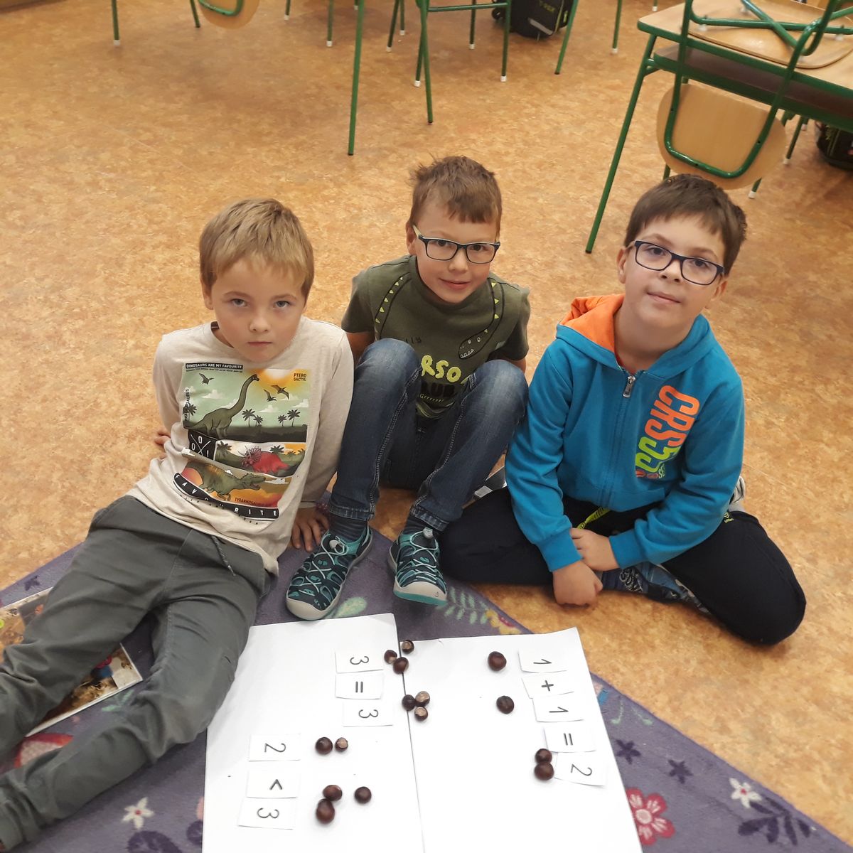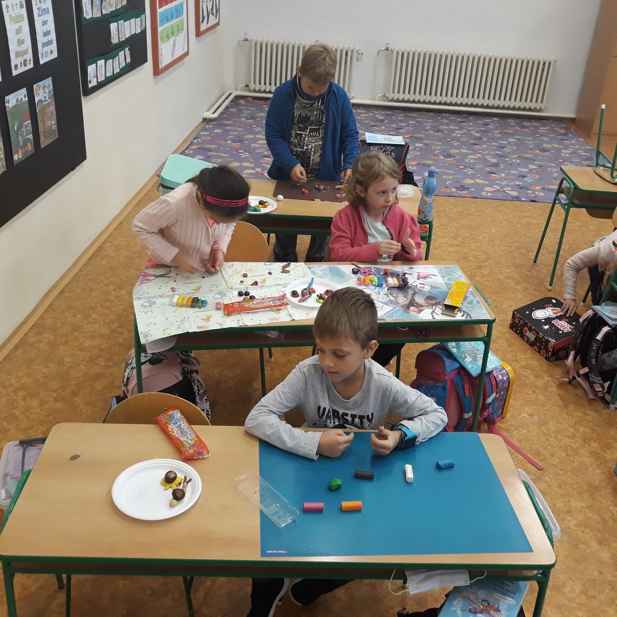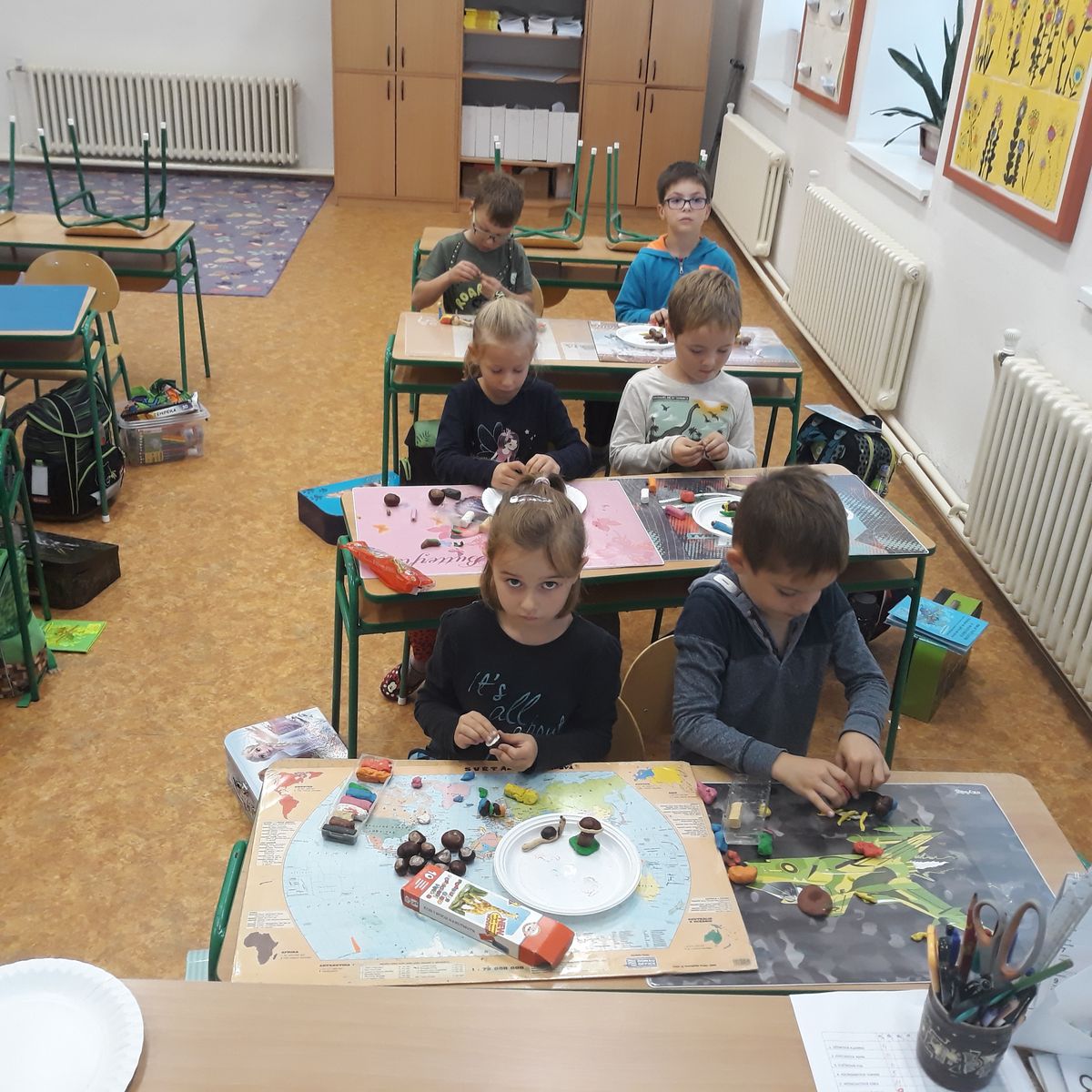 Na podzim všichni rádi sbíráme kaštany. My jsme je v každém předmětu středečního rozvrhu využili jako netradiční učební pomůcku. Ve čtení jsme skládali slabiky a jednoduchá slova, v matematice porovnávali a sčítali. Nejlepší byla pracovní výchova, kde jsme z kaštanů a plastelíny vyráběli zvířátka. Naše fantazie byla veliká. Pod našima rukama vznikali hlemýždi, želvy, stonožky, pavouci, chobotnice a další. Jak se nám to povedlo, můžete posoudit ve fotogalerii.