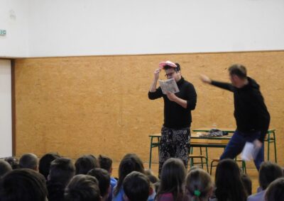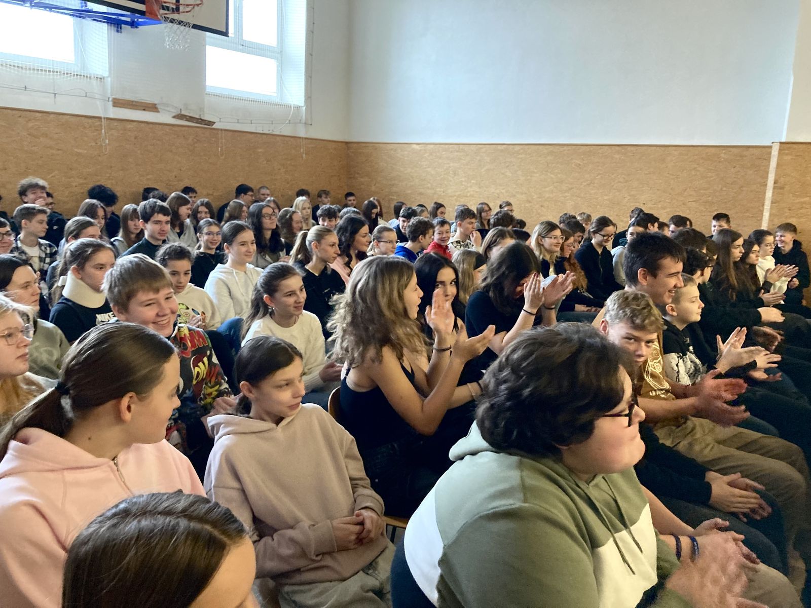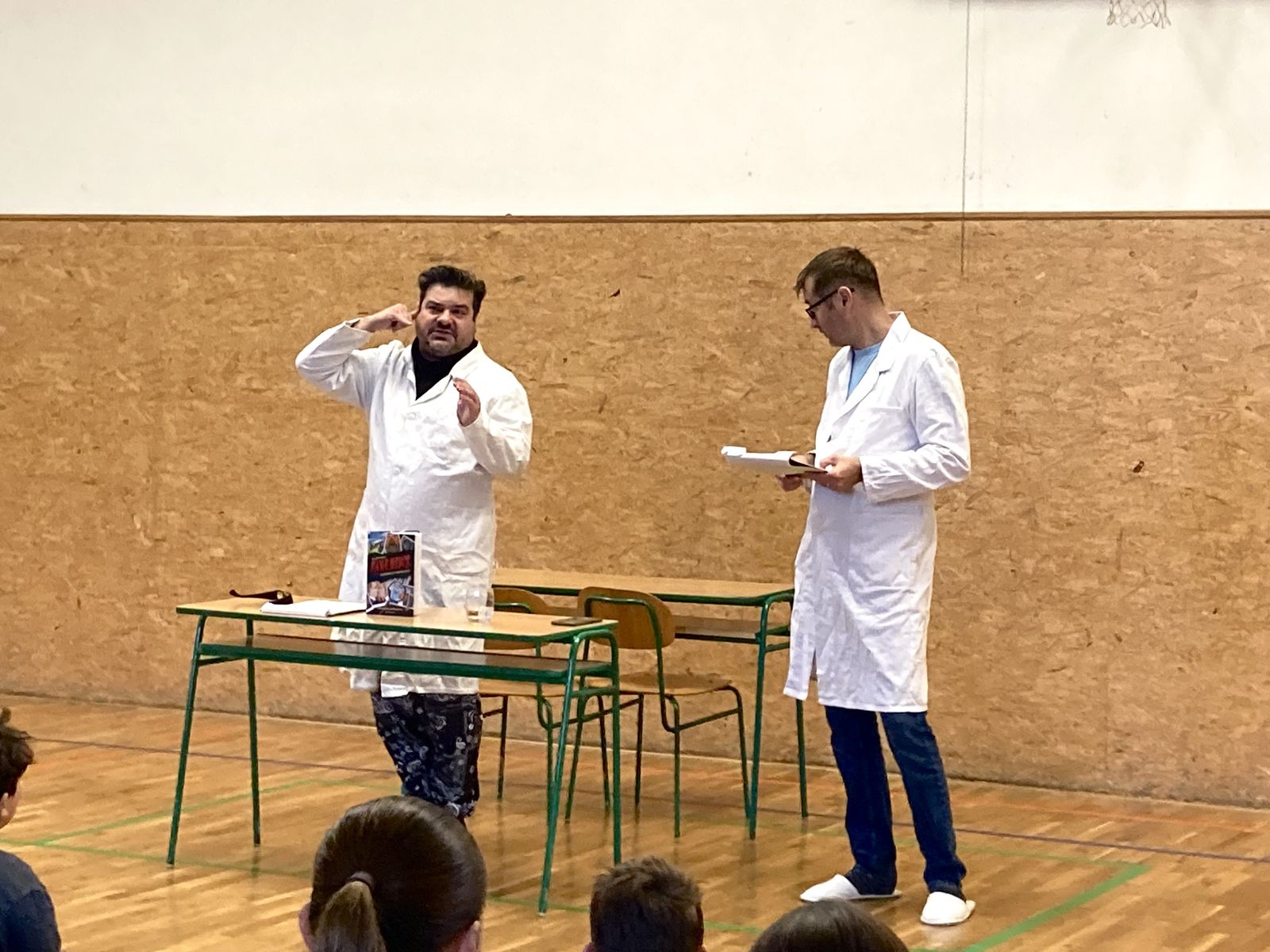Žáci na II. stupni měli možnost pomocí skvělých hereckých výkonů nahlédnout a seznámit se s knihou s nezvyklým názvem FAKE NEWS CHALLENGE. V dnešní moderní době je velmi těžké se orientovat ve zprávách, které nám jsou předkládány, např. doba covidová, válka na Ukrajině, konspirační teorie, hybridní válka! Média, politici, sociální sítě – ze všech těchto zdrojů se na nás neustále valí dohady o tom, kdo, jak a proč se nás snaží dezinformovat. Co ale často opakovaná spojení fake news, dezinformace a alternativní fakta zahrnují? Jedná se o fenomén posledních let, nebo jsou tu s námi, šikovně skryté, už dlouhá staletí? Jak je možné, že fungují? Kdo a proč je vypouští? A co je hlavní, jak se proti nim můžeme bránit? LISTOVÁNÍ tak přineslo žákům vtipnou a neotřelou scénickou formou pohled na každodenní informace, které nejenže jsou kolem nás, ale současně nás dokáží velmi ovlivnit.
