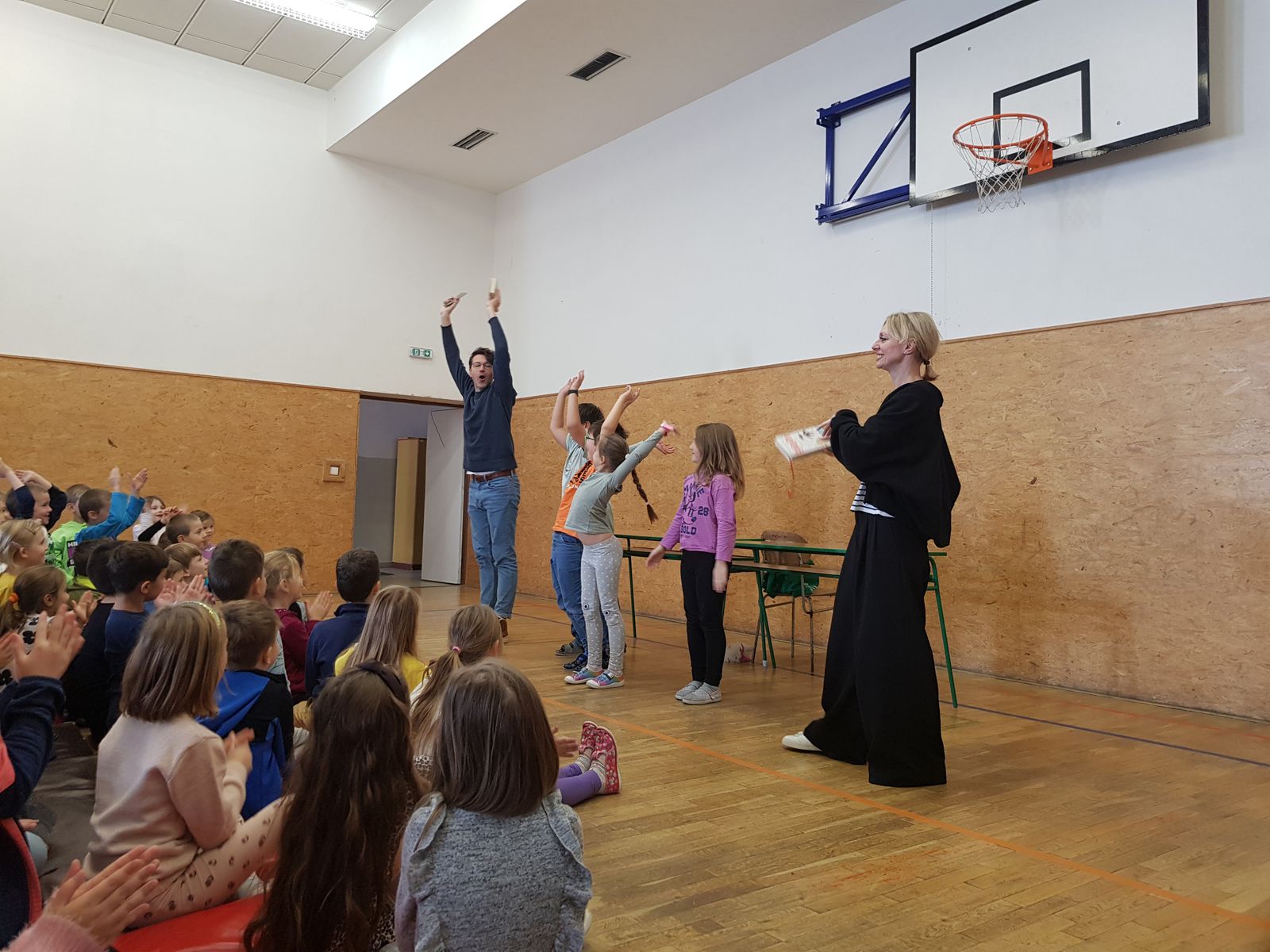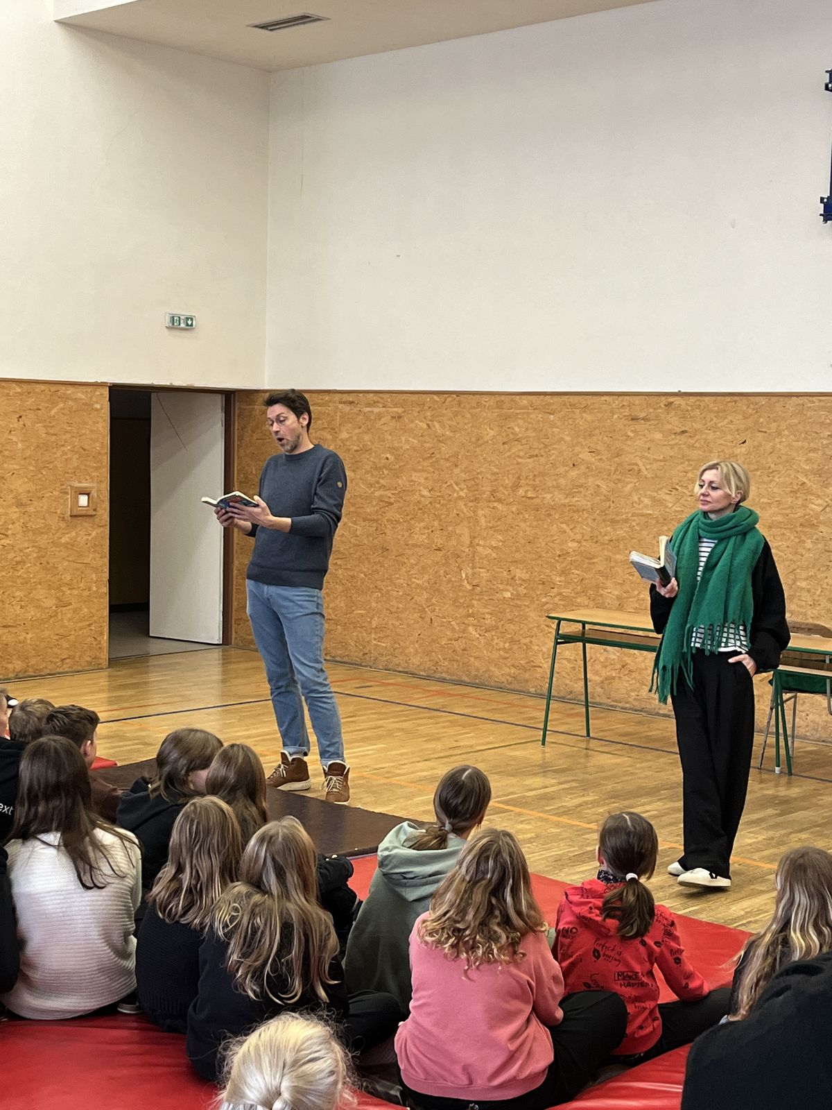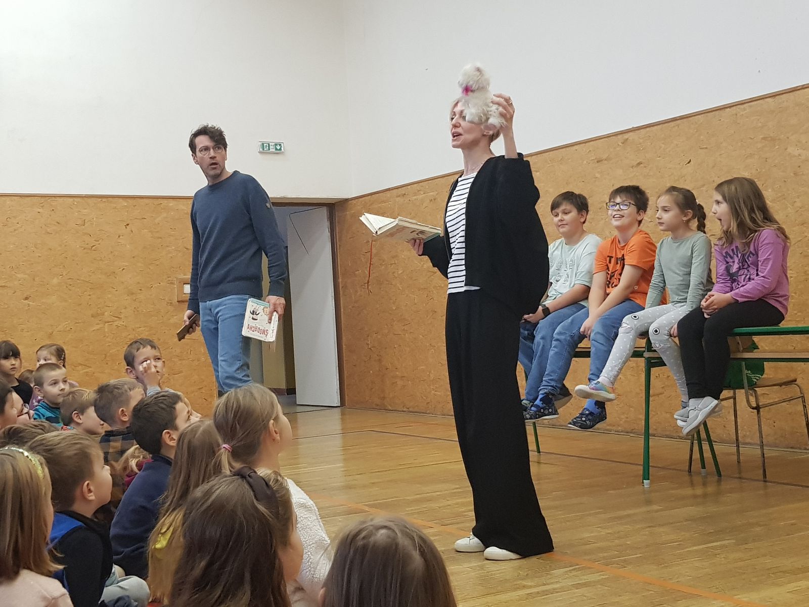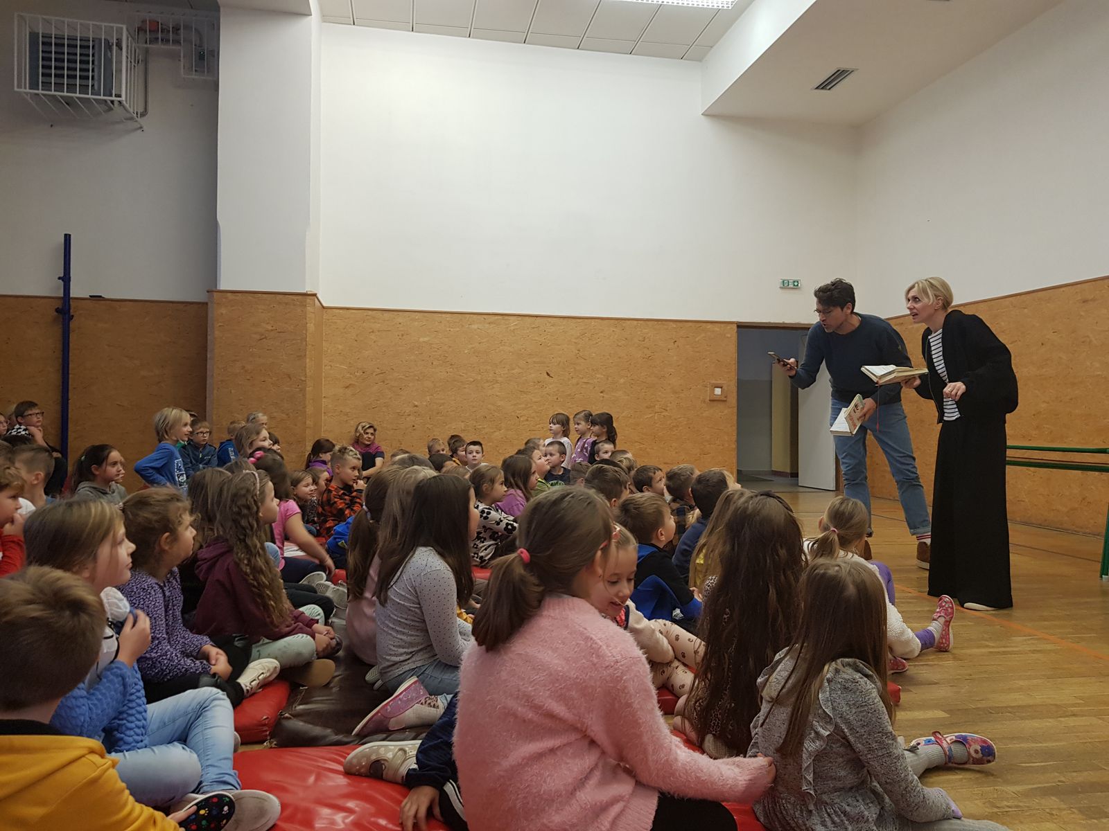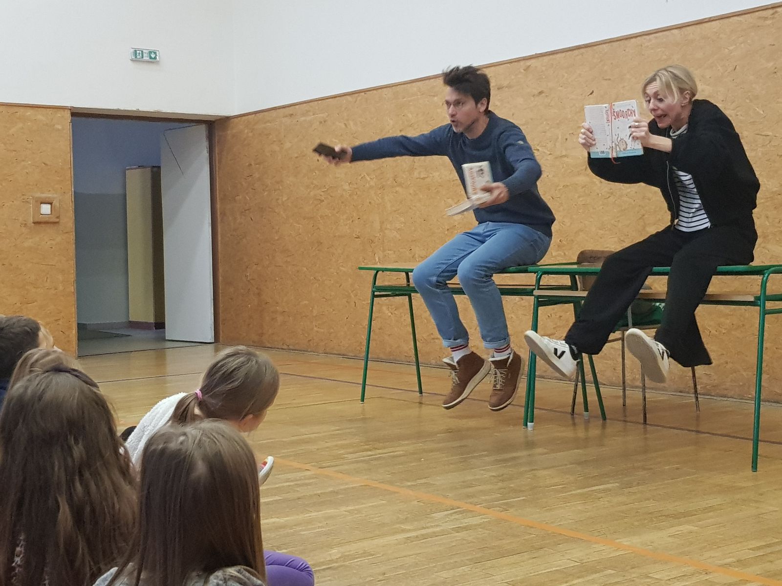 Máte rádi knihy? To je otázka v dnešní době k zamyšlení. A proto se snažíme, aby i naši žáci vzali alespoň občas knihu na milost, ne za trest. V tom nám již několik let pomáhá samotné Listování s Lukášem Hejlíkem. V listopadu jsme měli možnost se s ním a jeho knihami opět potkat. Přijel spolu s brněnskou herečkou Věrou Hollou, aby společně našim žákům představili dvě knihy. Každá z nich byla určena pro jednotlivý stupeň. Žáci I. stupně se seznámili s knihou Šmodrcha. Po celou dobu se nechávali unášet příběhem a spolupracovali s herci. Abyste měli také možnost nahlédnout do tajů knih, přidáváme malou ukázku.