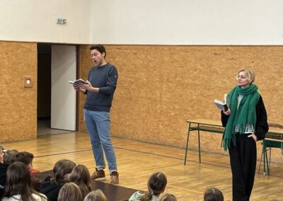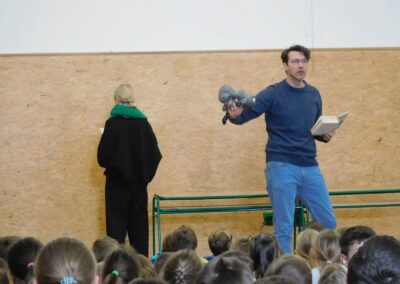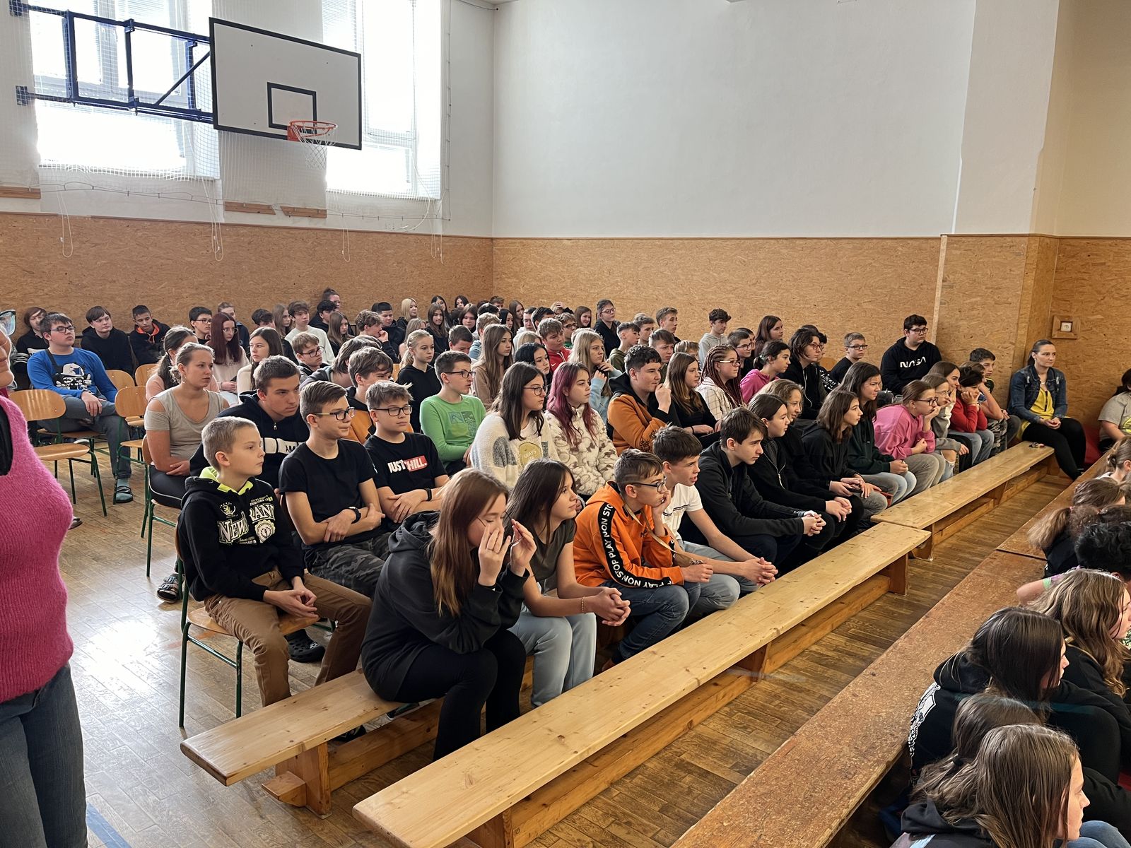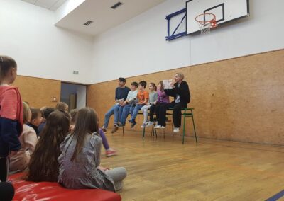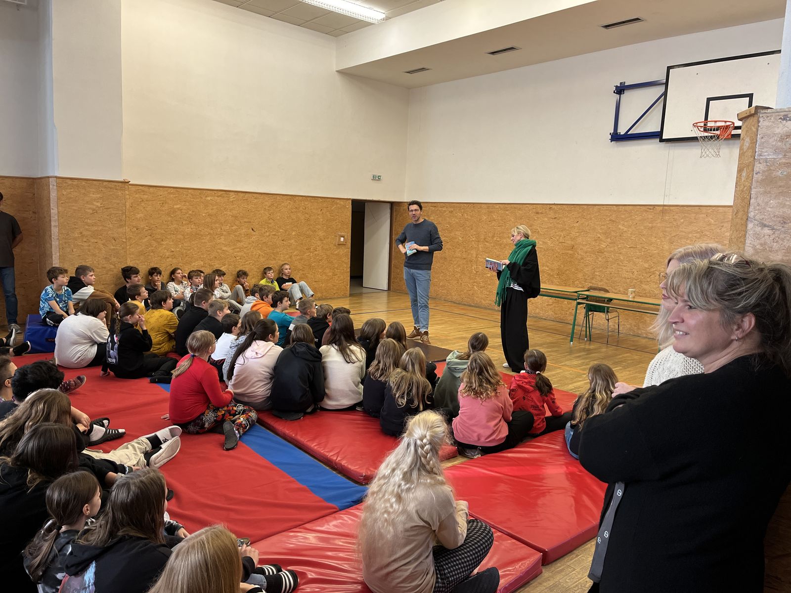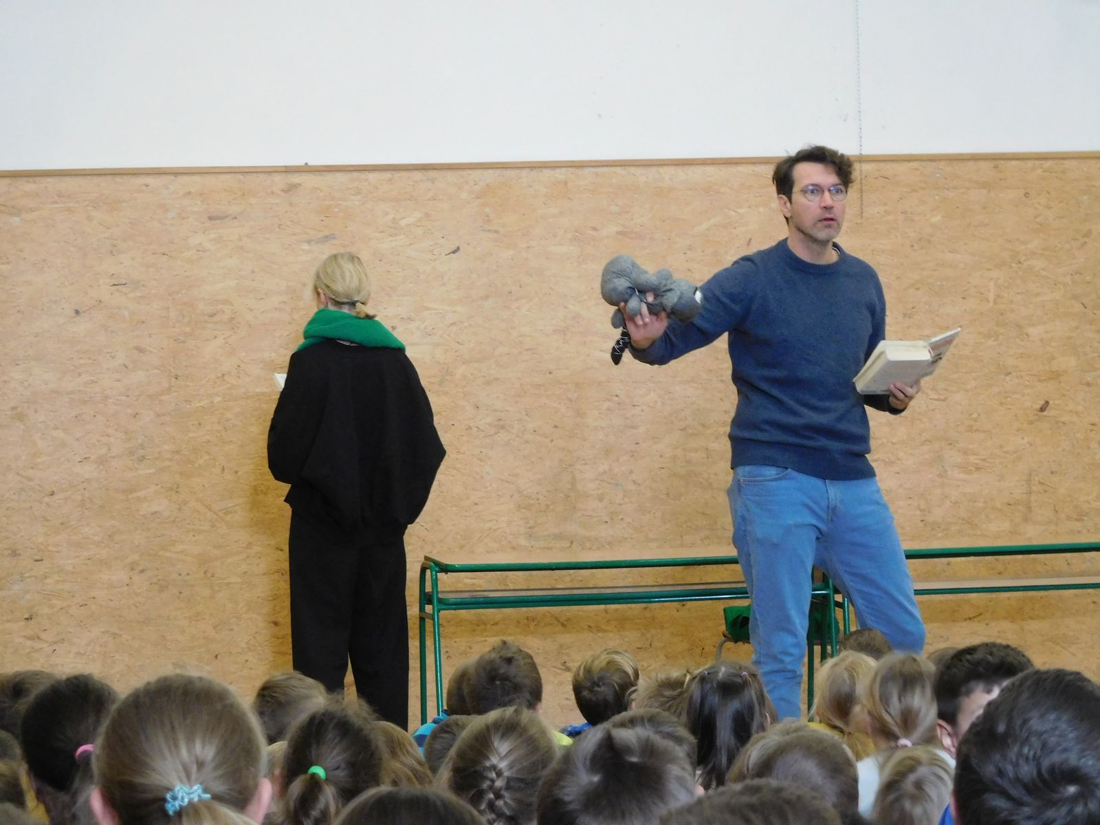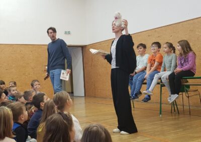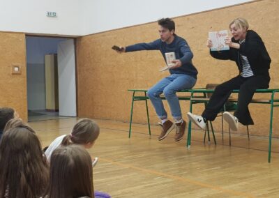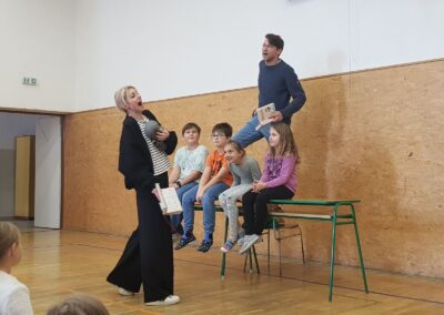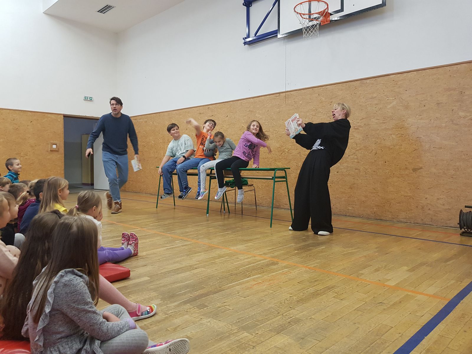 Máte rádi knihy? To je otázka v dnešní době k zamyšlení. A proto se snažíme, aby i naši žáci vzali alespoň občas knihu na milost, ne za trest. V tom nám již několik let pomáhá samotné Listování s Lukášem Hejlíkem. V listopadu jsme měli možnost se s ním a jeho knihami opět potkat. Přijel spolu s brněnskou herečkou Věrou Hollou, aby společně našim žákům představili dvě knihy. Každá z nich byla určena pro jednotlivý stupeň. Žáci I. stupně se seznámili s knihou Šmodrcha. Po celou dobu se nechávali unášet příběhem a spolupracovali s herci. Abyste měli také možnost nahlédnout do tajů knih, přidáváme malou ukázku.