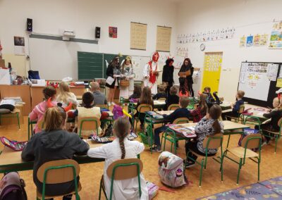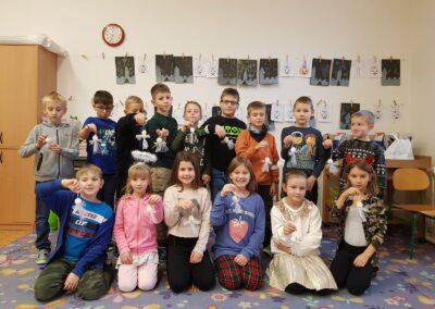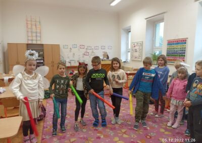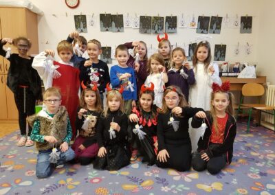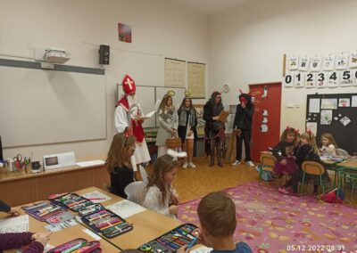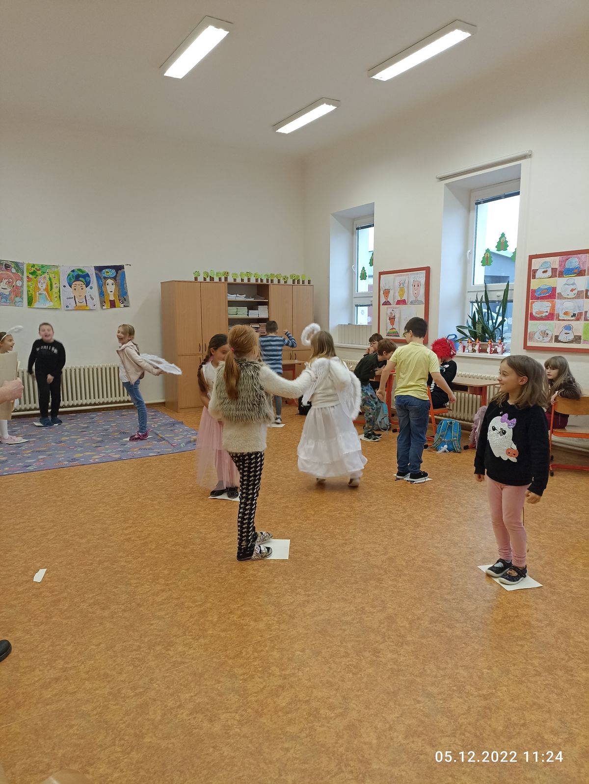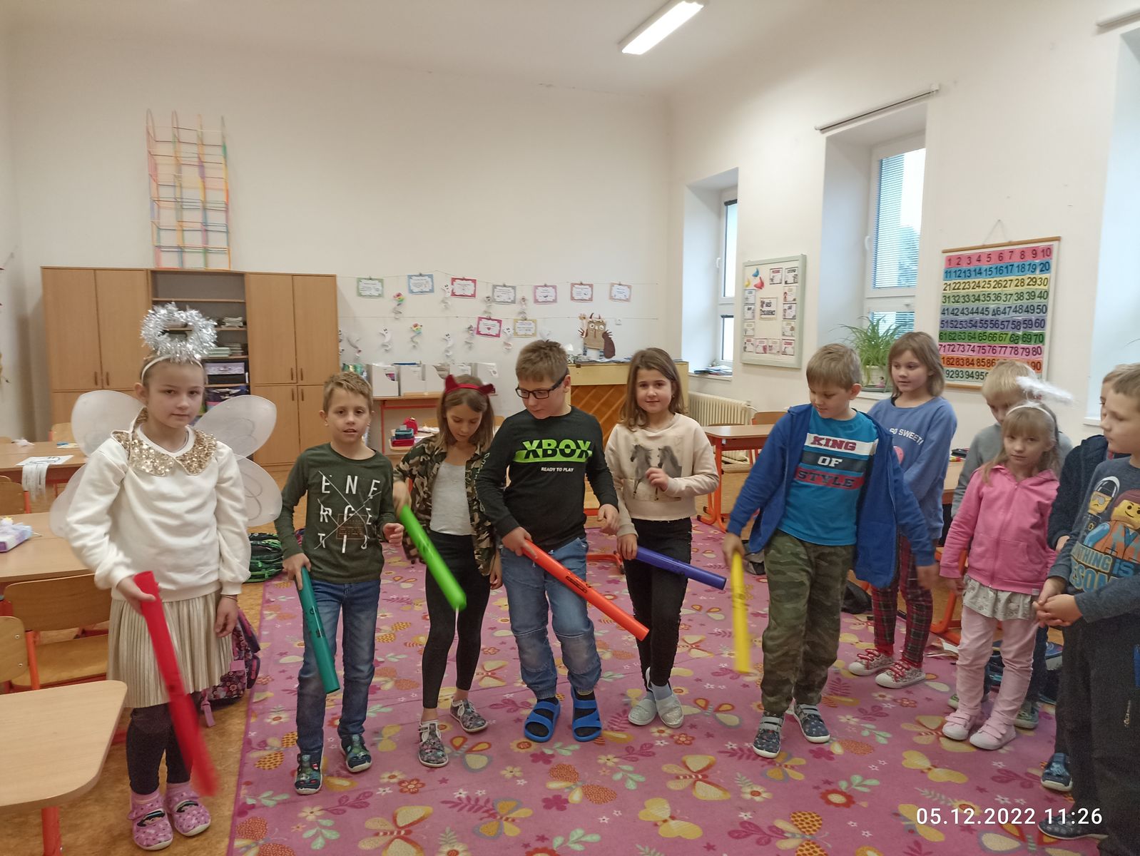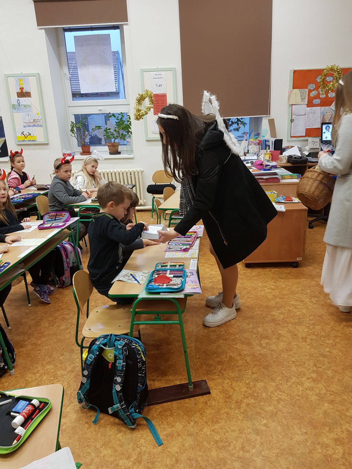 Svátek sv. Mikuláše jsme si připomněli i v rámci výuky. Většina žáků se v tento den proměnila v malé andílky, čertíky a Mikuláše. Nejdříve si vypracovali pracovní listy s mikulášskou tematikou a potom na ně čekala čtyři stanoviště. Na prvním si povídali o zvycích a tradicích na sv. Mikuláše, na druhém si zazpívali Písničku pro čerta a zatančili čertí taneček, na třetím stanovišti si vyrobili anděla a nakonec si zahráli pohybové hry. Děti odcházely spokojené a vy se můžete podívat na fotogalerii.