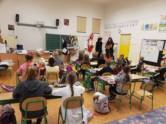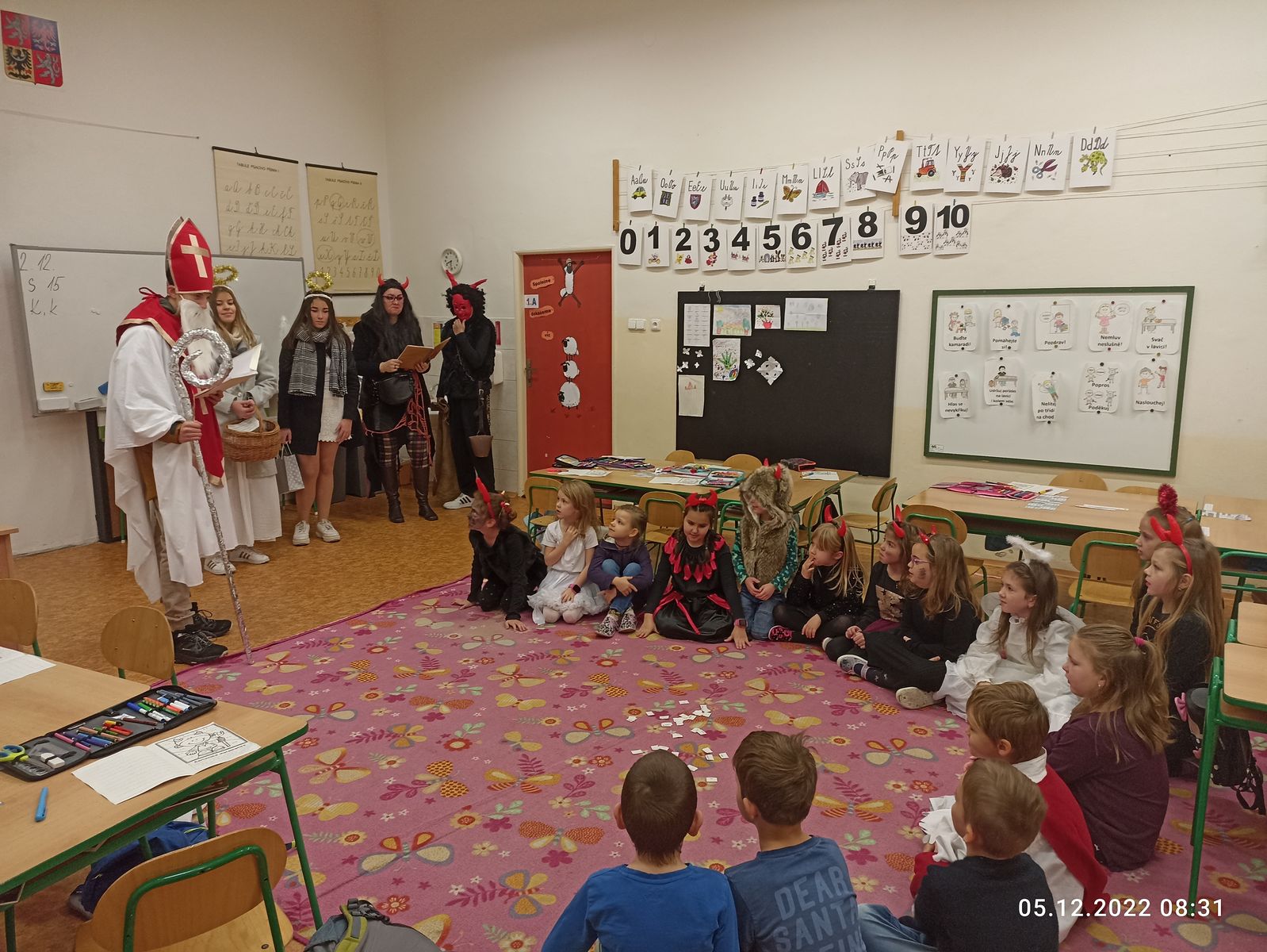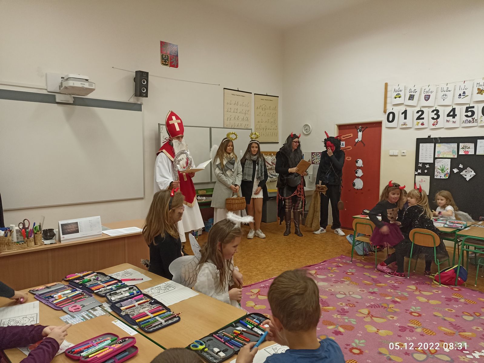 Ani letos Mikuláš nezapomněl a vydal se 5. prosince za dětmi na Barborku. Vzal s sebou i své pomocníky, anděla a čerta. Mikuláš děti přivítal a otevřel svou kouzelnou knihu, která mu vše prozradila. Naštěstí patří většina žáků naší školy mezi ty vzorné, takže strašení peklem nebylo nutné. Jen ten, kdo v tomto roce občas zazlobil, dostal od čertů výstrahu a od moudrého Mikuláše a hodného anděla poučení, jak se polepšit. Bez odměny však nezůstal ani mikulášský tým – slyšel od dětí spoustu krásných básniček a písniček.
