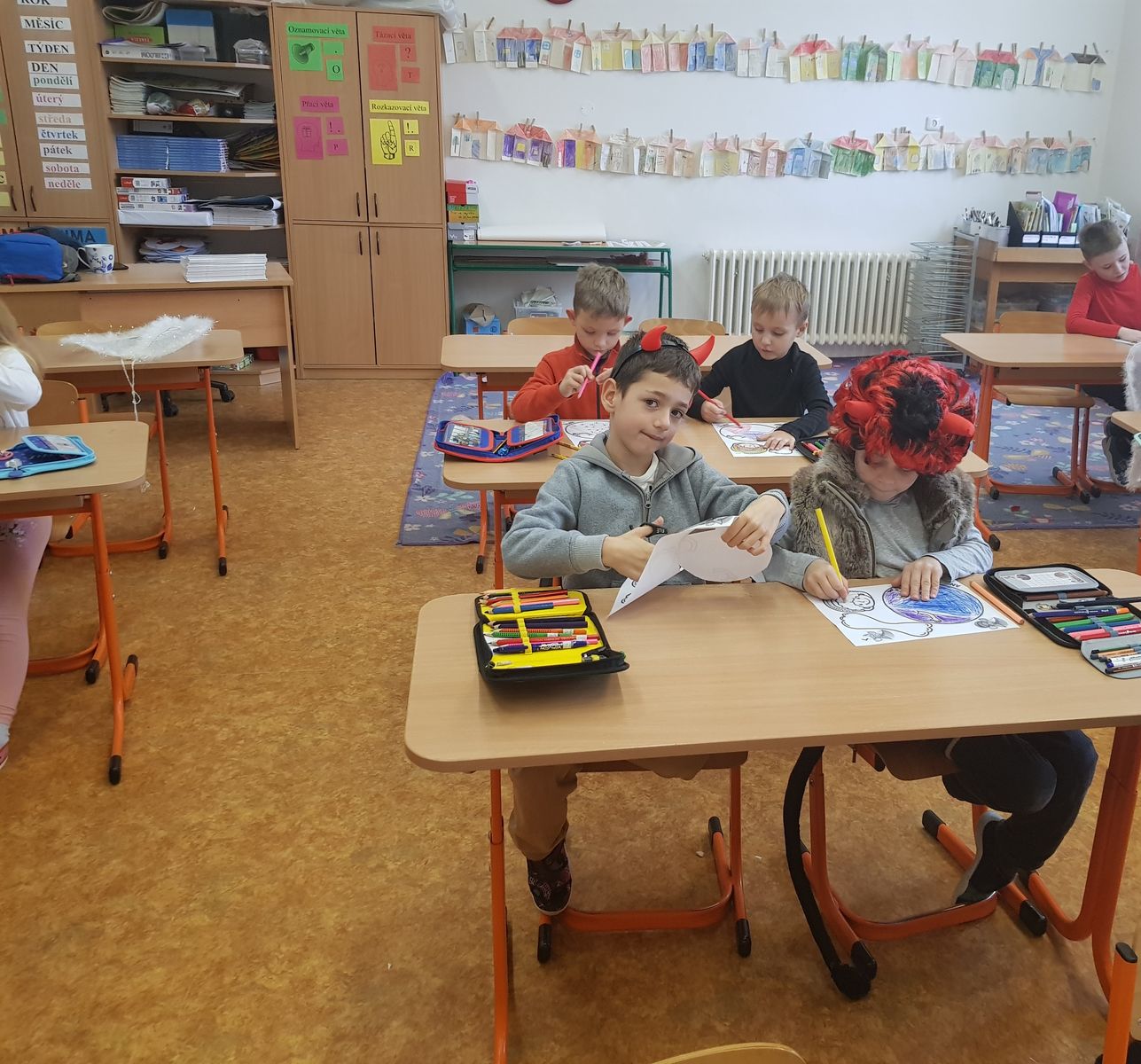 Svátek sv. Mikuláše jsme si připomněli i v rámci výuky. Žáčci se proměnili v malé andílky, čertíky a Mikuláše. Nejdříve si vypracovali tematické pracovní listy a potom na ně čekala čtyři stanoviště.