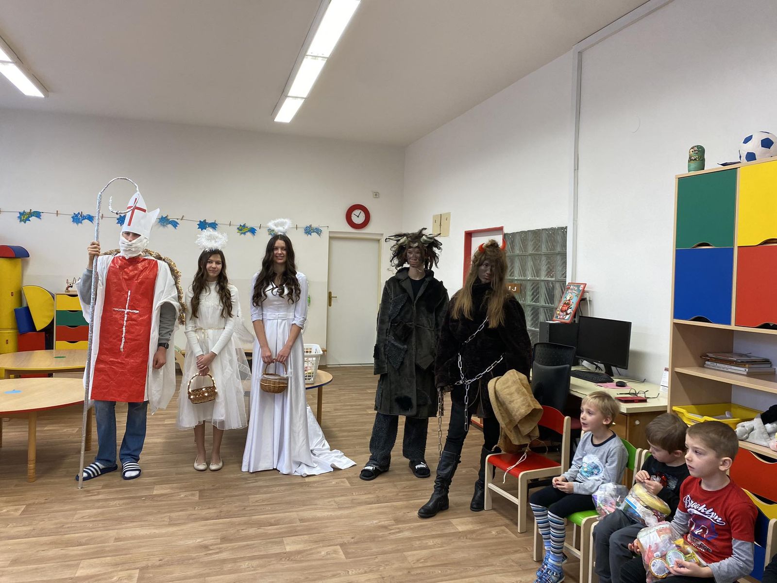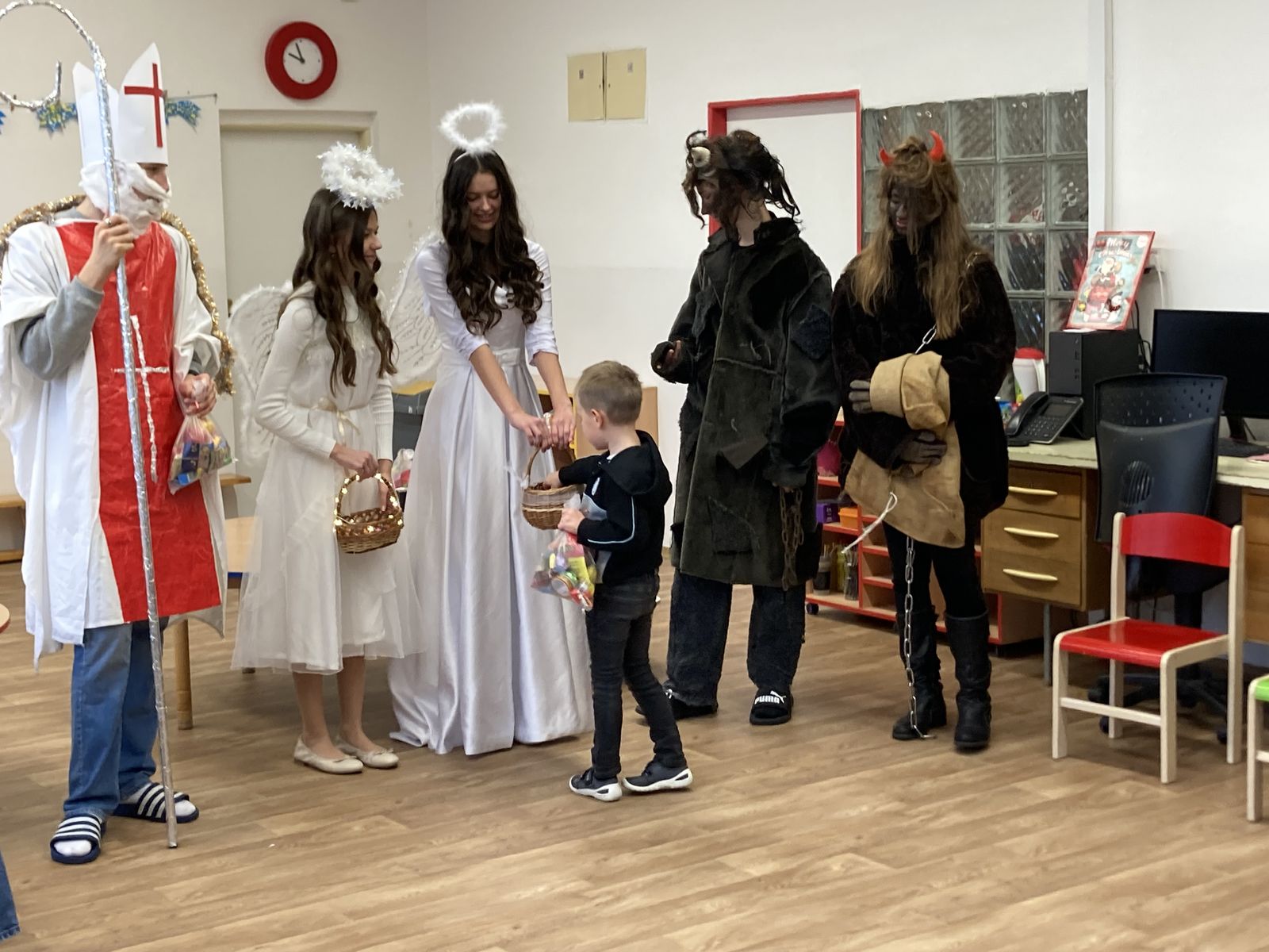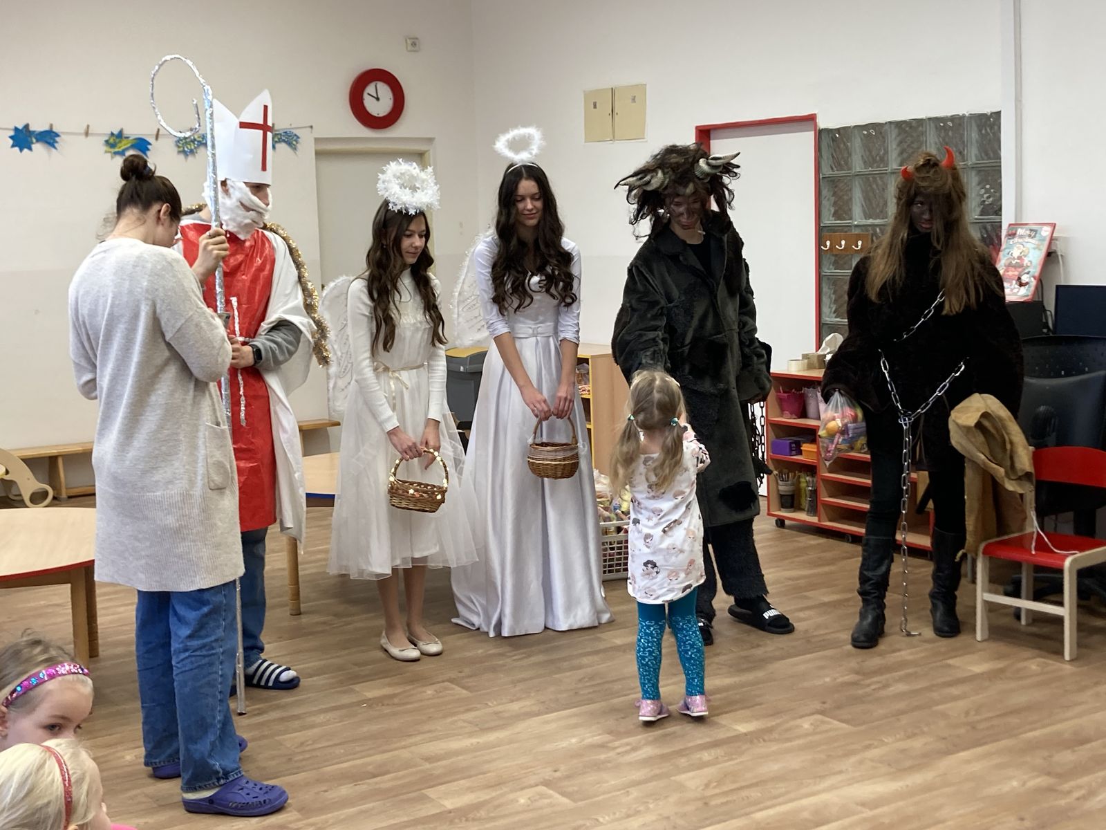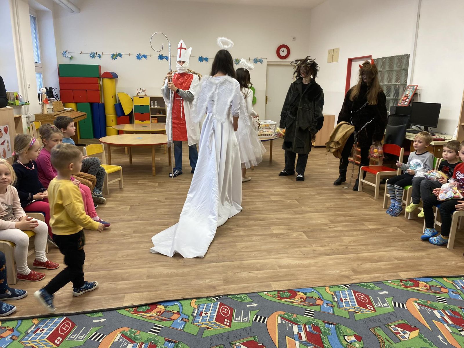Mikuláš ve školce7. Pro, 2023 | Mateřská škola Jako každý rok zavítali i letos do naší MŠ Mikuláš andílci a čerti. Děti byly statečné a odvážně zpívaly písničky. Za to jim Mikuláš nadělil balíčky plné dobrot.