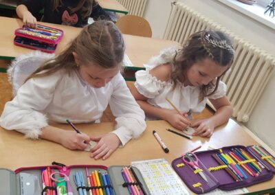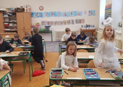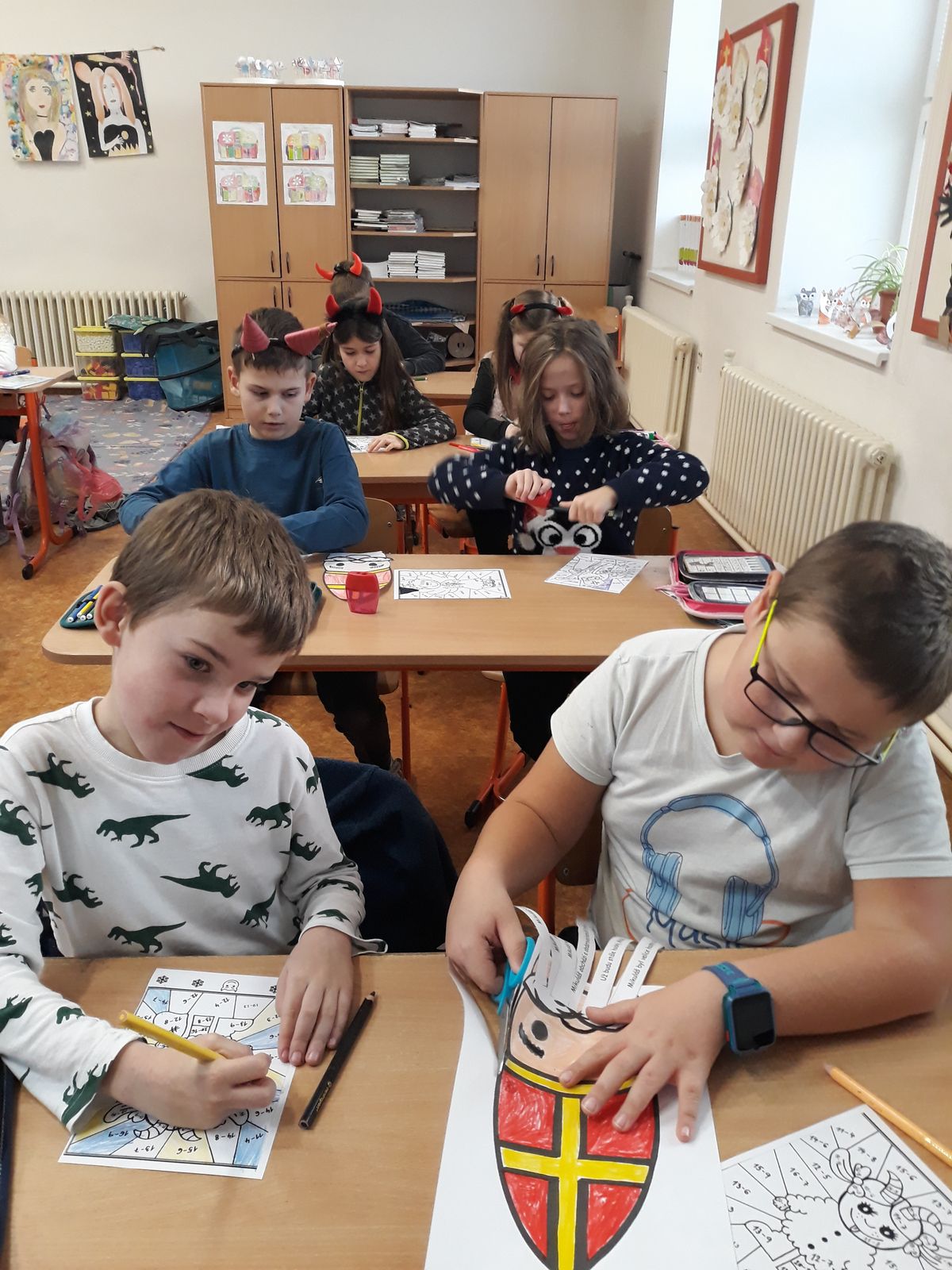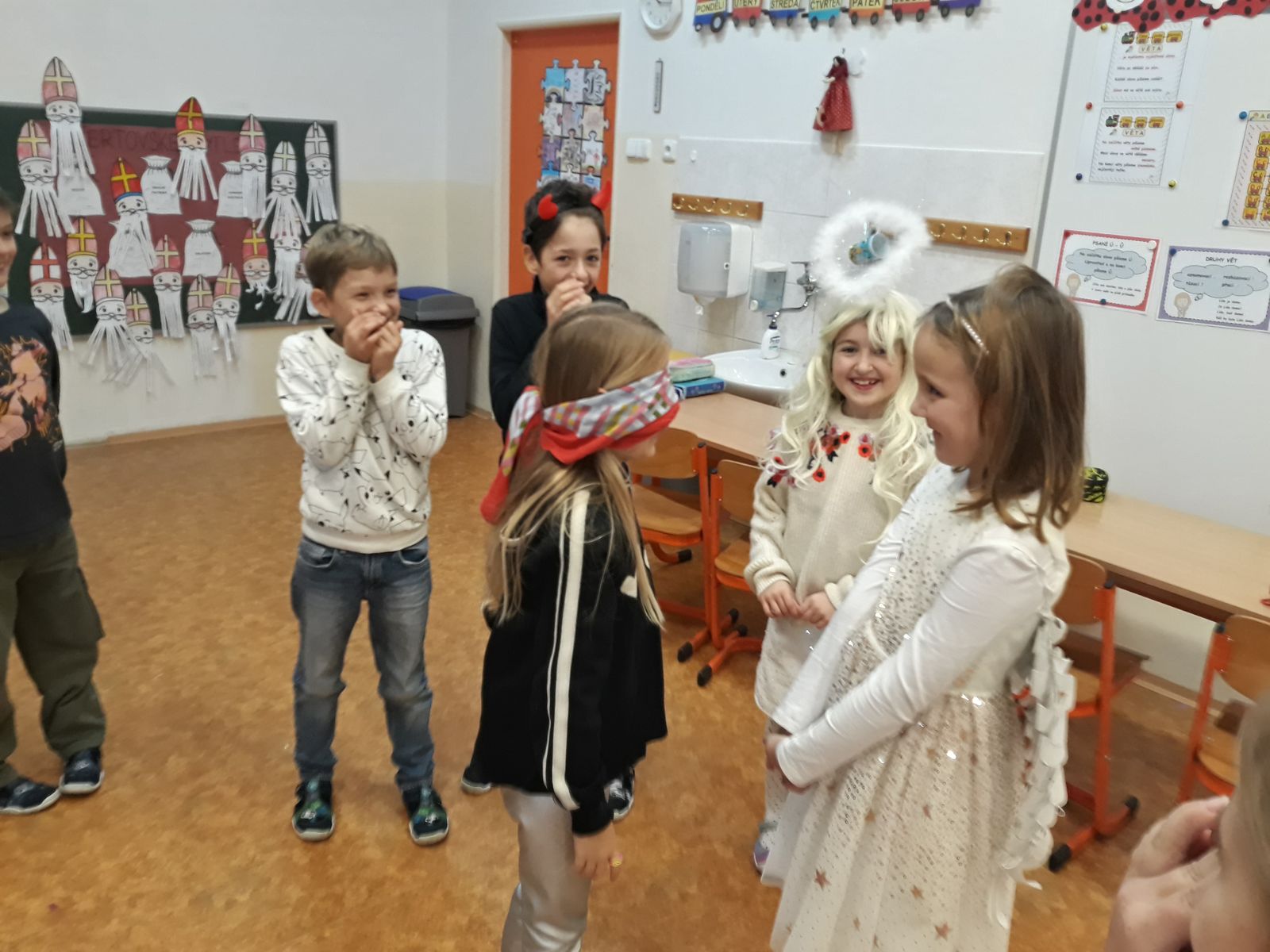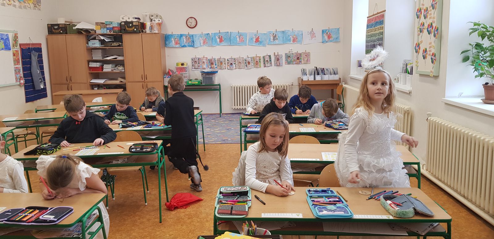 Svátek sv. Mikuláše jsme si připomněli i v rámci výuky. Žáčci se proměnili v malé andílky, čertíky a Mikuláše. Nejdříve si vypracovali tematické pracovní listy a potom na ně čekala čtyři stanoviště.