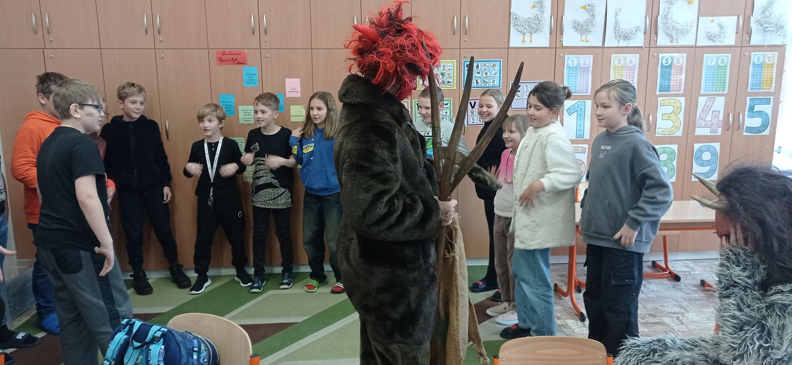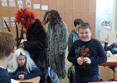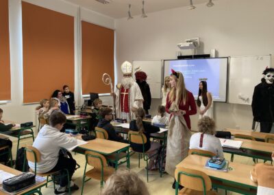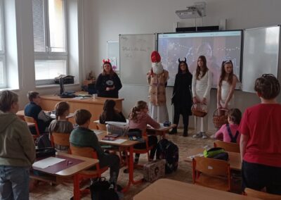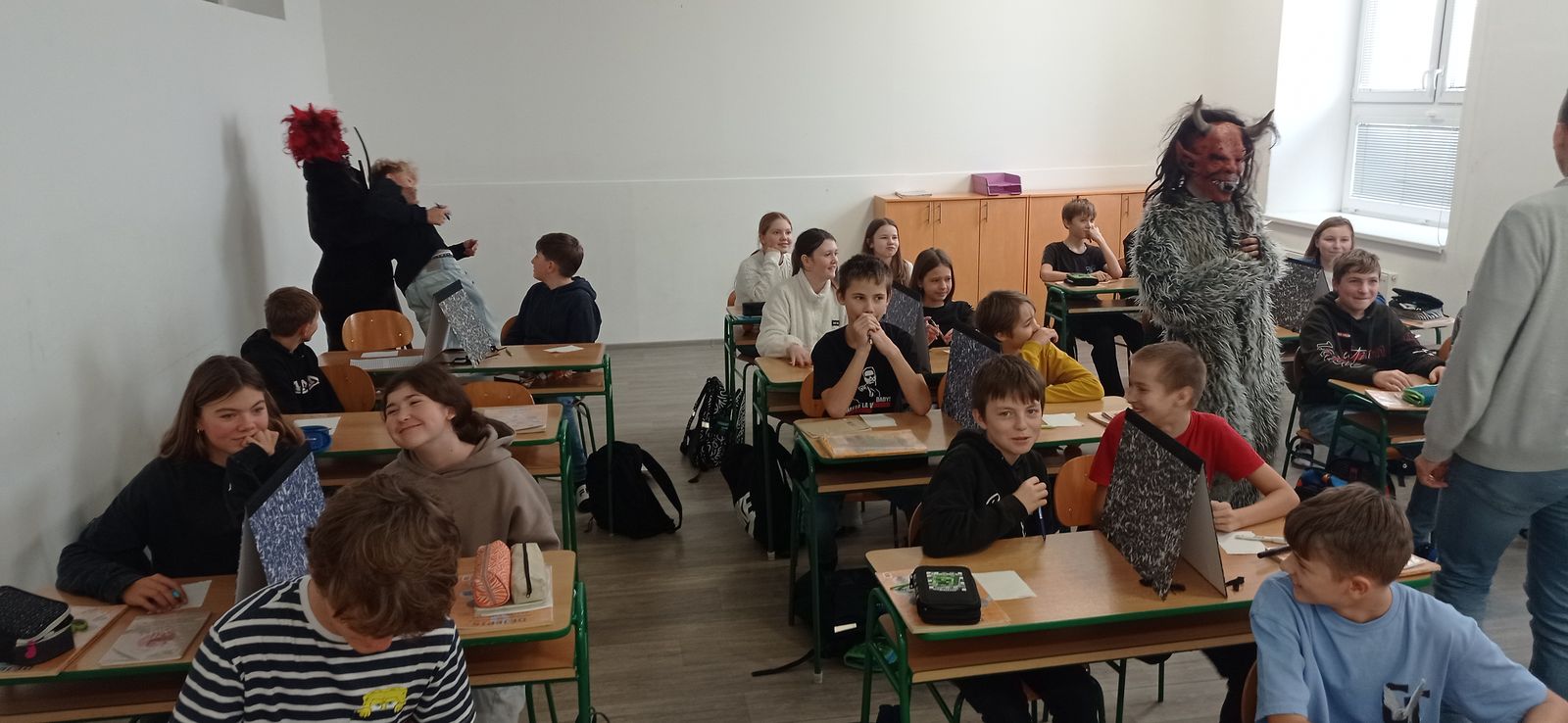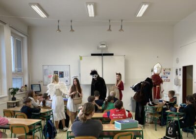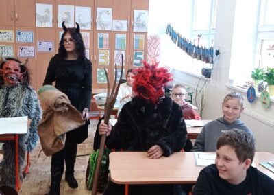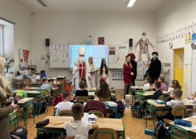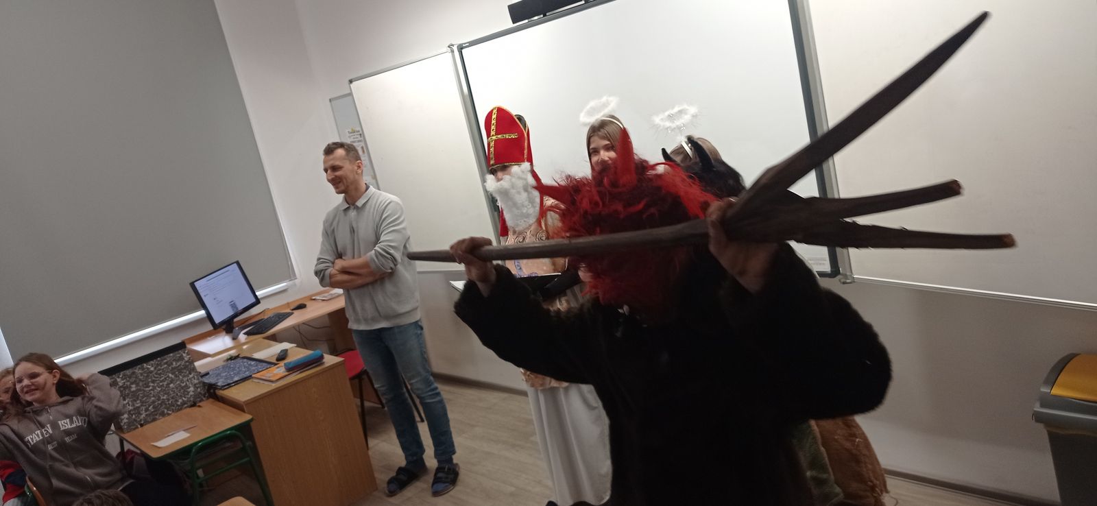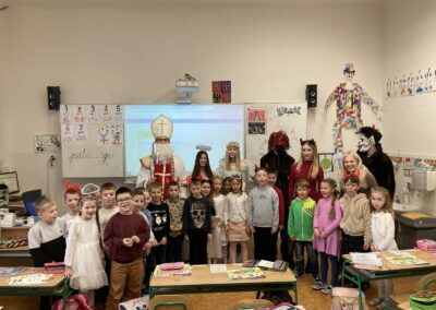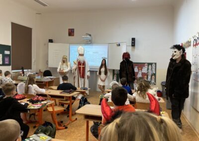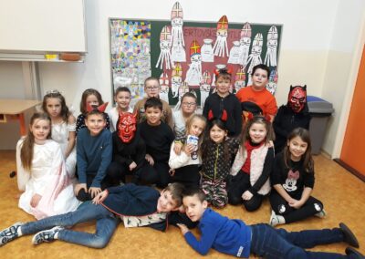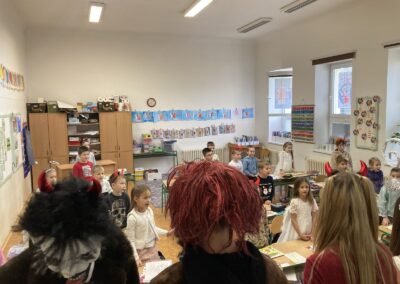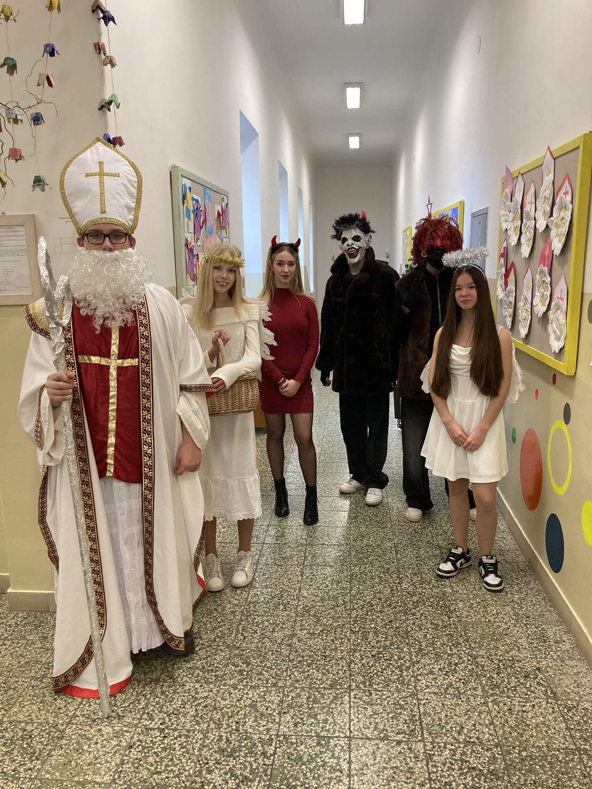 Mikuláš se svou družinou prošel třídy menších dětí také v hlavní budově na ulici Smetanova, nezapomněl ani na mateřskou školu.