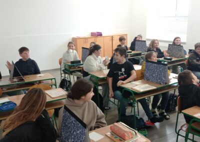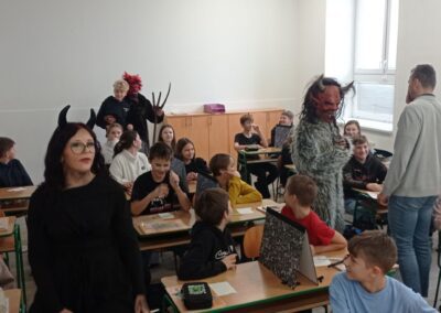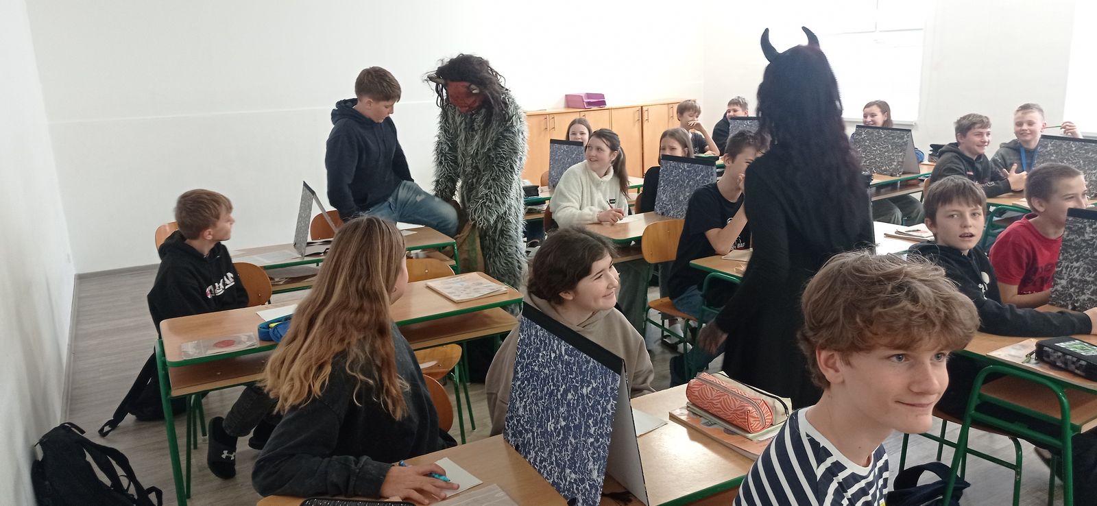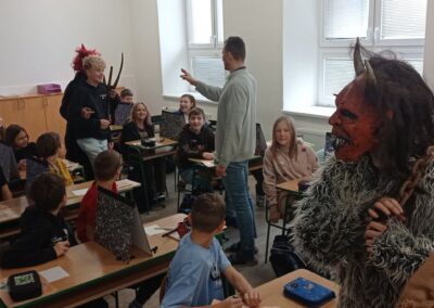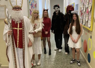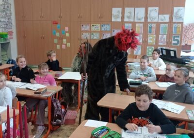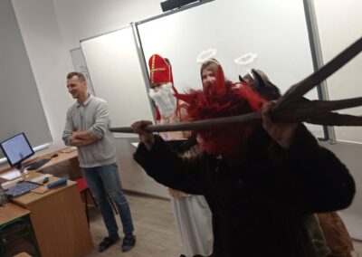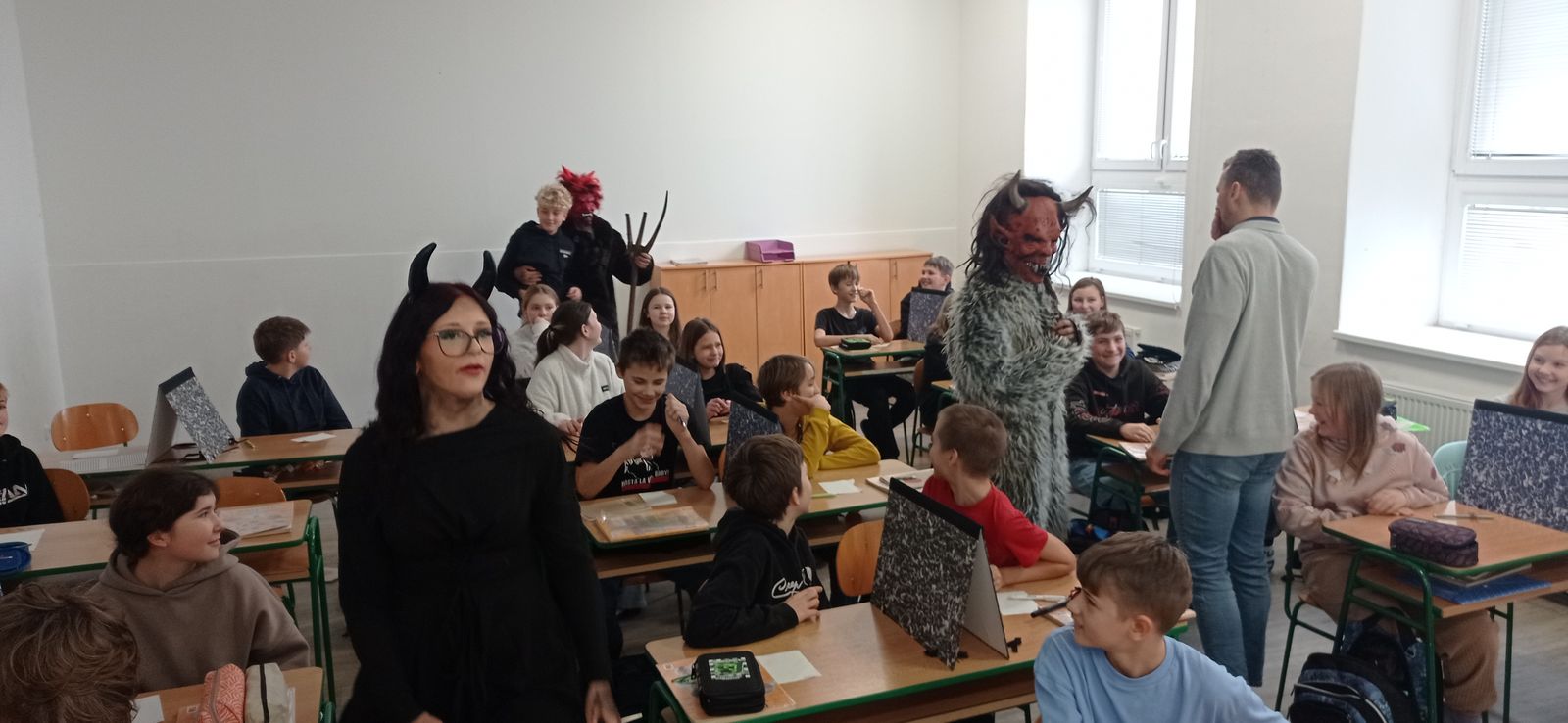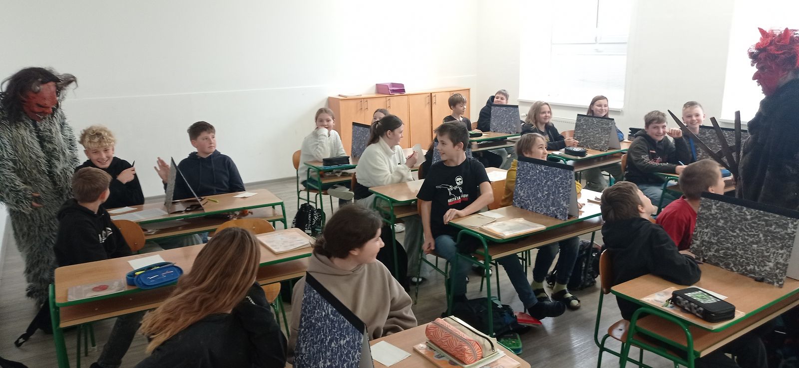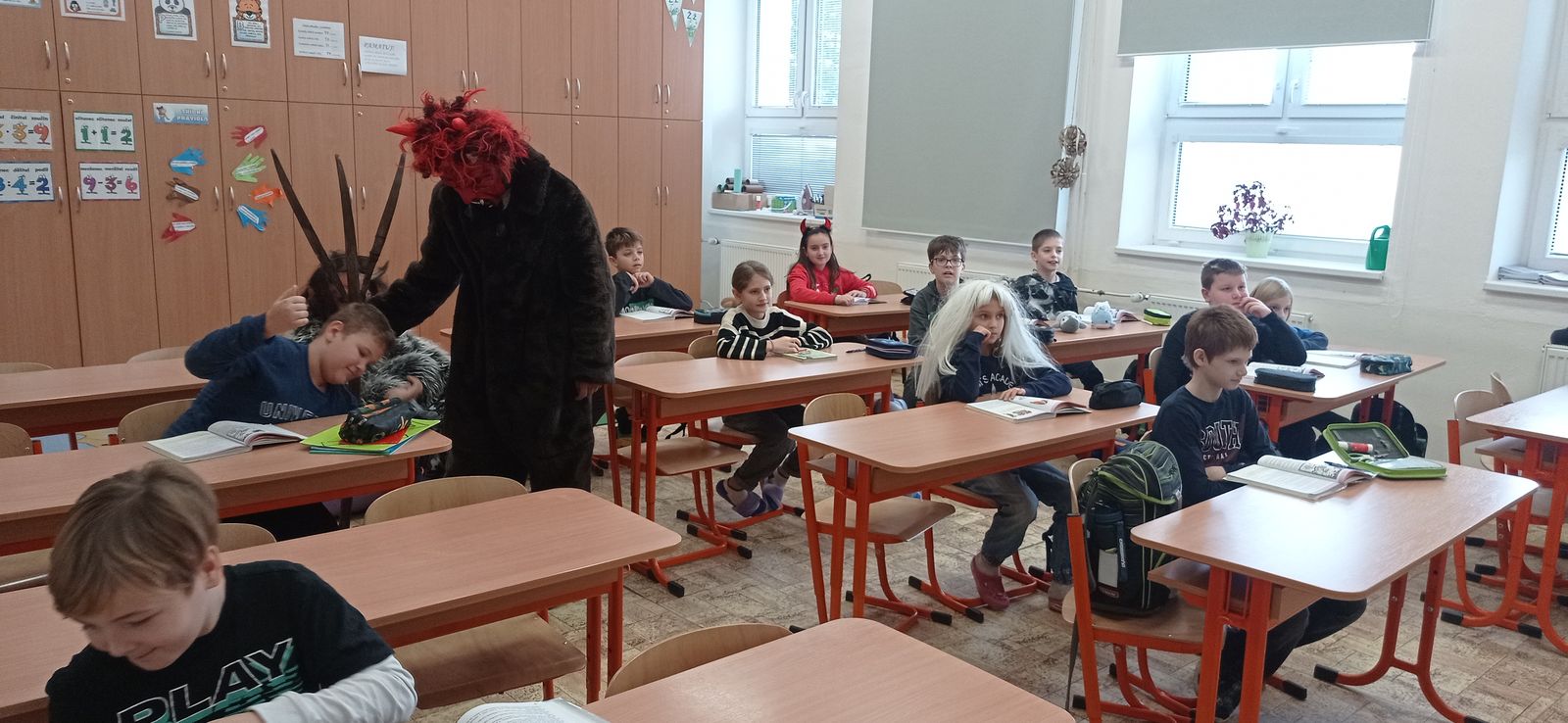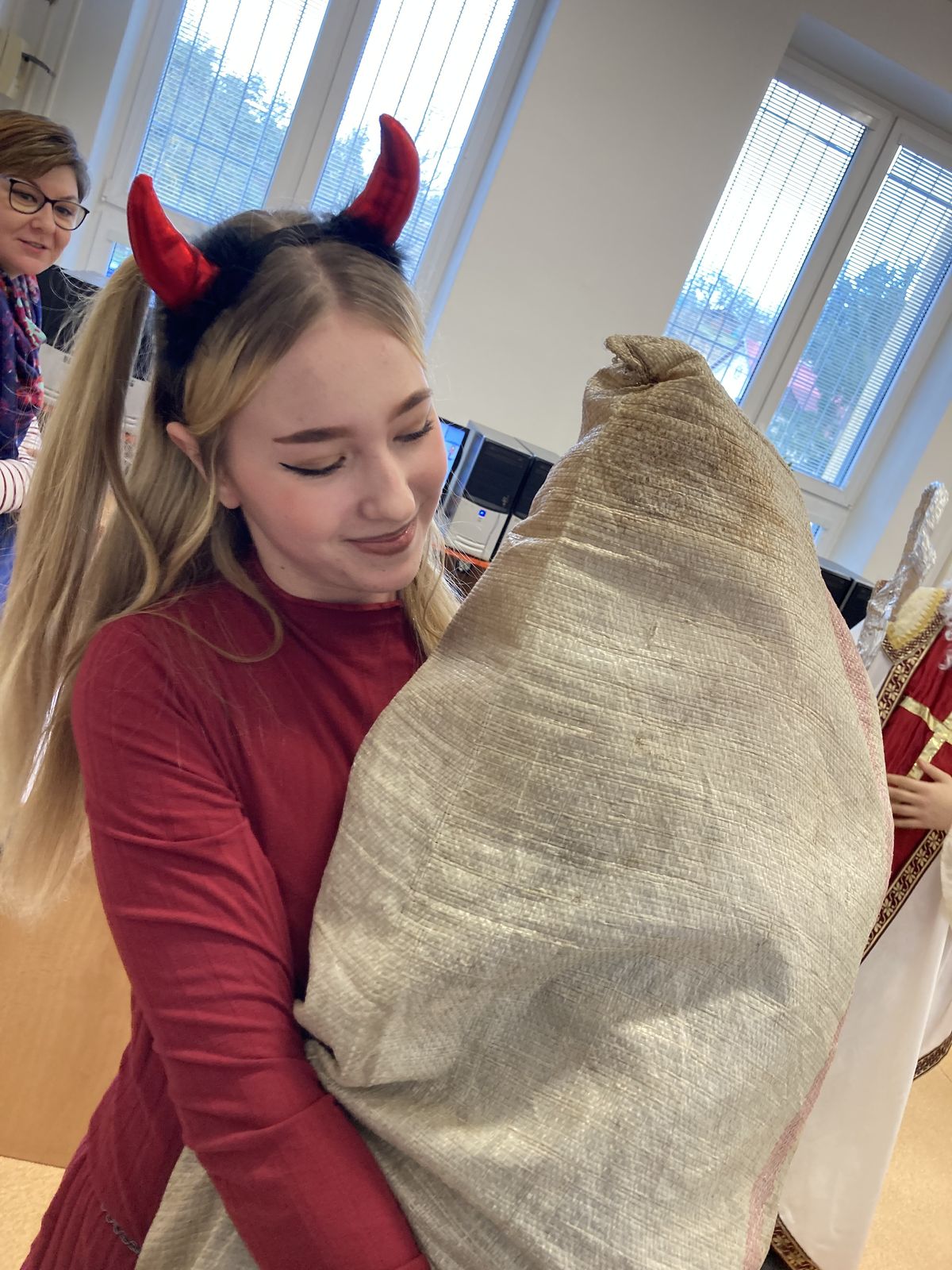 Mikuláš se svou družinou prošel třídy menších dětí také v hlavní budově na ulici Smetanova, nezapomněl ani na mateřskou školu.
