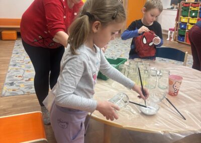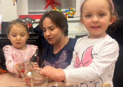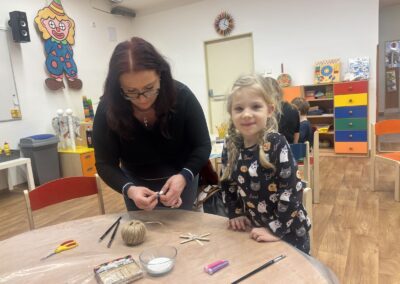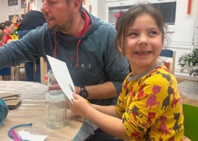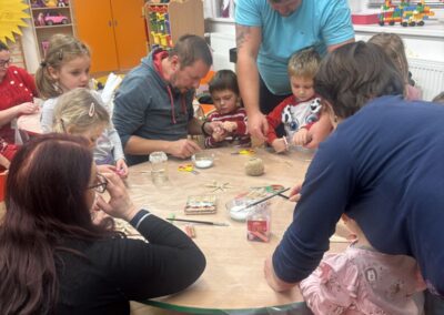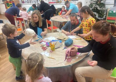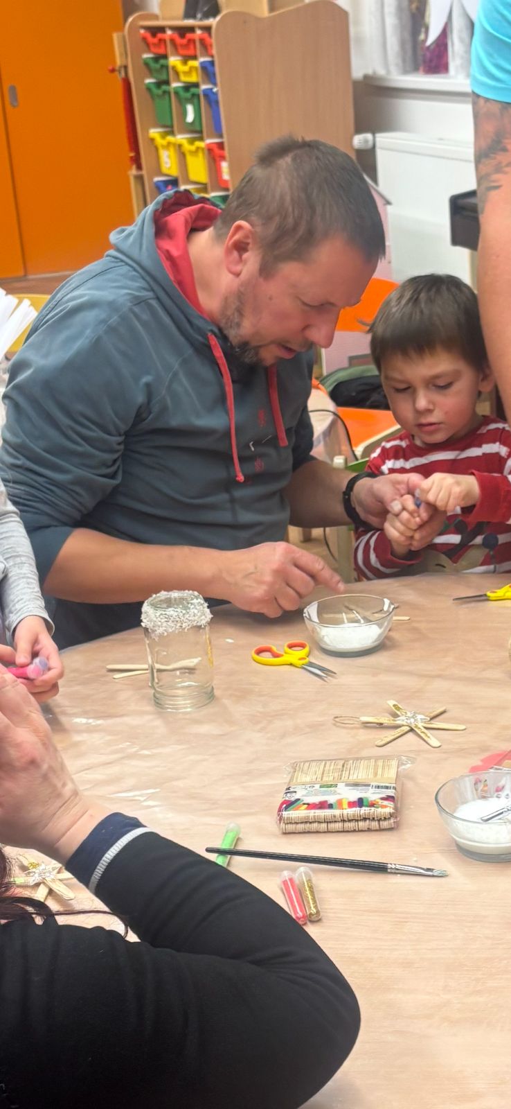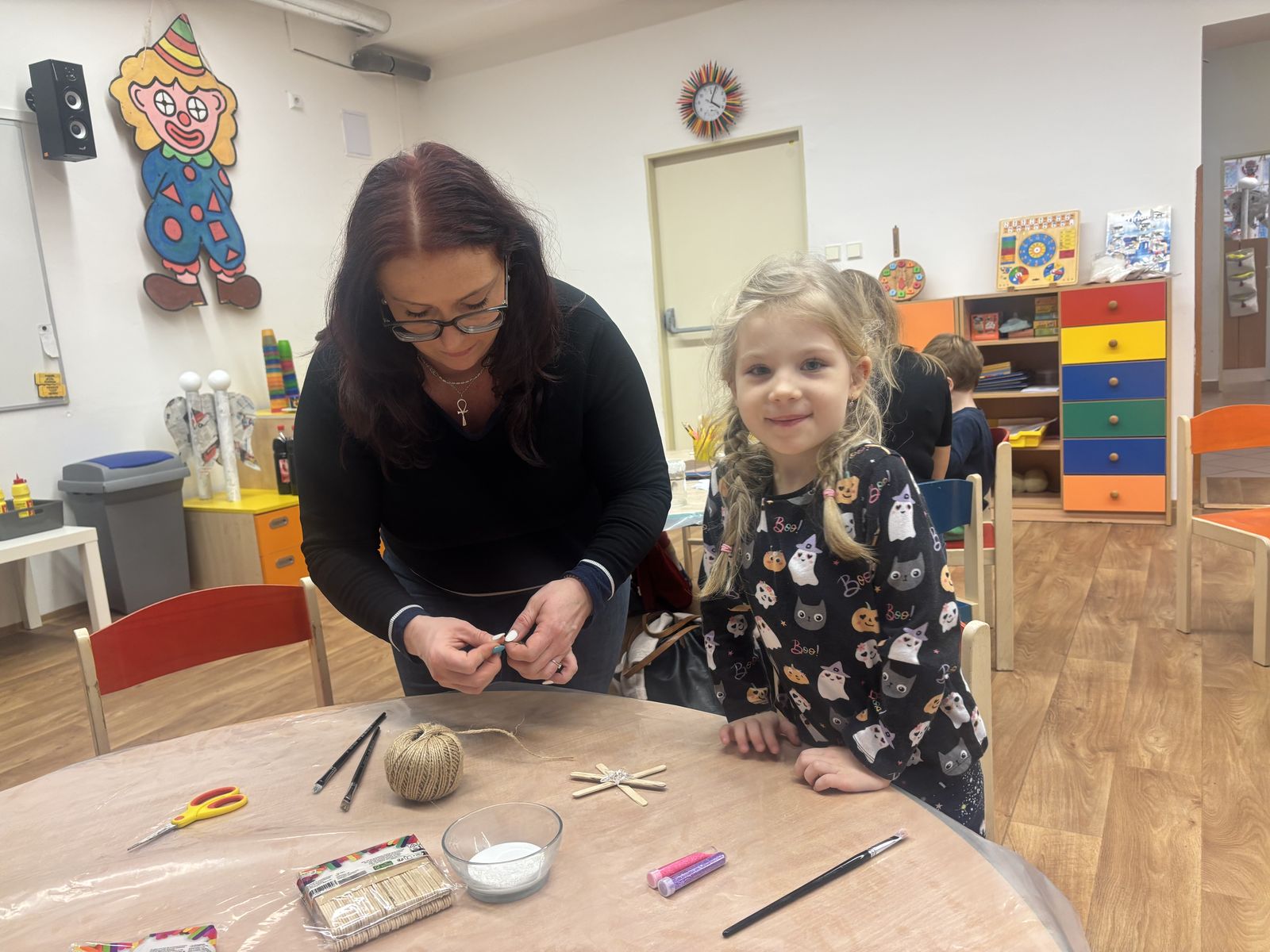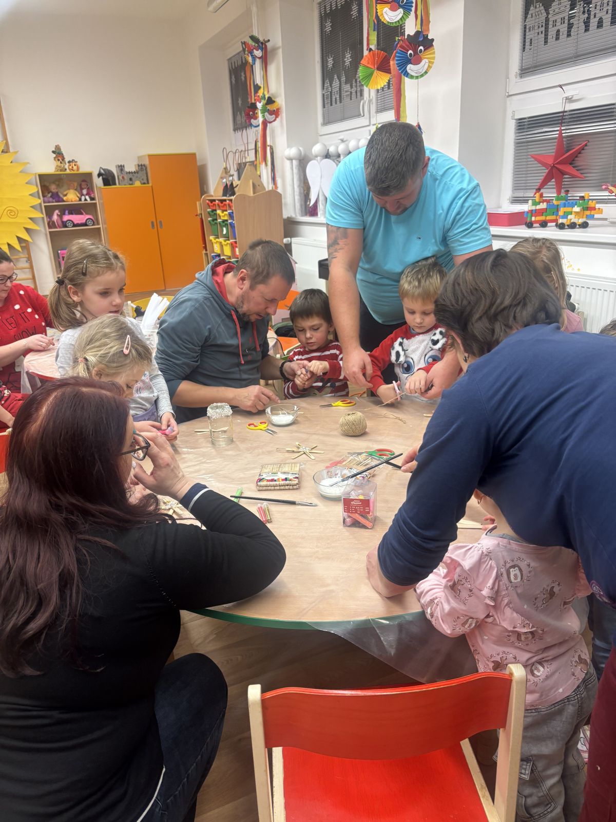 Dne 12. 12. 2024 proběhlo v mateřské škole „Vánoční tvoření s rodiči.“ Děti si s velkým nadšením a za pomoci rodičů vyráběly vánoční světýlka, drobné ozdoby na stromeček a andělíčky z vlny. Celou akci doprovázela příjemná vánoční atmosféra, kterou jsme podpořili poslechem tradičních vánočních koled. Společně strávený čas přinesl radost nejen dětem, ale i jejich rodičům a vytvořil krásné vzpomínky na společné tvoření.