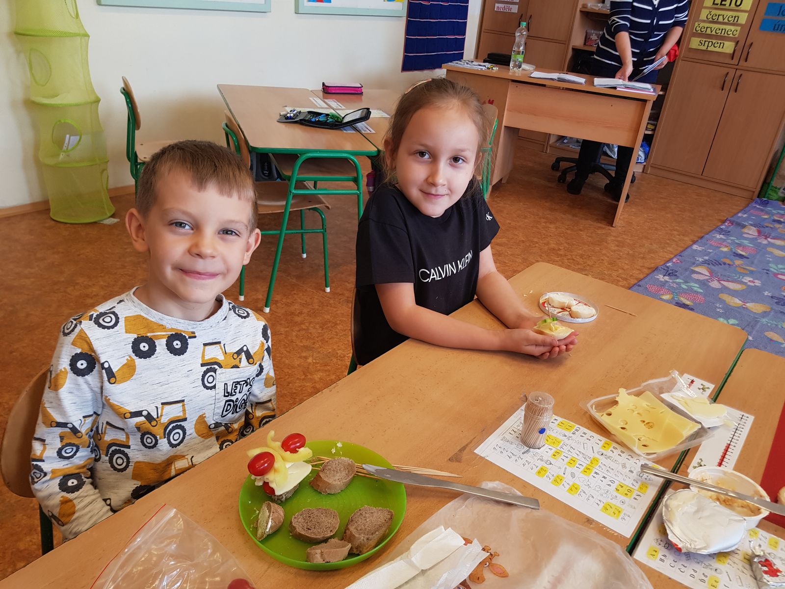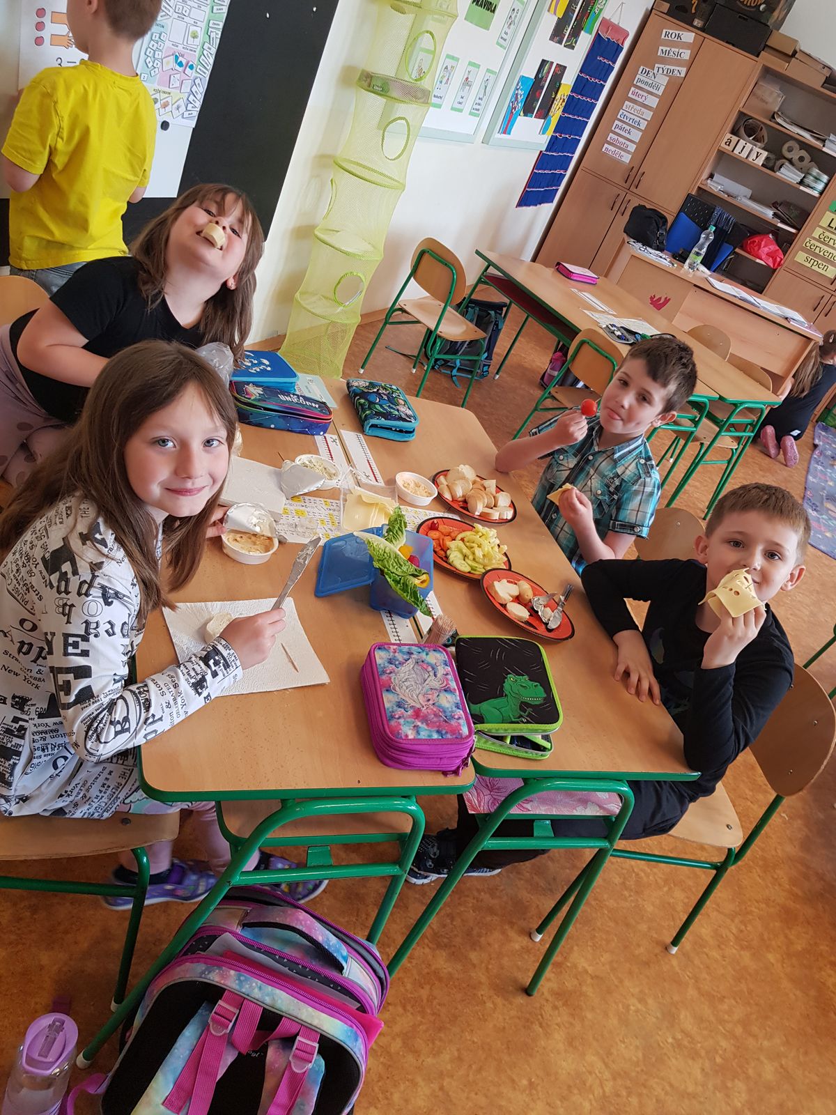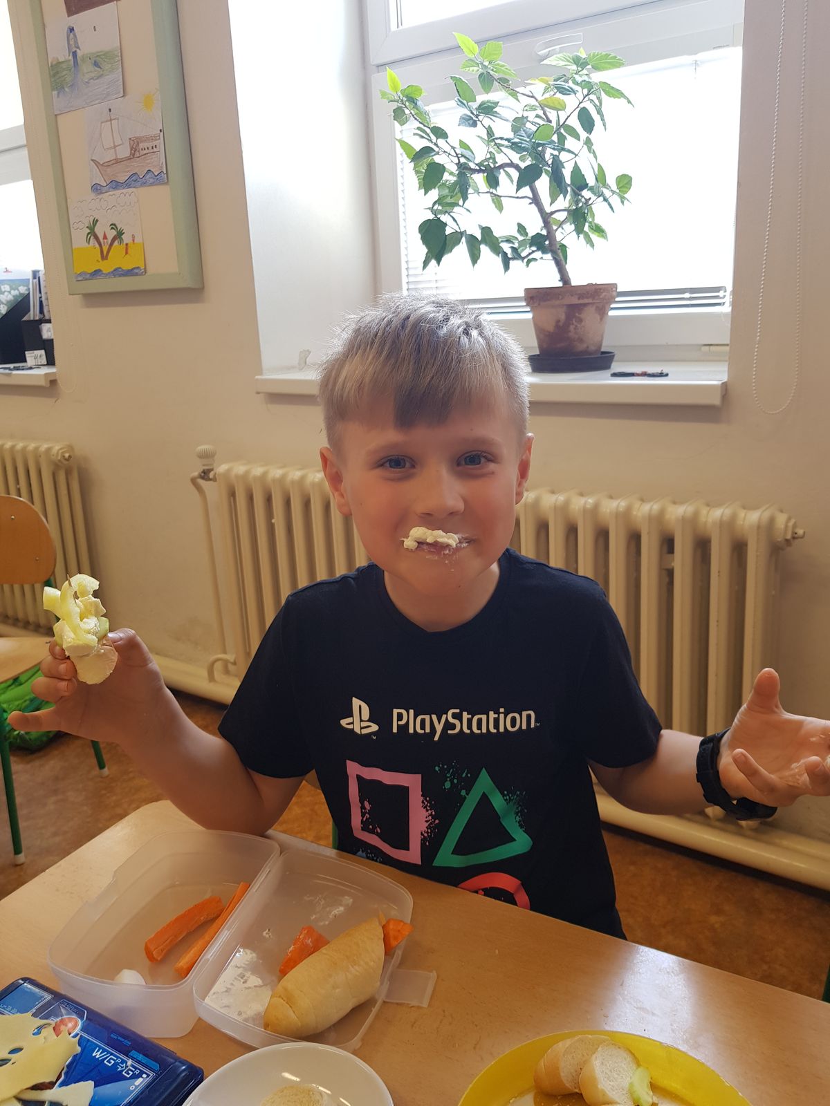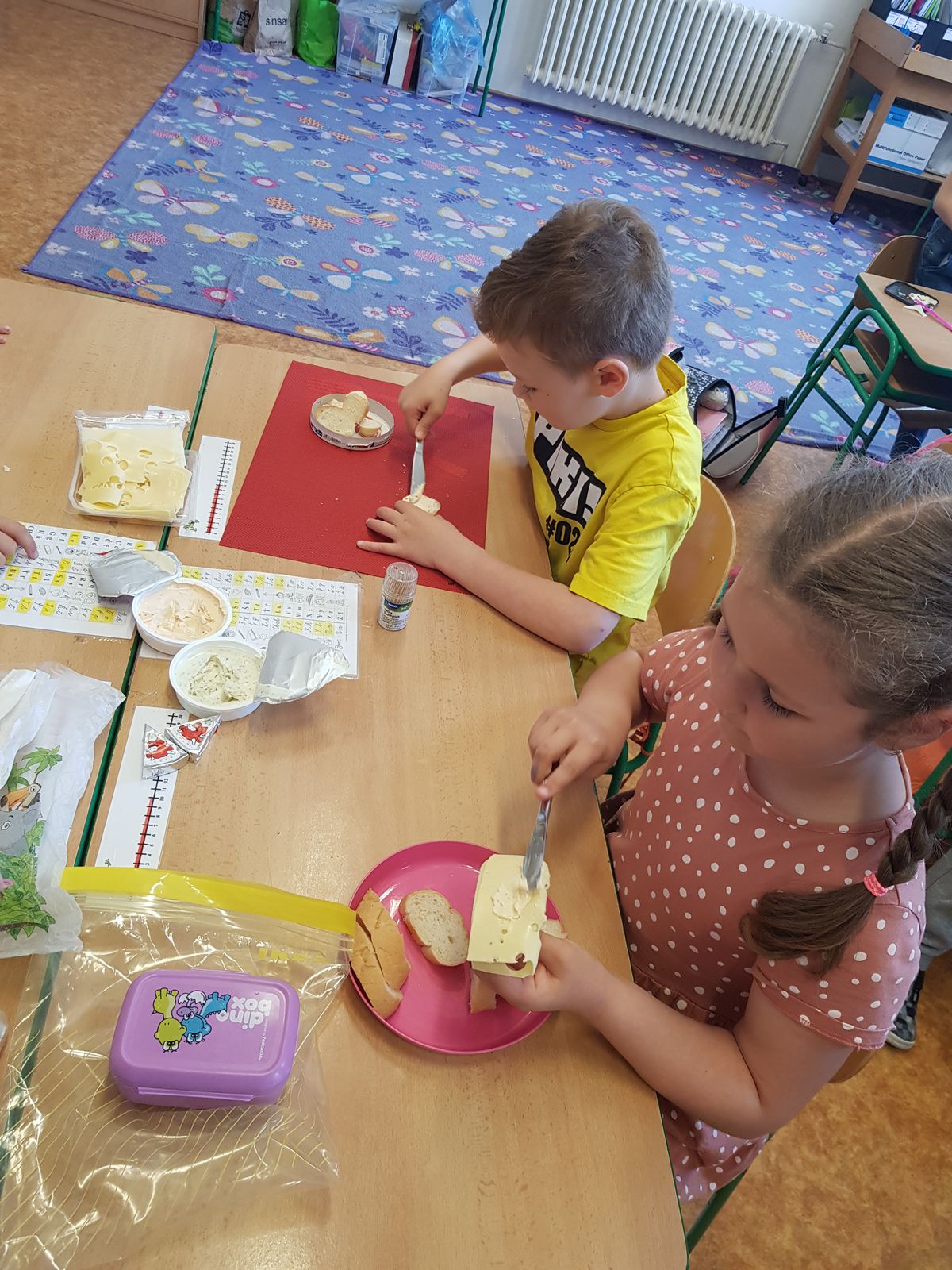 Ochutnávka v 1.B30. Kvě, 2023 | Školní družina, Základní škola Dne 24. 5. proběhla ve třídě 1.B ochutnávka mléčných výrobků od našeho Bovýska. V hodině Pracovní výchovy jsme si připravili krásné svačinové jednohubky. Žáci a žákyně 1.B