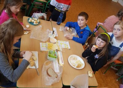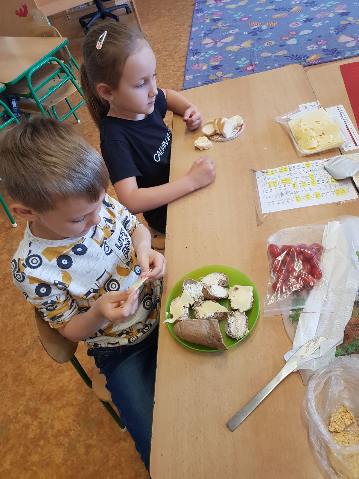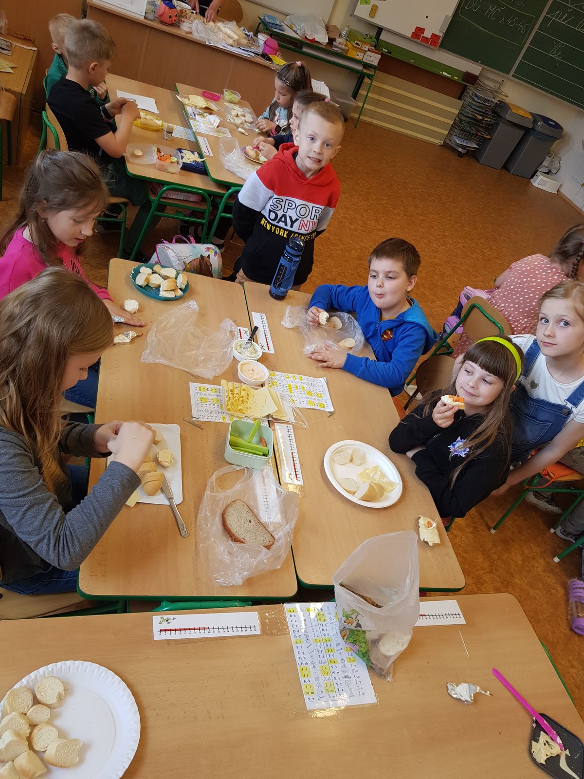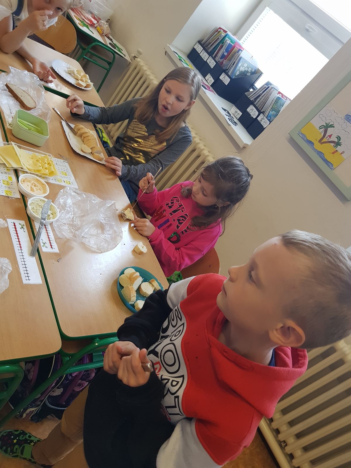 Ochutnávka v 1.B30. Kvě, 2023 | Školní družina, Základní škola Dne 24. 5. proběhla ve třídě 1.B ochutnávka mléčných výrobků od našeho Bovýska. V hodině Pracovní výchovy jsme si připravili krásné svačinové jednohubky. Žáci a žákyně 1.B