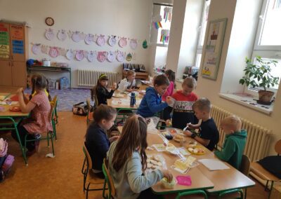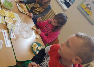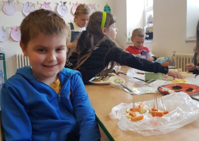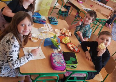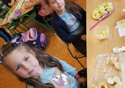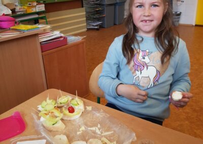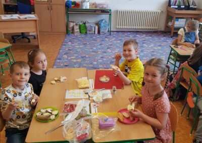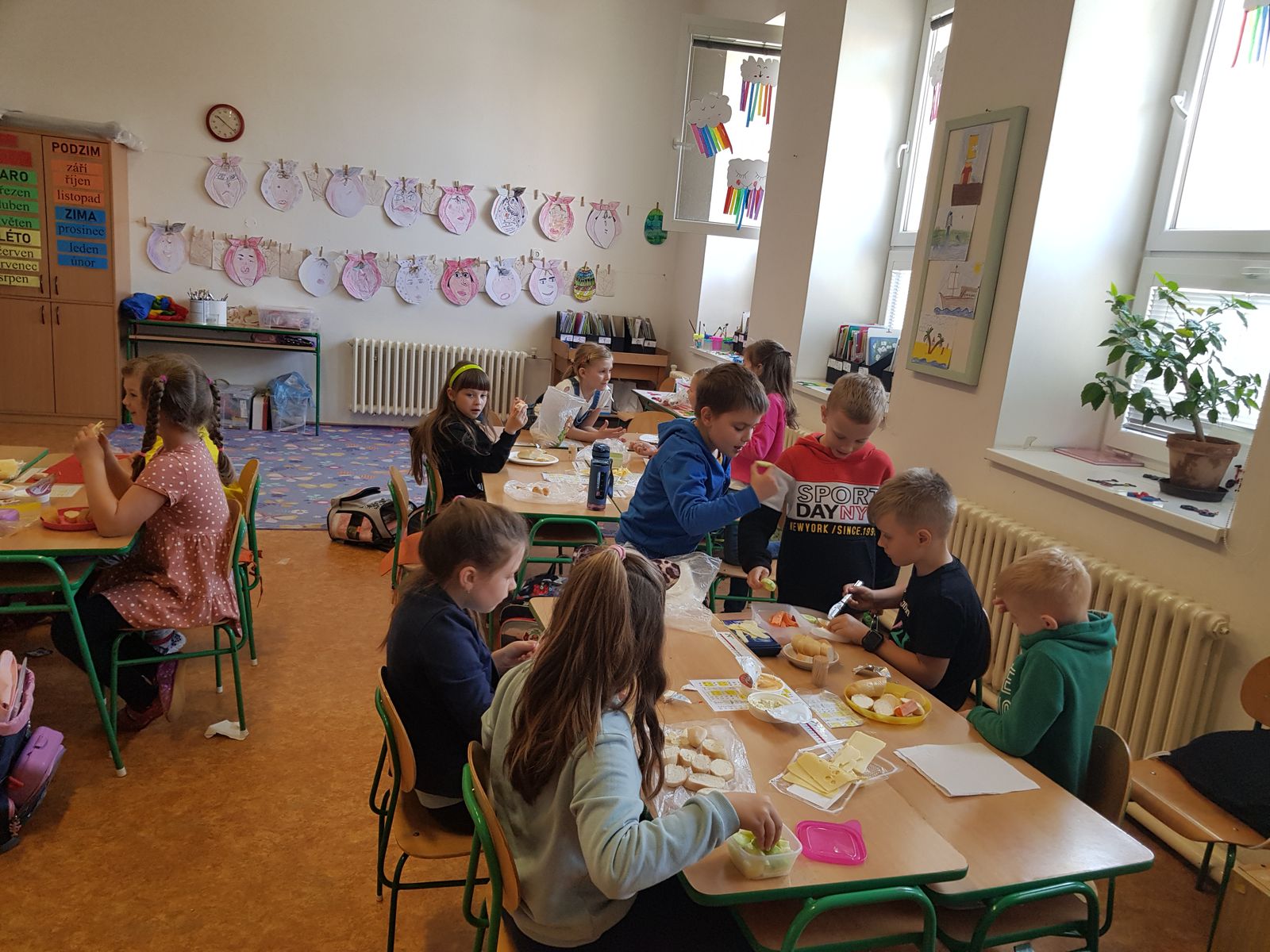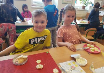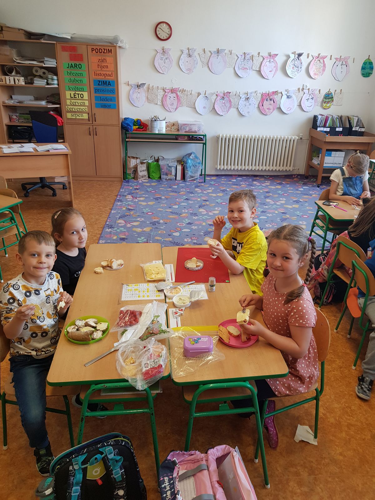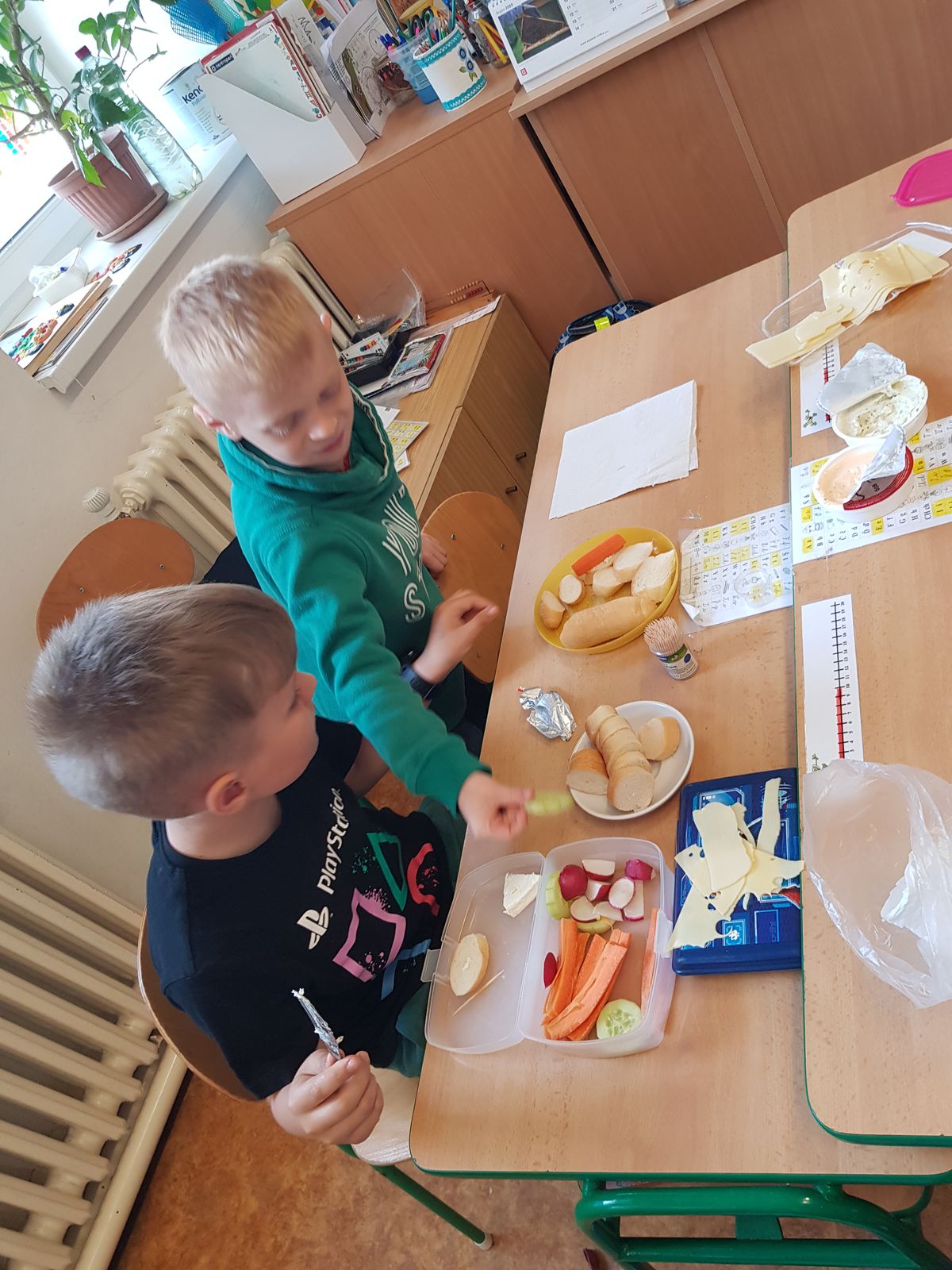 Ochutnávka v 1.B30. Kvě, 2023 | Školní družina, Základní škola Dne 24. 5. proběhla ve třídě 1.B ochutnávka mléčných výrobků od našeho Bovýska. V hodině Pracovní výchovy jsme si připravili krásné svačinové jednohubky. Žáci a žákyně 1.B