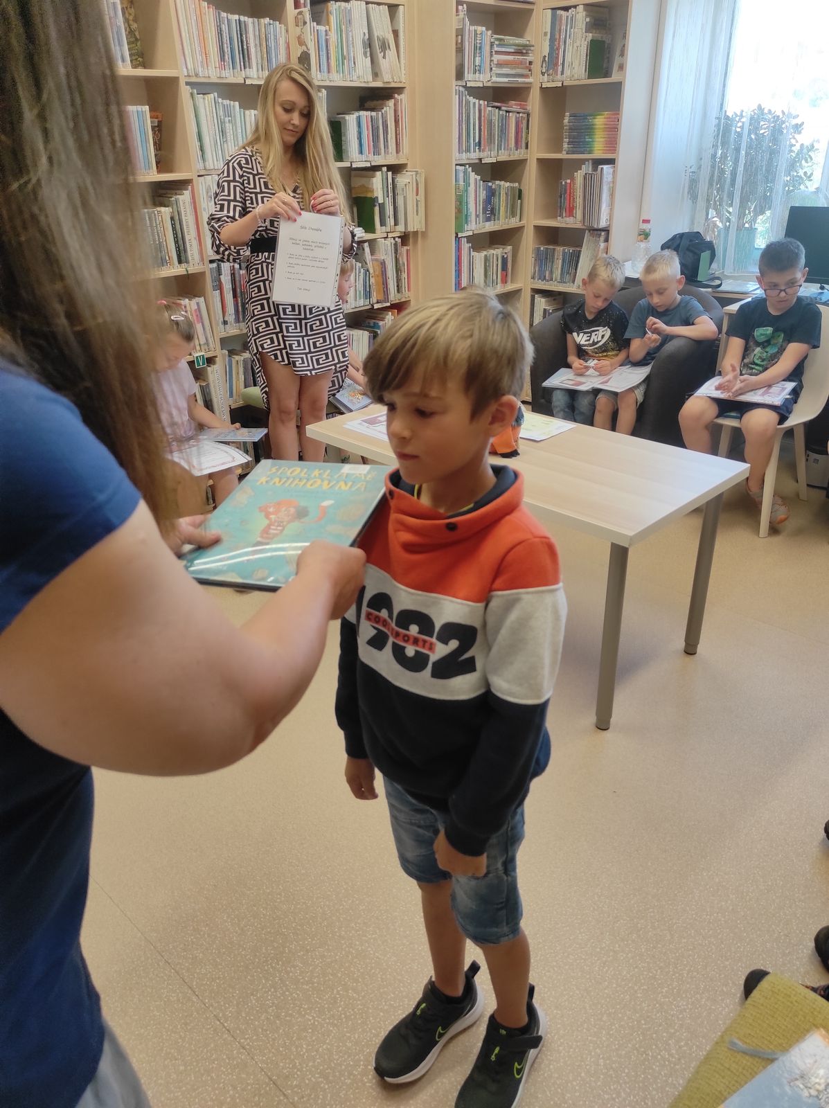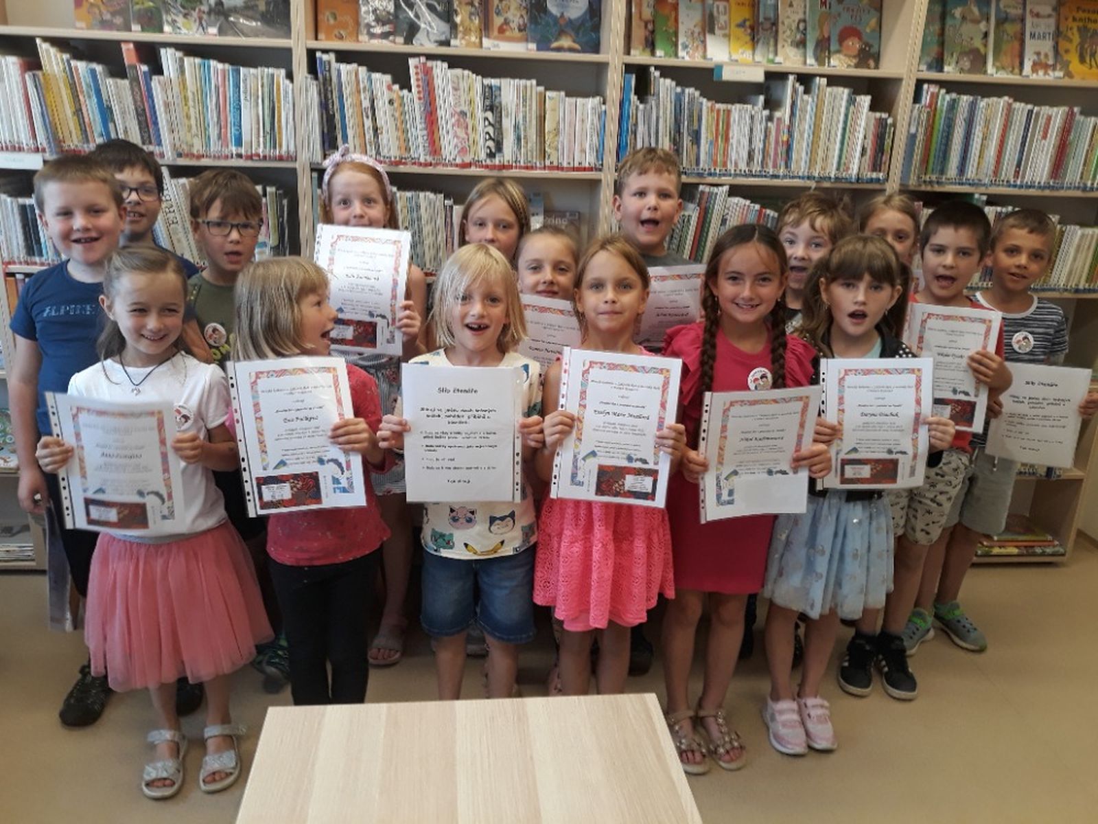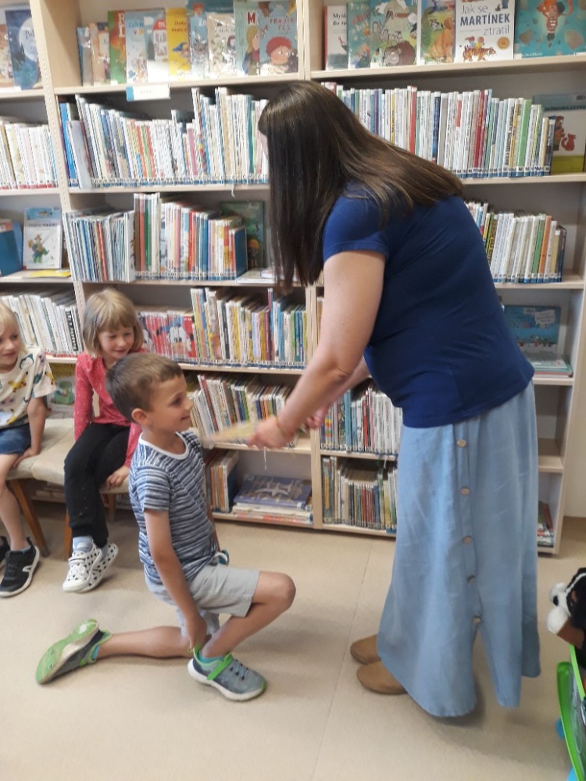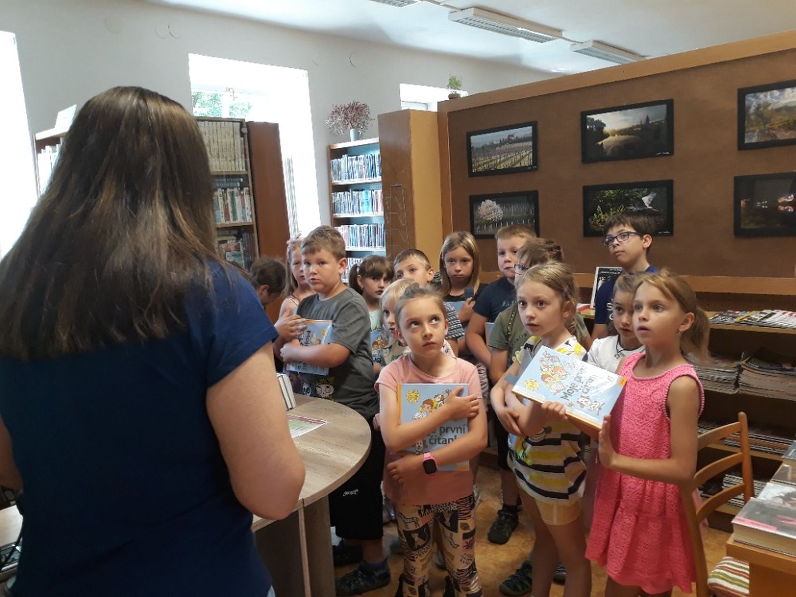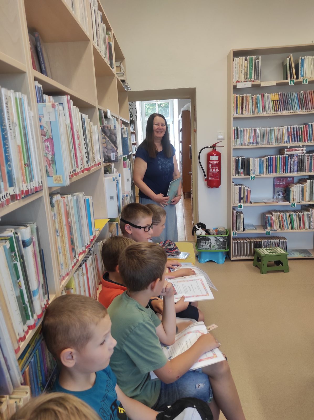 Konec školního roku se nezadržitelně blíží a naši prvňáčkové se už kamarádí se všemi písmenky abecedy. A proto je nejvyšší čas pasovat je mezi nás, čtenáře. V Městské knihovně Dolní Kounice nás přivítala paní knihovnice Jana Káčerková, seznámila nás s uspořádáním knihovny, kde jakou knihu najdeme a také jak s nimi správně zacházet. Poté každý žák přečetl úryvek z pohádky, tím na vlastní oči předvedl, že se právem stává čtenářem. Poté složili čtenářský slib, že budou knihy opatrovat a vážit si všeho dobrého, co je v nich napsáno. Paní knihovnice položením knihy na obě ramena a hlavu zpečetila jejich čtenářské dovednosti. Na památku této významné události děti obdržely pasovací listinu a placku Jsem čtenář. Nutno podoktnout, že ani jeden z malých čtenářů nepřišel při pokládání knihy na hlavu k úhoně, tudíž jejich čtenářské schopnosti zůstaly zachovány. A my doufáme, že budou častěji a častěji otevírat knížky a hledat v nich nejen zábavu, ale i poučení.