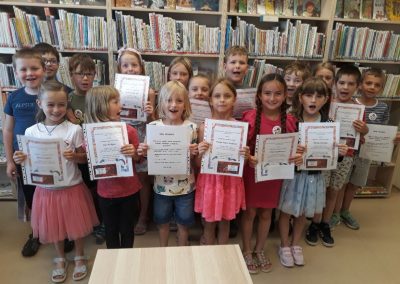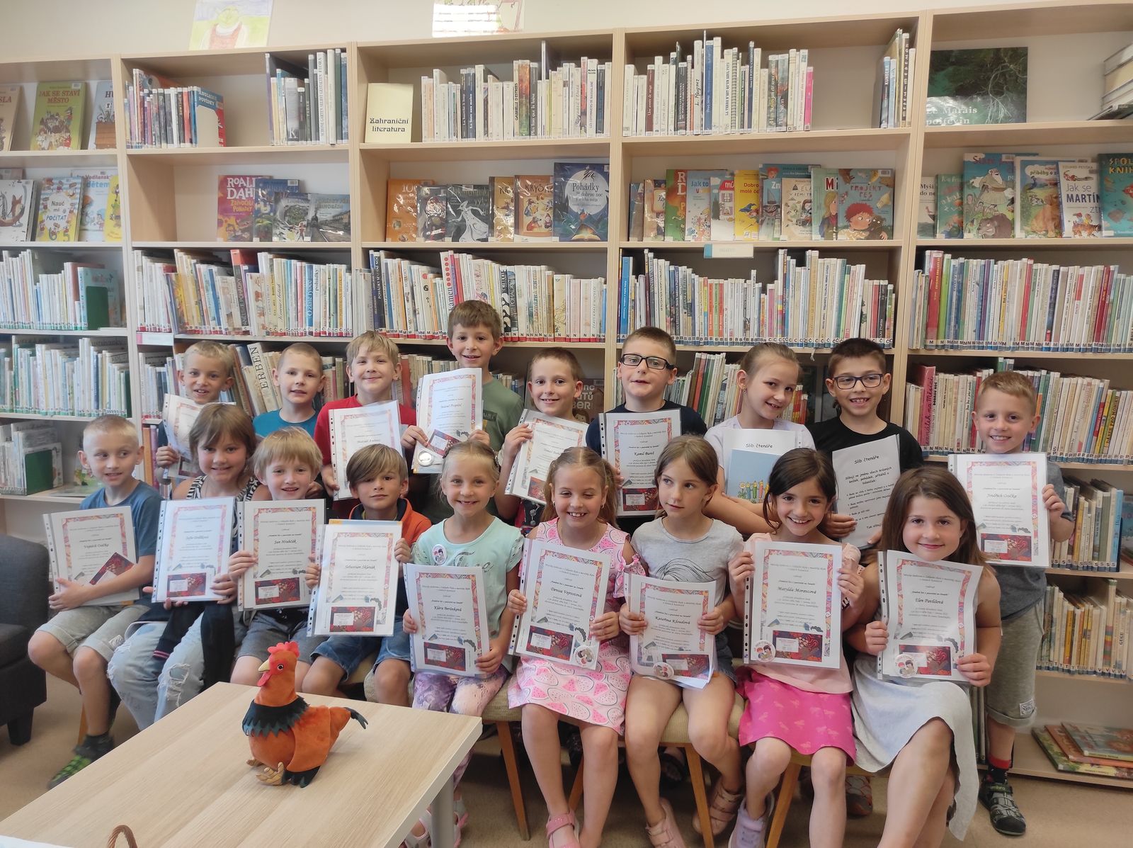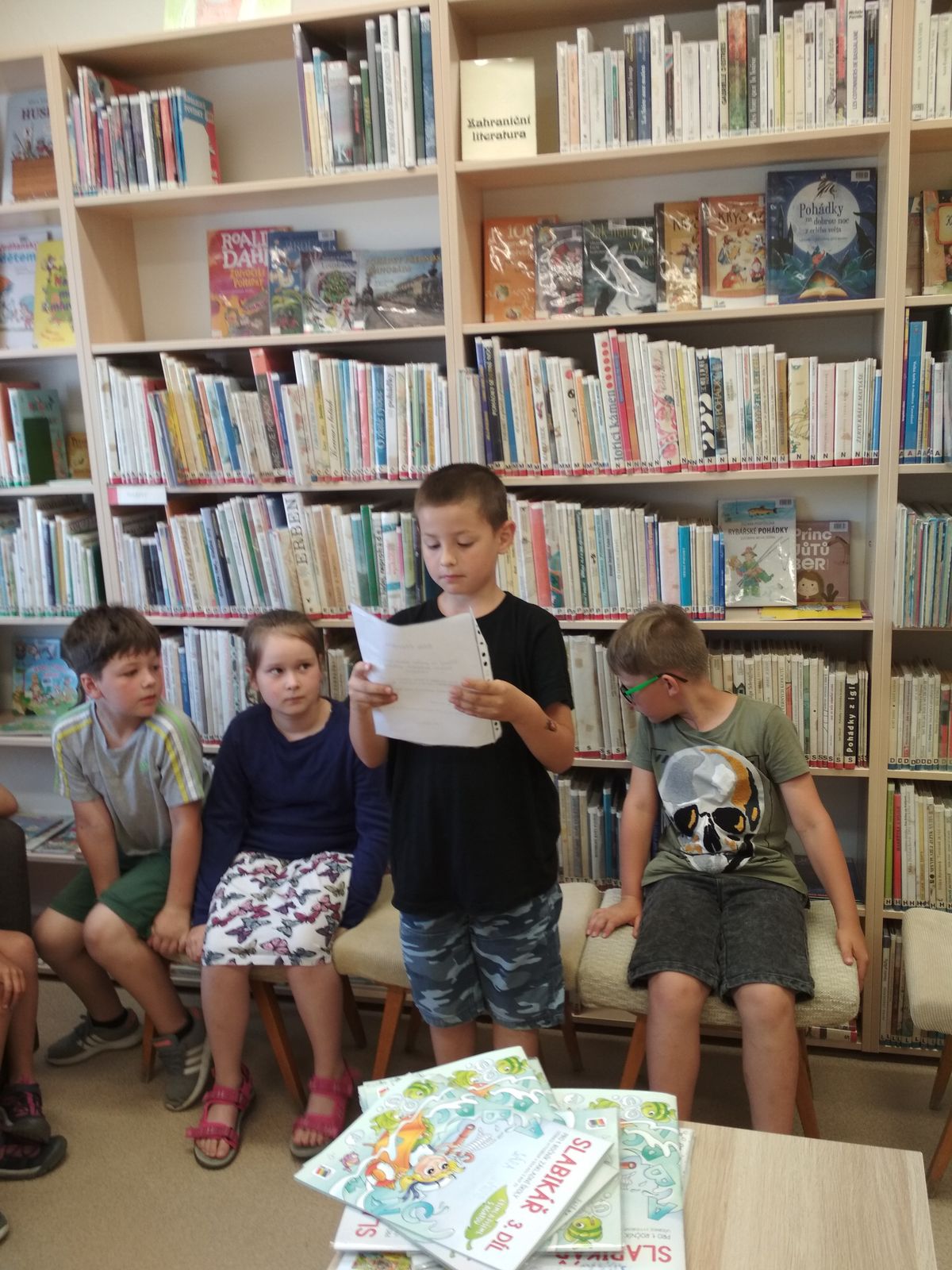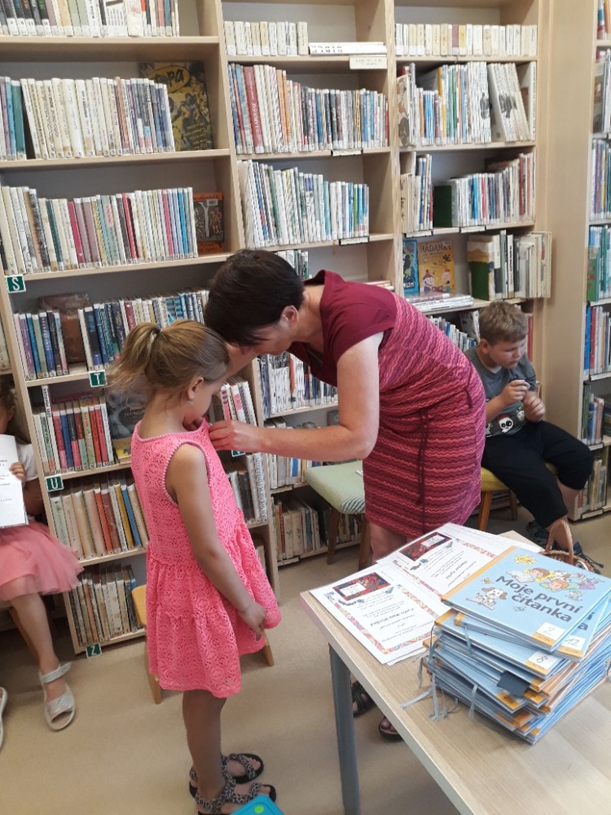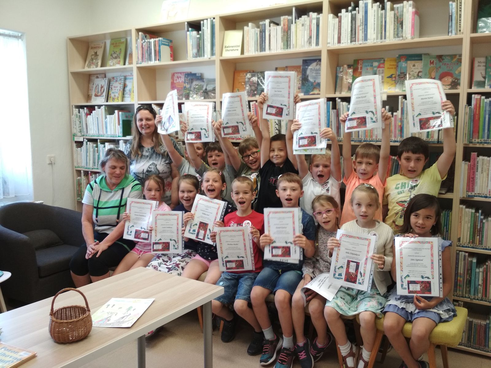 Konec školního roku se nezadržitelně blíží a naši prvňáčkové se už kamarádí se všemi písmenky abecedy. A proto je nejvyšší čas pasovat je mezi nás, čtenáře. V Městské knihovně Dolní Kounice nás přivítala paní knihovnice Jana Káčerková, seznámila nás s uspořádáním knihovny, kde jakou knihu najdeme a také jak s nimi správně zacházet. Poté každý žák přečetl úryvek z pohádky, tím na vlastní oči předvedl, že se právem stává čtenářem. Poté složili čtenářský slib, že budou knihy opatrovat a vážit si všeho dobrého, co je v nich napsáno. Paní knihovnice položením knihy na obě ramena a hlavu zpečetila jejich čtenářské dovednosti. Na památku této významné události děti obdržely pasovací listinu a placku Jsem čtenář. Nutno podoktnout, že ani jeden z malých čtenářů nepřišel při pokládání knihy na hlavu k úhoně, tudíž jejich čtenářské schopnosti zůstaly zachovány. A my doufáme, že budou častěji a častěji otevírat knížky a hledat v nich nejen zábavu, ale i poučení.