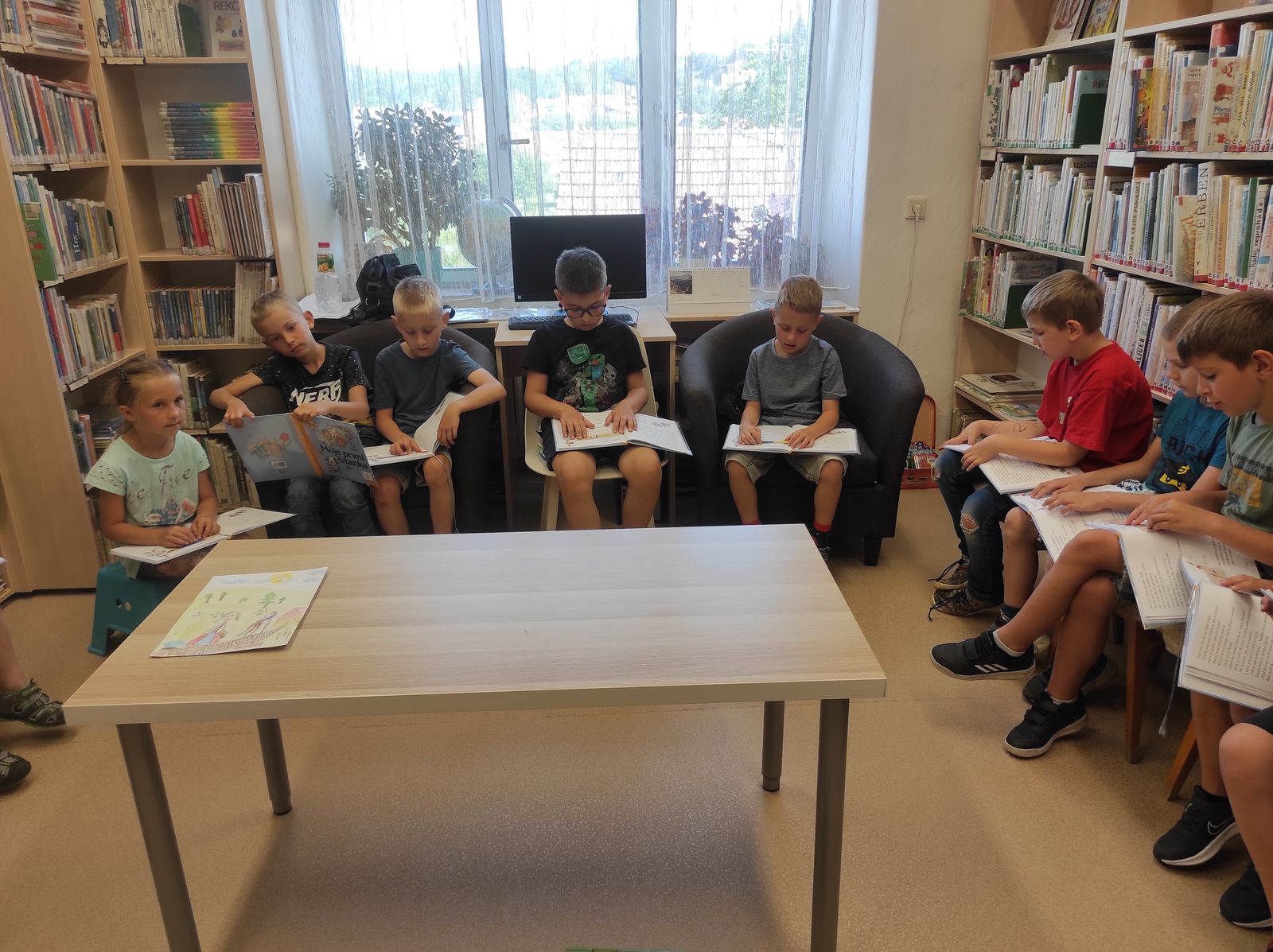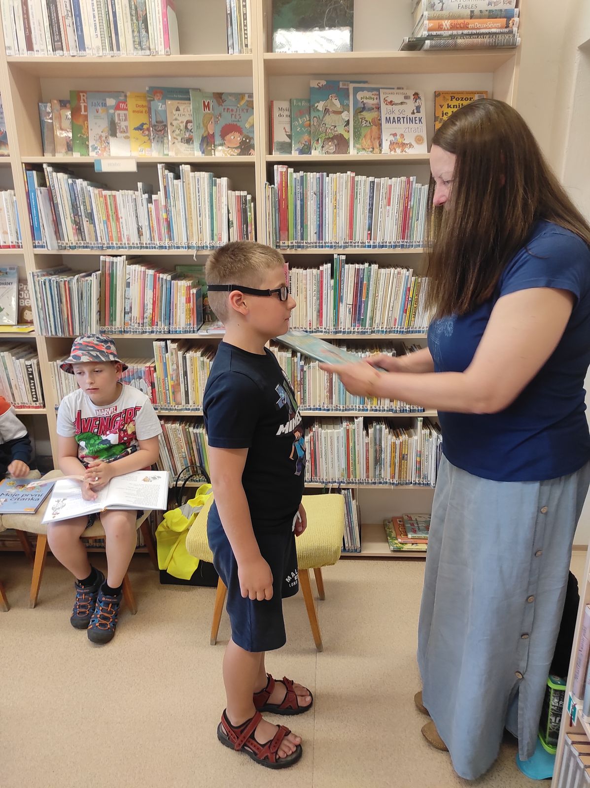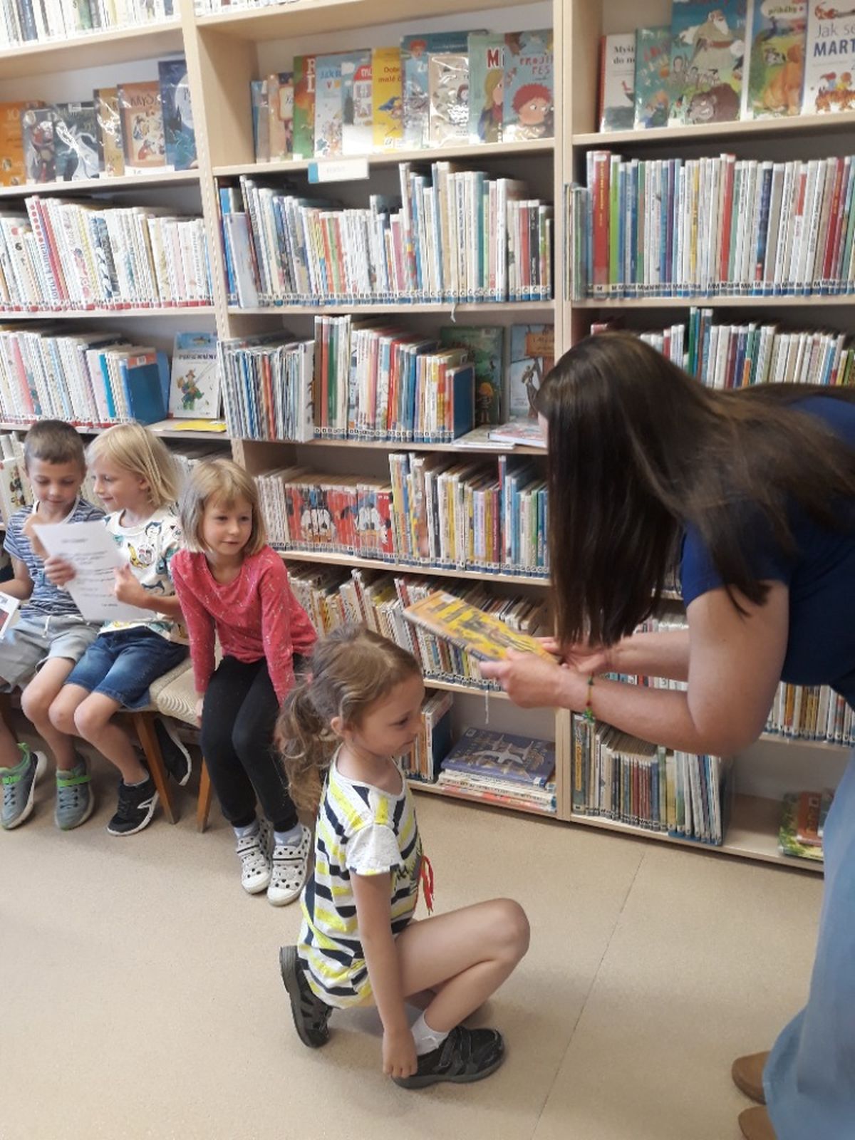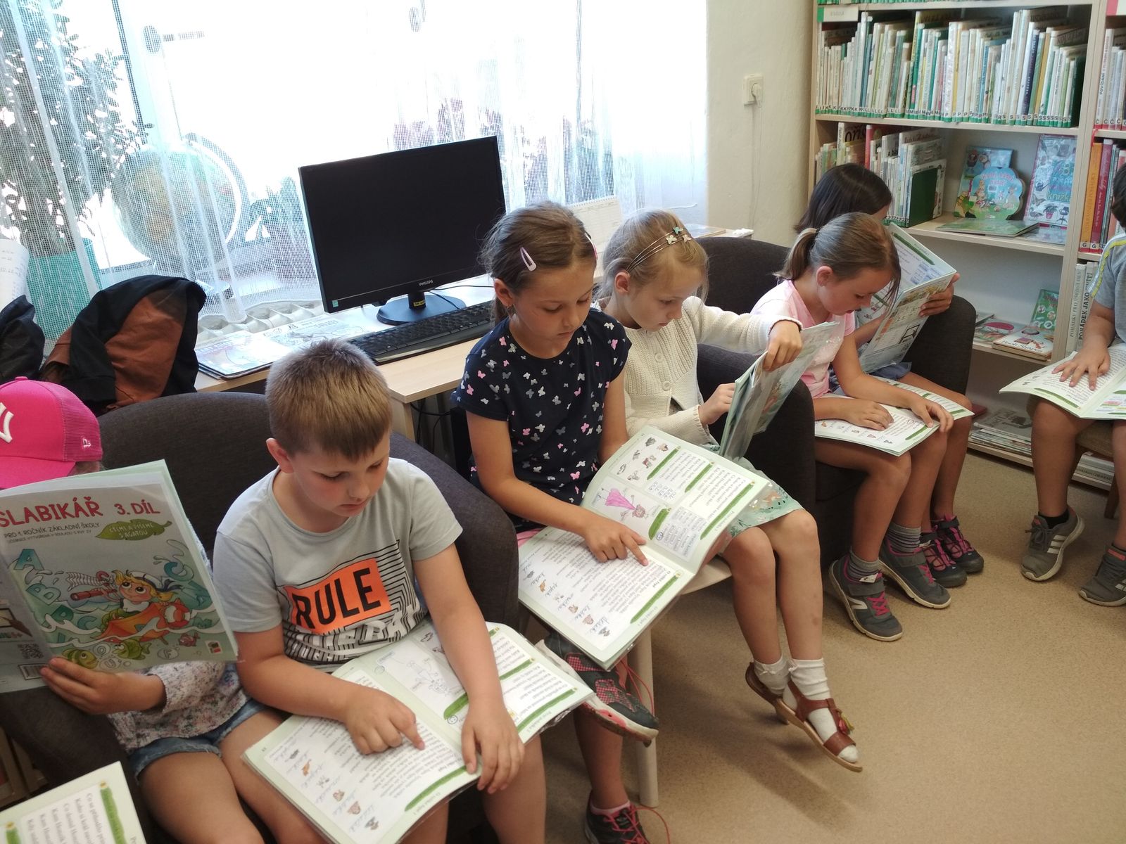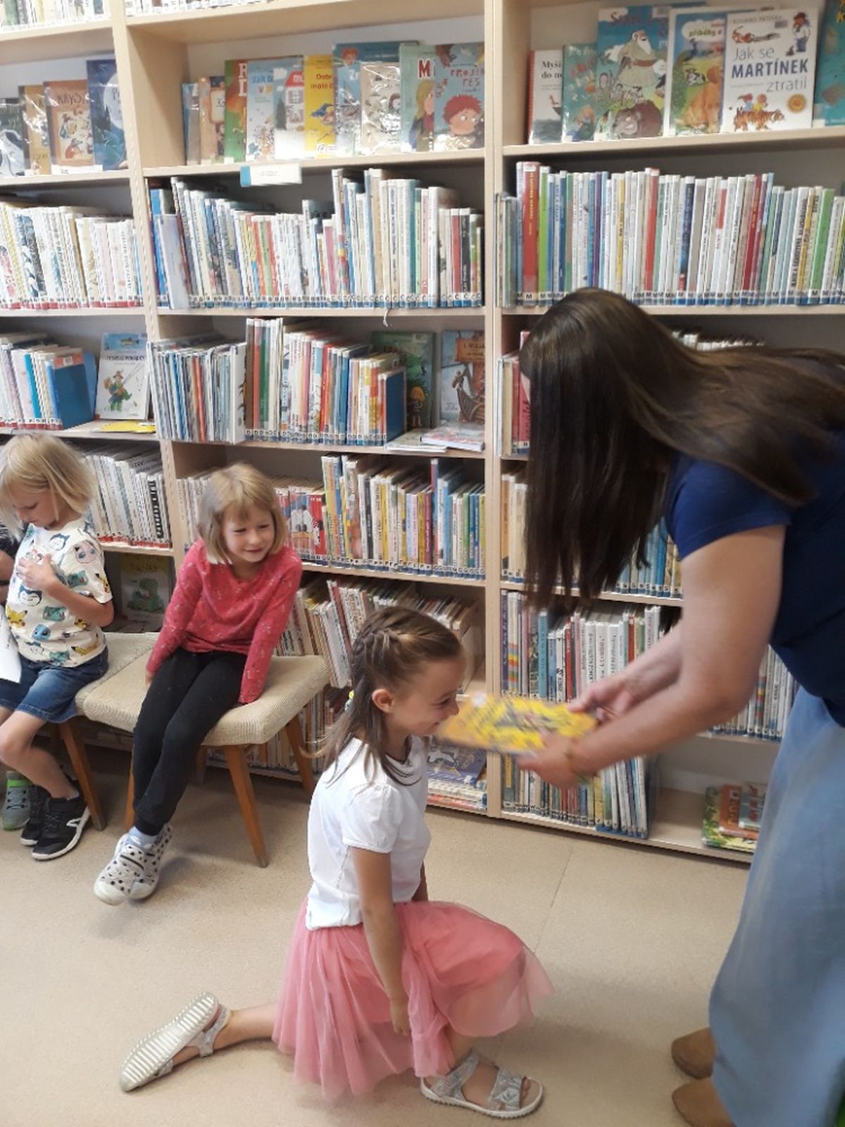 Konec školního roku se nezadržitelně blíží a naši prvňáčkové se už kamarádí se všemi písmenky abecedy. A proto je nejvyšší čas pasovat je mezi nás, čtenáře. V Městské knihovně Dolní Kounice nás přivítala paní knihovnice Jana Káčerková, seznámila nás s uspořádáním knihovny, kde jakou knihu najdeme a také jak s nimi správně zacházet. Poté každý žák přečetl úryvek z pohádky, tím na vlastní oči předvedl, že se právem stává čtenářem. Poté složili čtenářský slib, že budou knihy opatrovat a vážit si všeho dobrého, co je v nich napsáno. Paní knihovnice položením knihy na obě ramena a hlavu zpečetila jejich čtenářské dovednosti. Na památku této významné události děti obdržely pasovací listinu a placku Jsem čtenář. Nutno podoktnout, že ani jeden z malých čtenářů nepřišel při pokládání knihy na hlavu k úhoně, tudíž jejich čtenářské schopnosti zůstaly zachovány. A my doufáme, že budou častěji a častěji otevírat knížky a hledat v nich nejen zábavu, ale i poučení.