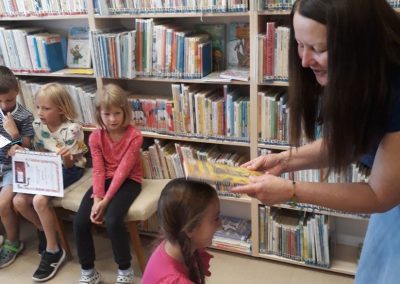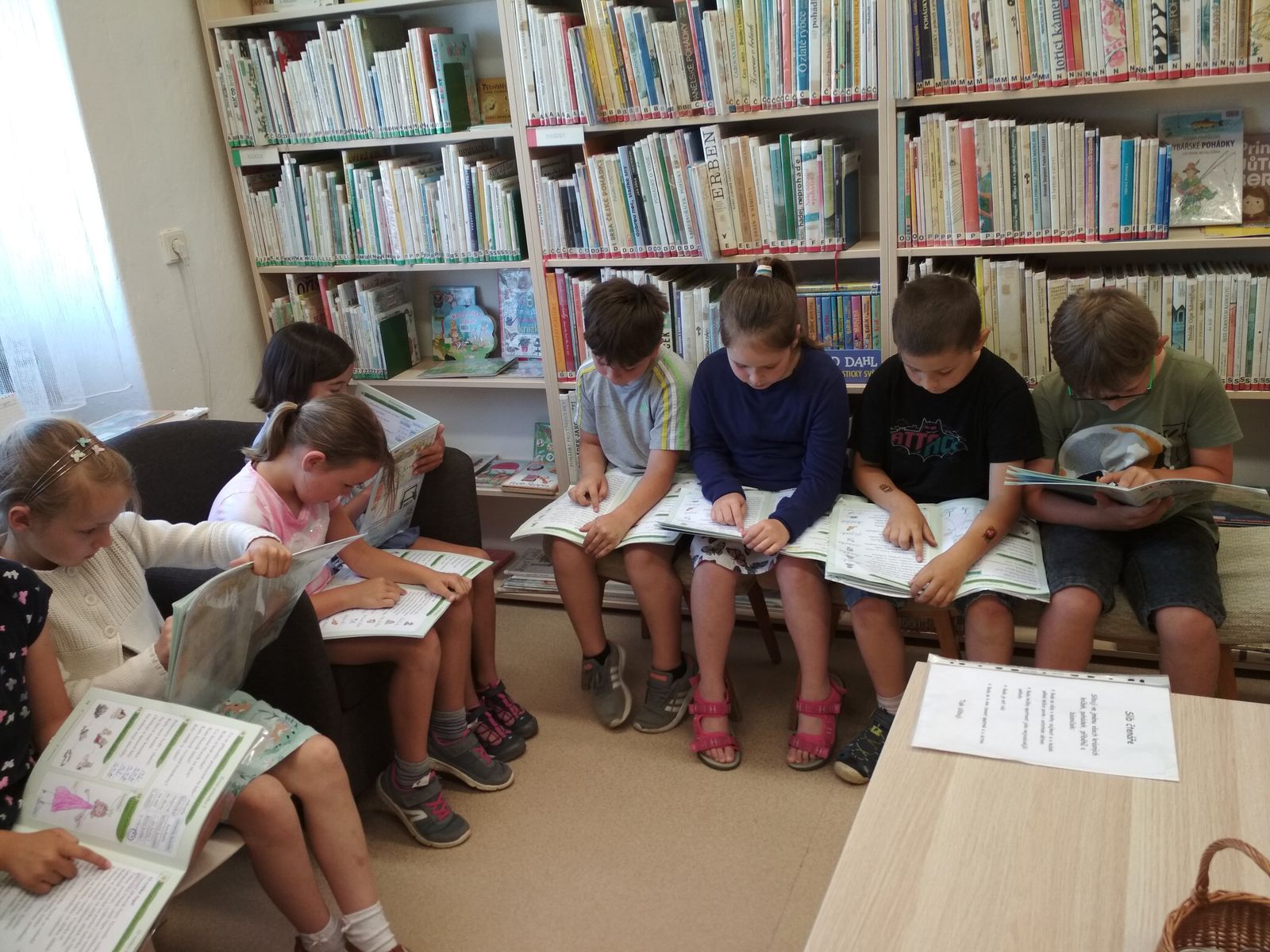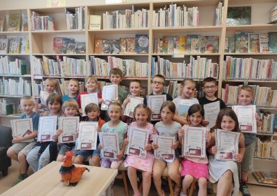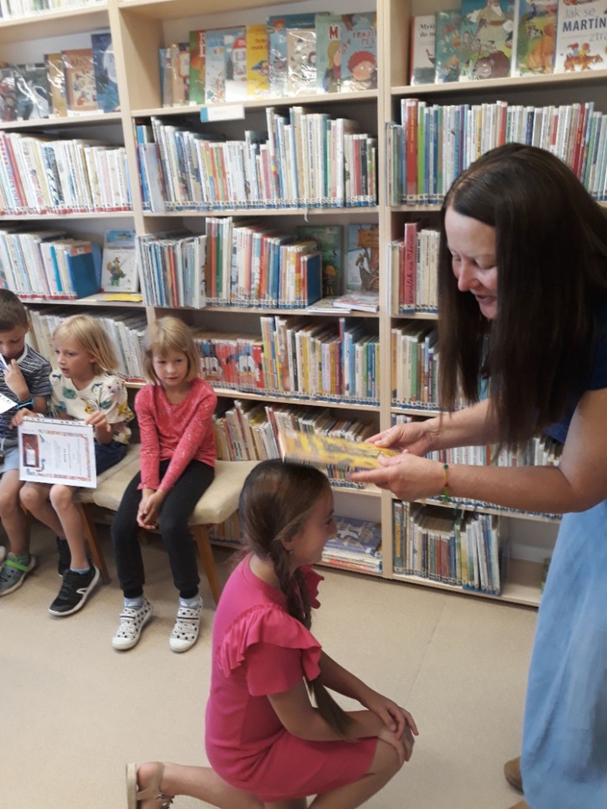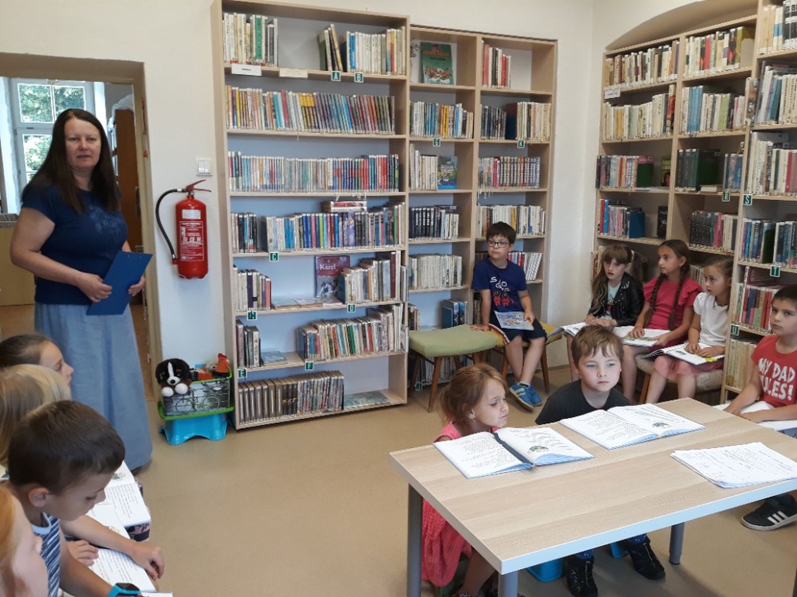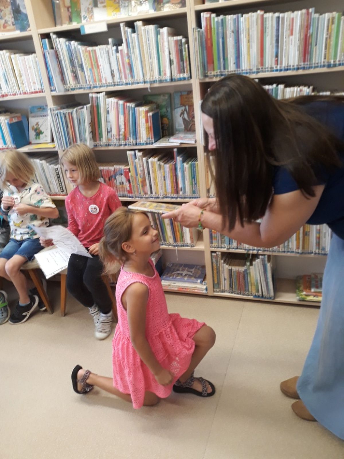 Konec školního roku se nezadržitelně blíží a naši prvňáčkové se už kamarádí se všemi písmenky abecedy. A proto je nejvyšší čas pasovat je mezi nás, čtenáře. V Městské knihovně Dolní Kounice nás přivítala paní knihovnice Jana Káčerková, seznámila nás s uspořádáním knihovny, kde jakou knihu najdeme a také jak s nimi správně zacházet. Poté každý žák přečetl úryvek z pohádky, tím na vlastní oči předvedl, že se právem stává čtenářem. Poté složili čtenářský slib, že budou knihy opatrovat a vážit si všeho dobrého, co je v nich napsáno. Paní knihovnice položením knihy na obě ramena a hlavu zpečetila jejich čtenářské dovednosti. Na památku této významné události děti obdržely pasovací listinu a placku Jsem čtenář. Nutno podoktnout, že ani jeden z malých čtenářů nepřišel při pokládání knihy na hlavu k úhoně, tudíž jejich čtenářské schopnosti zůstaly zachovány. A my doufáme, že budou častěji a častěji otevírat knížky a hledat v nich nejen zábavu, ale i poučení.