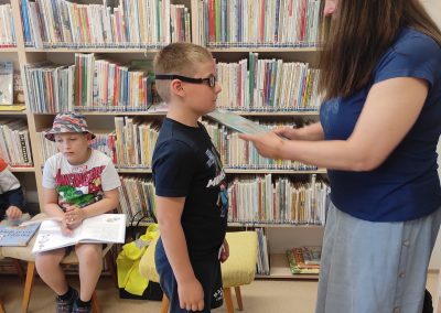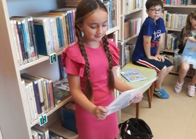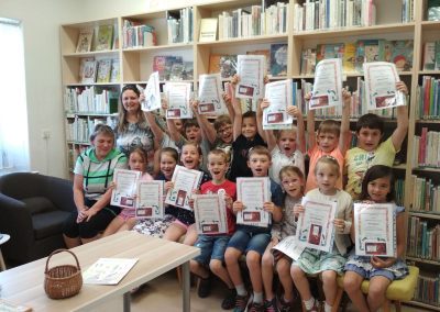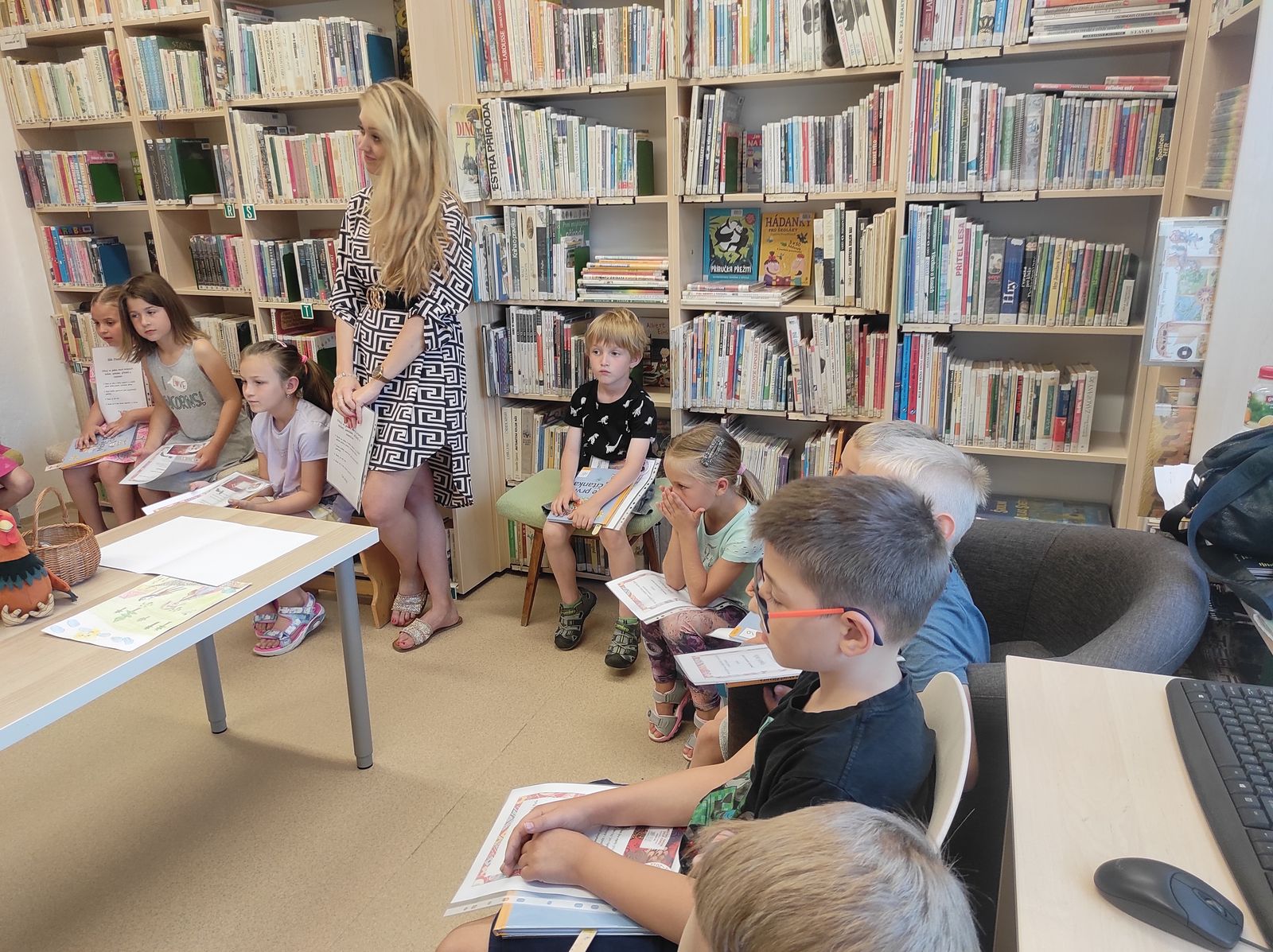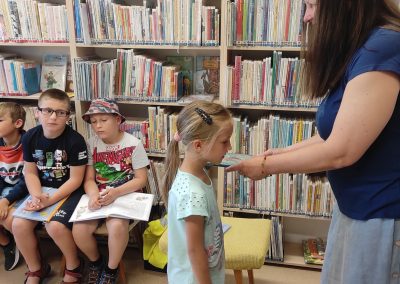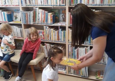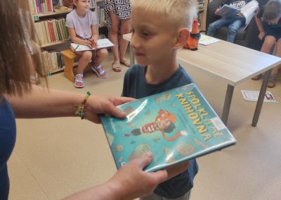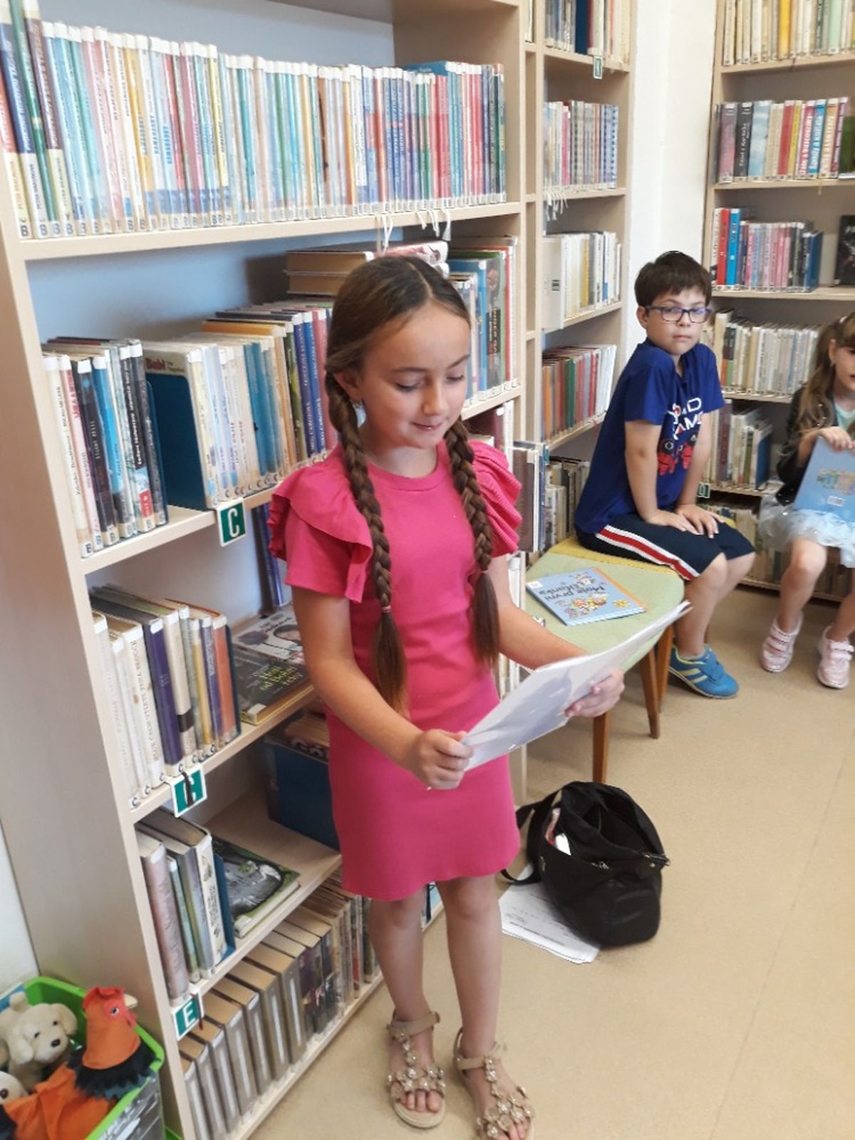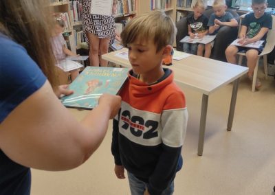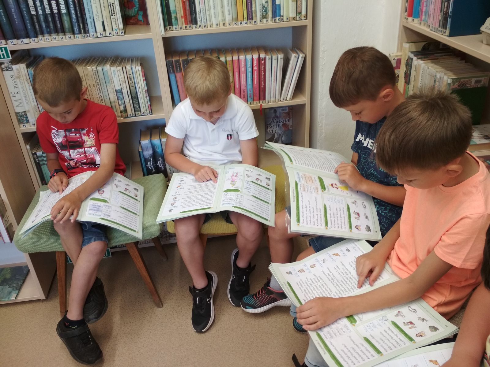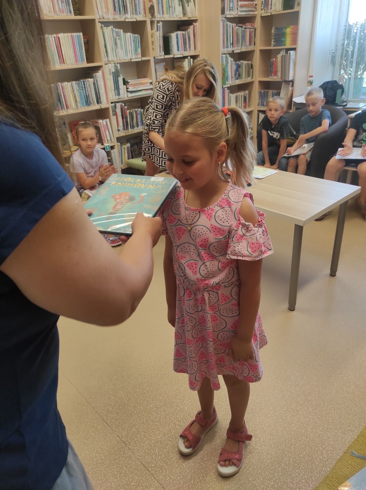 Konec školního roku se nezadržitelně blíží a naši prvňáčkové se už kamarádí se všemi písmenky abecedy. A proto je nejvyšší čas pasovat je mezi nás, čtenáře. V Městské knihovně Dolní Kounice nás přivítala paní knihovnice Jana Káčerková, seznámila nás s uspořádáním knihovny, kde jakou knihu najdeme a také jak s nimi správně zacházet. Poté každý žák přečetl úryvek z pohádky, tím na vlastní oči předvedl, že se právem stává čtenářem. Poté složili čtenářský slib, že budou knihy opatrovat a vážit si všeho dobrého, co je v nich napsáno. Paní knihovnice položením knihy na obě ramena a hlavu zpečetila jejich čtenářské dovednosti. Na památku této významné události děti obdržely pasovací listinu a placku Jsem čtenář. Nutno podoktnout, že ani jeden z malých čtenářů nepřišel při pokládání knihy na hlavu k úhoně, tudíž jejich čtenářské schopnosti zůstaly zachovány. A my doufáme, že budou častěji a častěji otevírat knížky a hledat v nich nejen zábavu, ale i poučení.