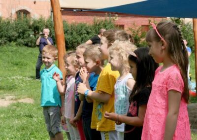 Ve čtvrtek 11. 6. se v odpoledních hodinách na našem Ekohřišti konalo slavnostní pasování předškoláků na školáky. Pozvány byly všechny děti s rodiči, prarodiče, sourozenci a další rodinní příslušníci. Celý týden jsme se s dětmi chystali na tu velkou slávu. Děti pomáhaly s přípravou pohoštění a výzdoby zahrádky. Předškoláci si vyráběli koruny a temperovými barvami malovali své portréty na vyzdobení plotu zahrádky.