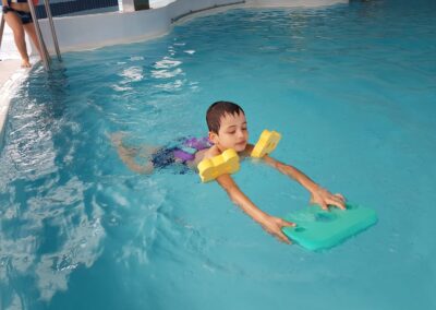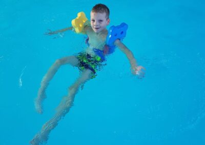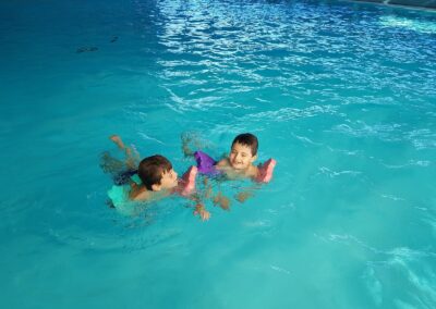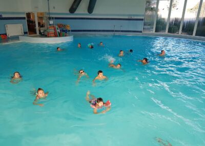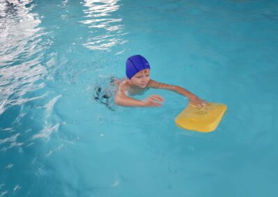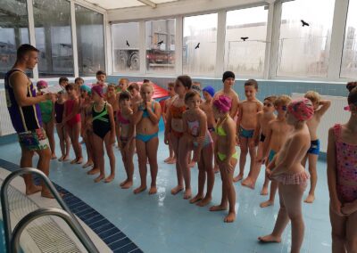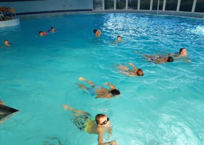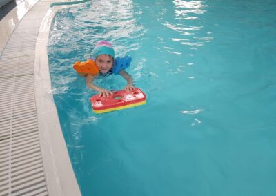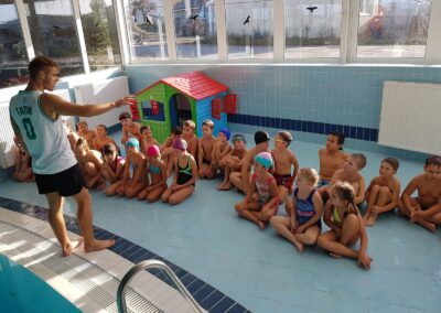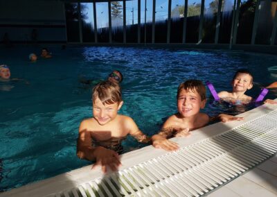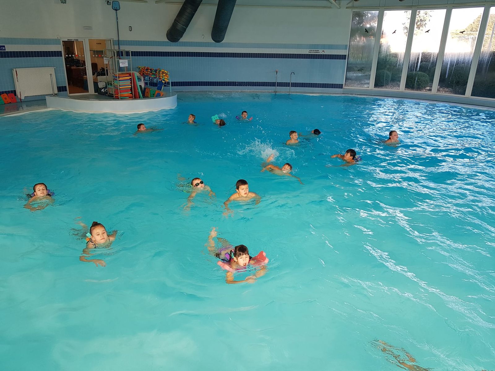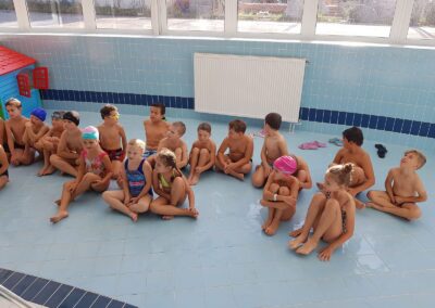 Dne 1. 10. 2021 nám začala výuka plavání, na kterou jsme se těšili. V první lekci byly děti roztřízeny do skupin dle dovedností. Zdatnější plavci brázdili hluboké vody hned od začátku. Ostýchavější a neplavci si na vodu zvykali v menší hloubce a pod vedením zkušených plavčic a plavčíka překonávali strach. Odměnou za tvrdý trénink byly hry ve vodě a volná zábava. V bazénu všem vždy pořádně vyhládne, a tak přijde vhod svačinka v podobě párku v rohlíku nebo jiných cukrovinek zakoupených v místním občerstvení.