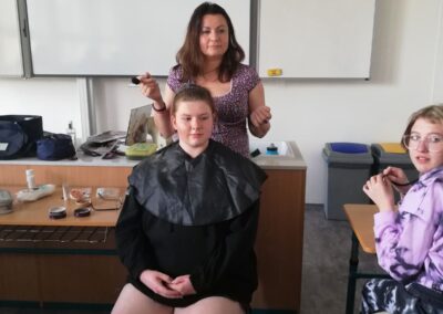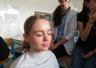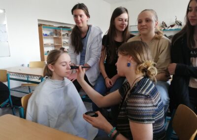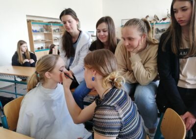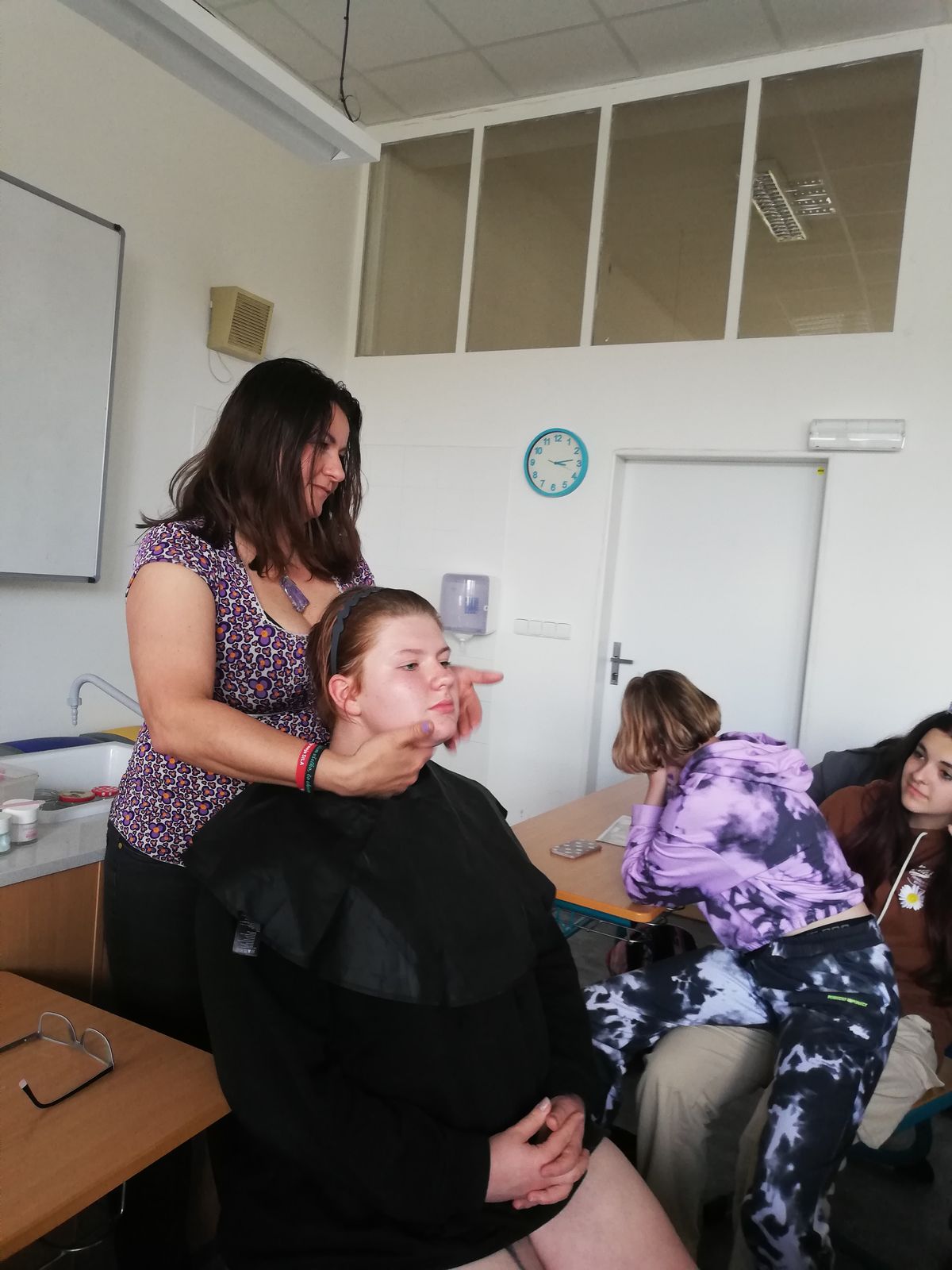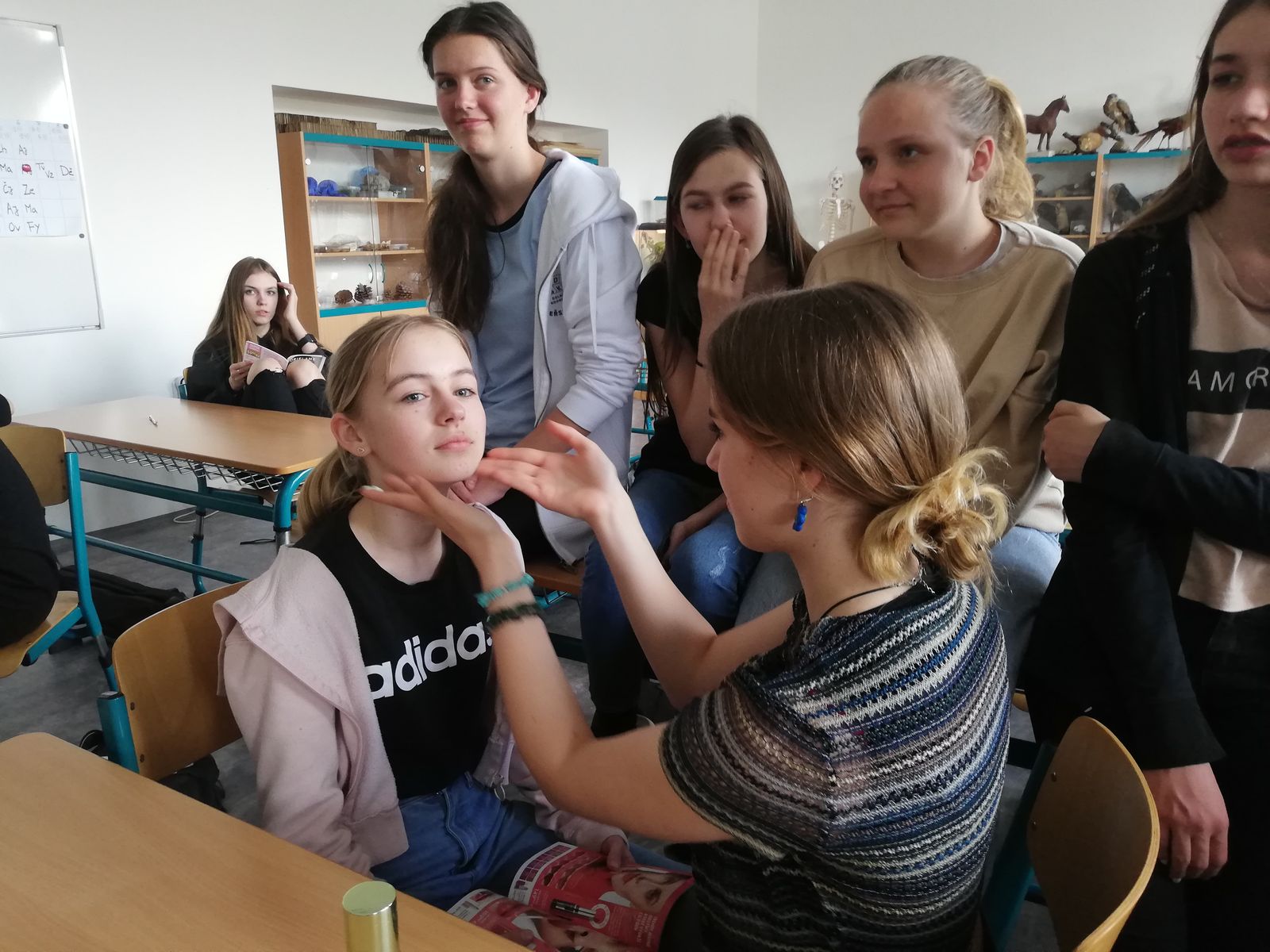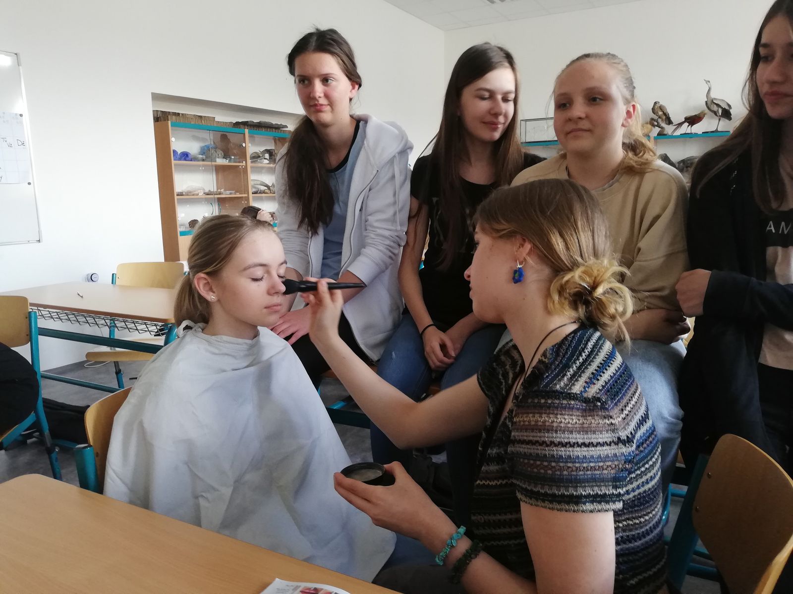 V úterý 9. 5. proběhla přednáška pro dívky 8. ročníku na téma „péče o pleť“. Přednáška navazuje na téma „hygiena dívek v období dospívání“ v rámci předmětu výchova ke zdraví. Naši školu navštívila vizážistka Veronika Minaříková, která dívkám radila, jak se starat o pleť v období dospívání. Přednáška byla zaměřena především na čištění pleti s názornou ukázkou. Dívky měly i možnost si vyzkoušet některé přípravky na čištění pleti. Druhá část přednášky byla věnována dennímu decentnímu líčení a dívky měly možnost si opět vzájemně vyzkoušet líčení podle instrukcí zkušené vizážistky.
