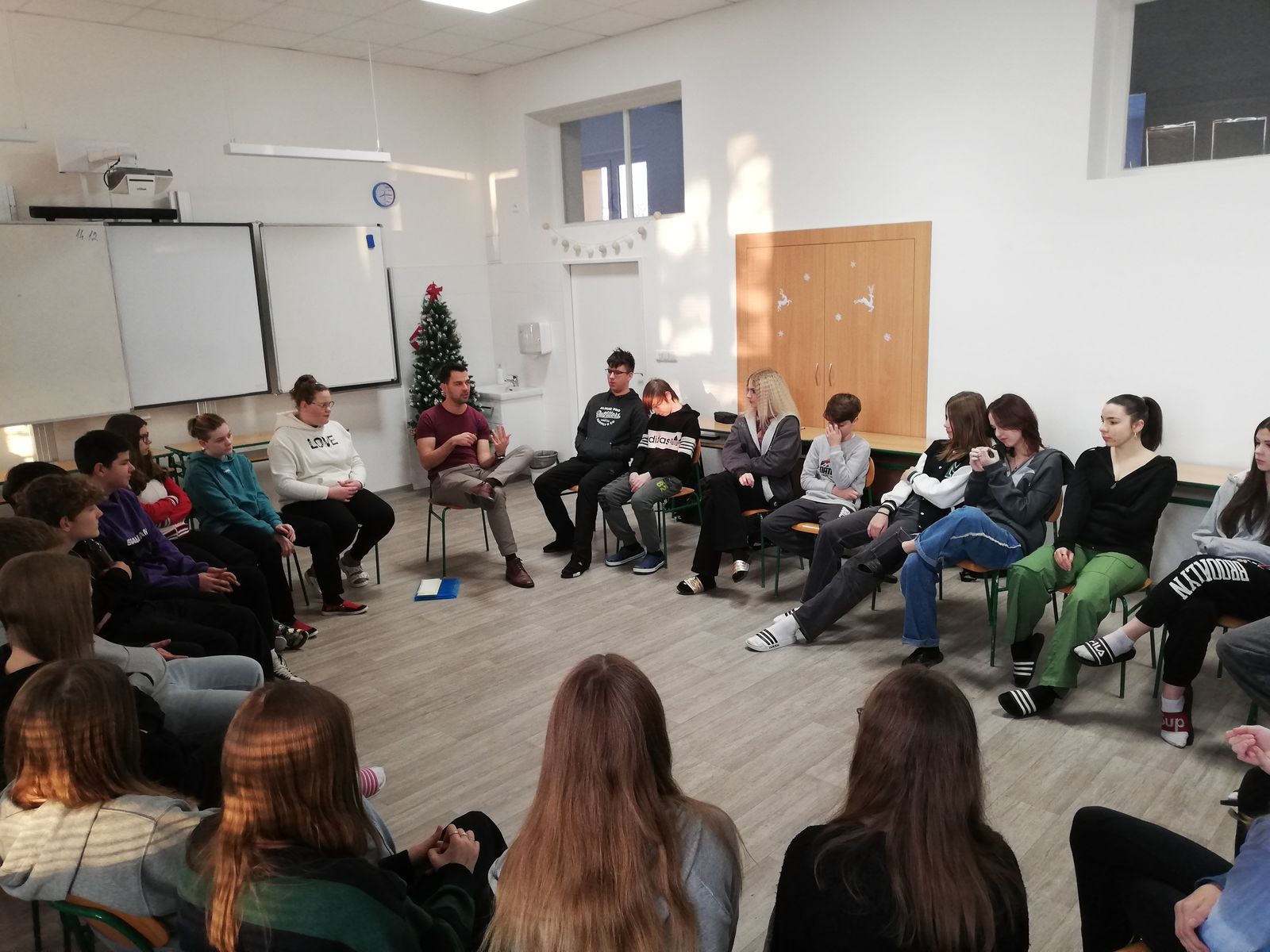 V úterý 19. prosince se v 8. a 9. třídách uskutečnil preventivní program na téma psychohygiena, který byl zaměřen na strategie a návyky, které pomáhají žákům a žákyním s jejich duševním zdravím. Dále se program zabýval tématy jako je spánková hygiena a vliv sociálních sítí na duševní pohodu. Tento preventivní program byl zajištěn společností Podané ruce. Pevně věříme, že žáci a žákyně si z úterního sezení odnesli užitečné poznatky.
