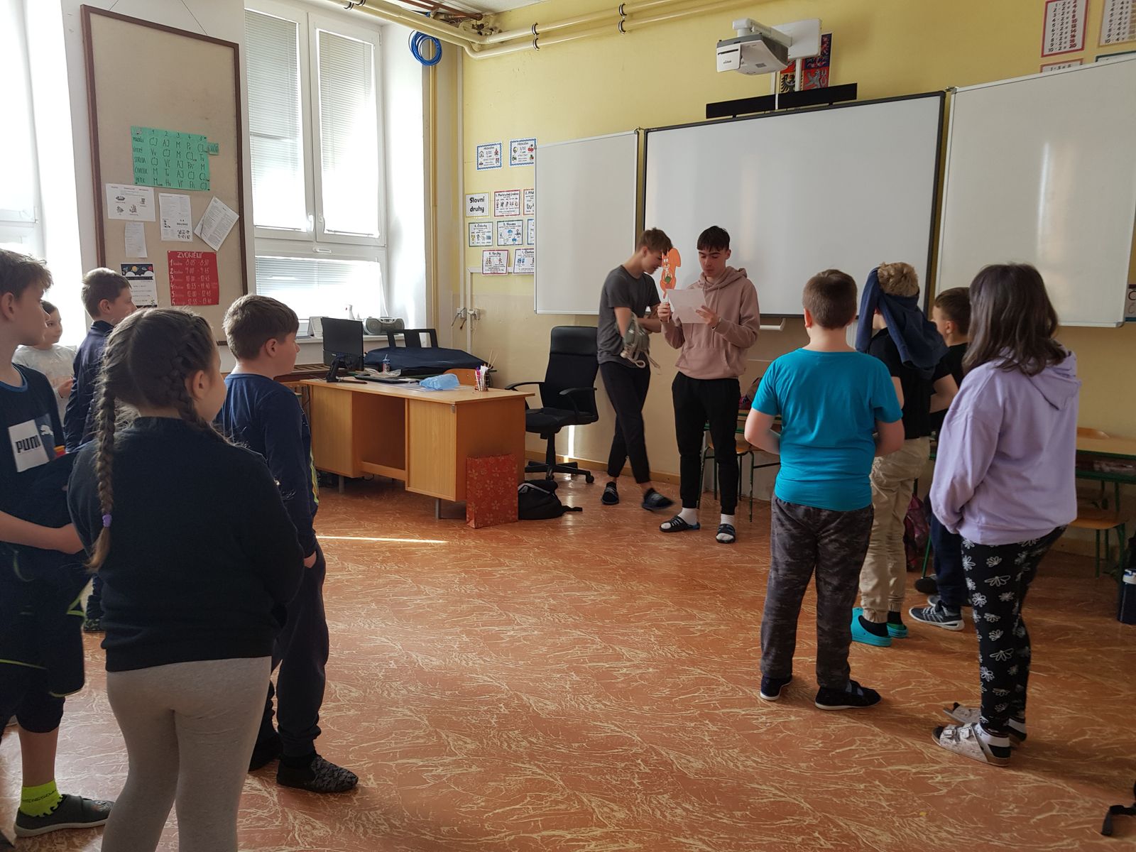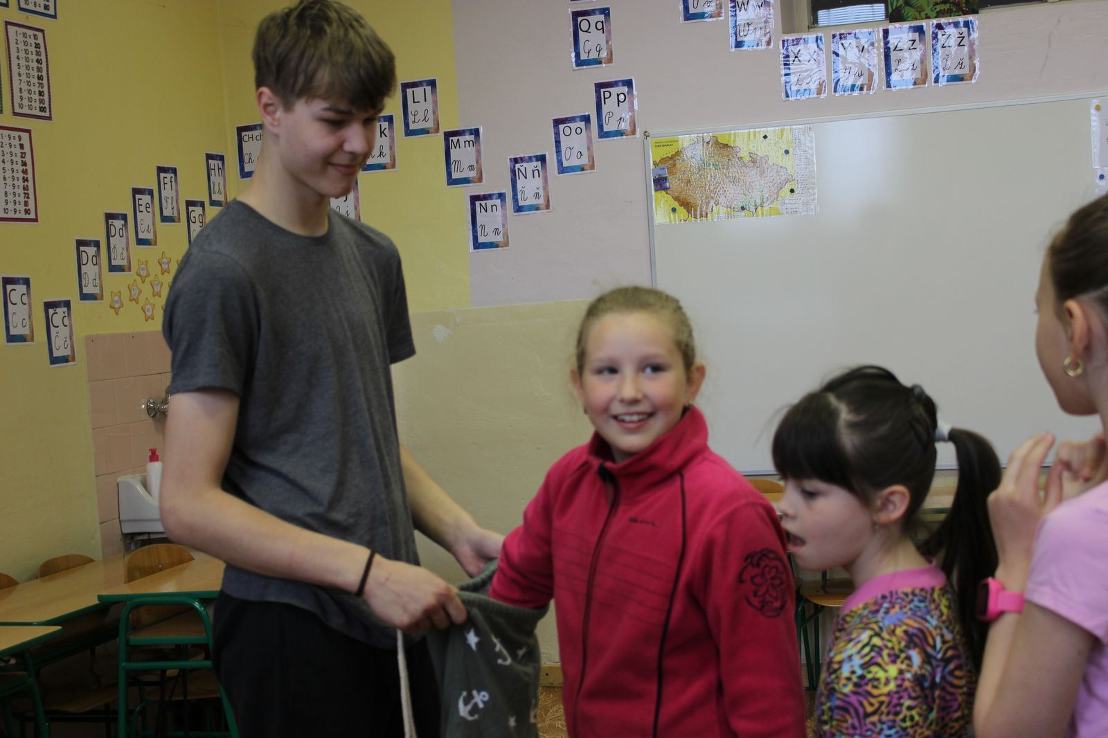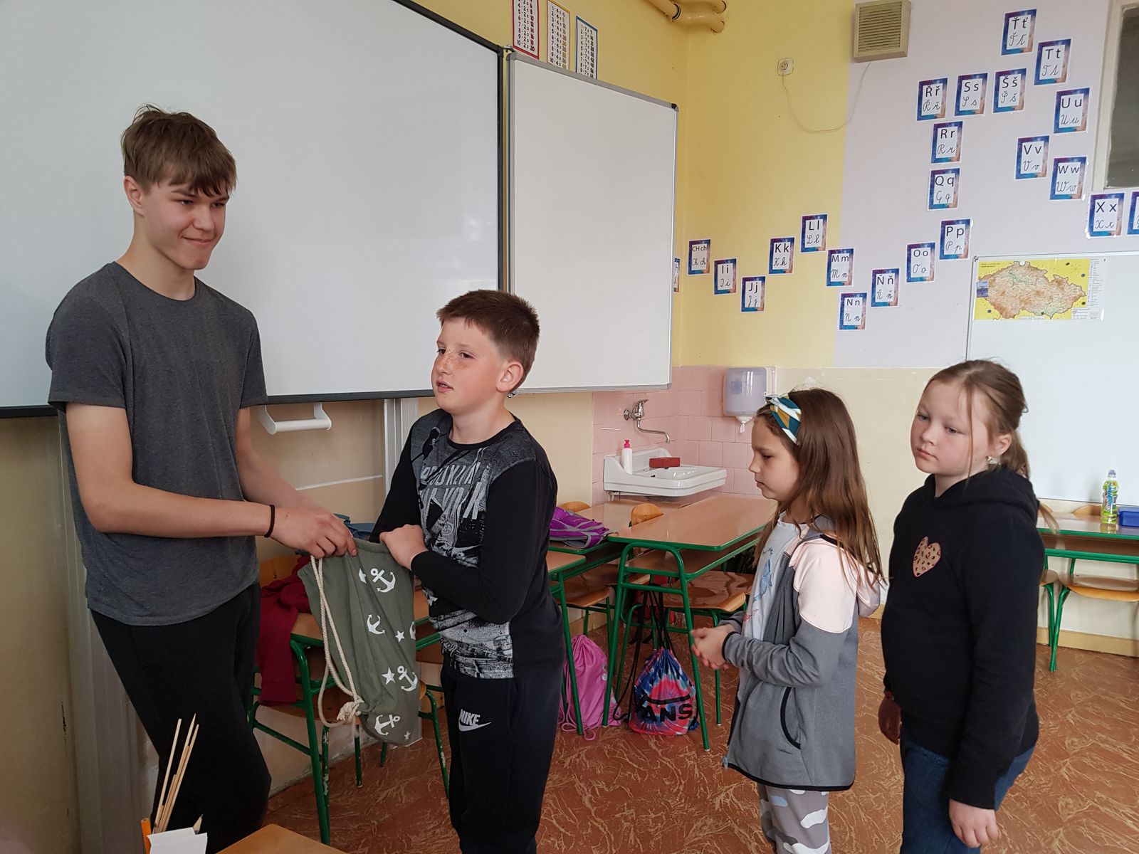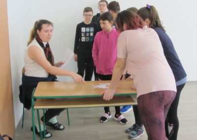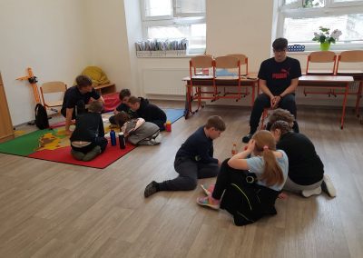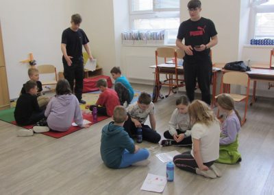 Každé stanoviště měla na starost dvojice žáků devátého ročníku. Zadávali a hodnotili jednotlivé výkony svých mladších spolužáků. Tohoto úkolu se zhostili velmi zodpovědně, za což bychom je chtěli velice pochválit.