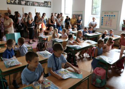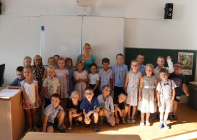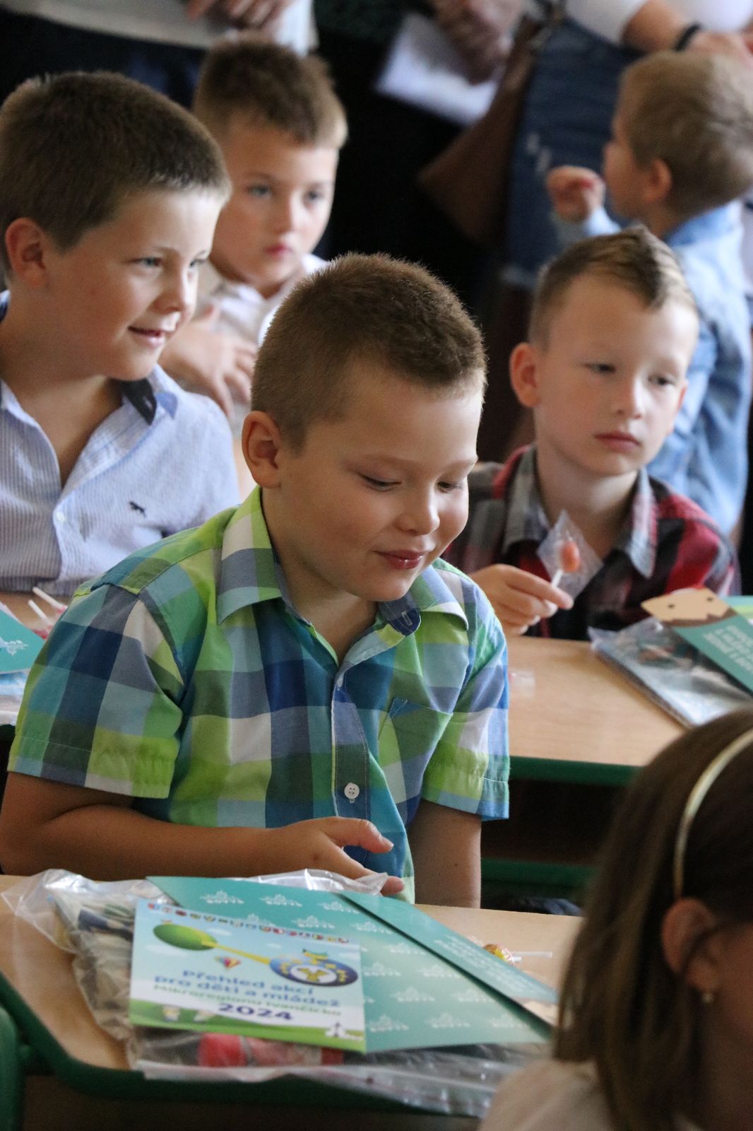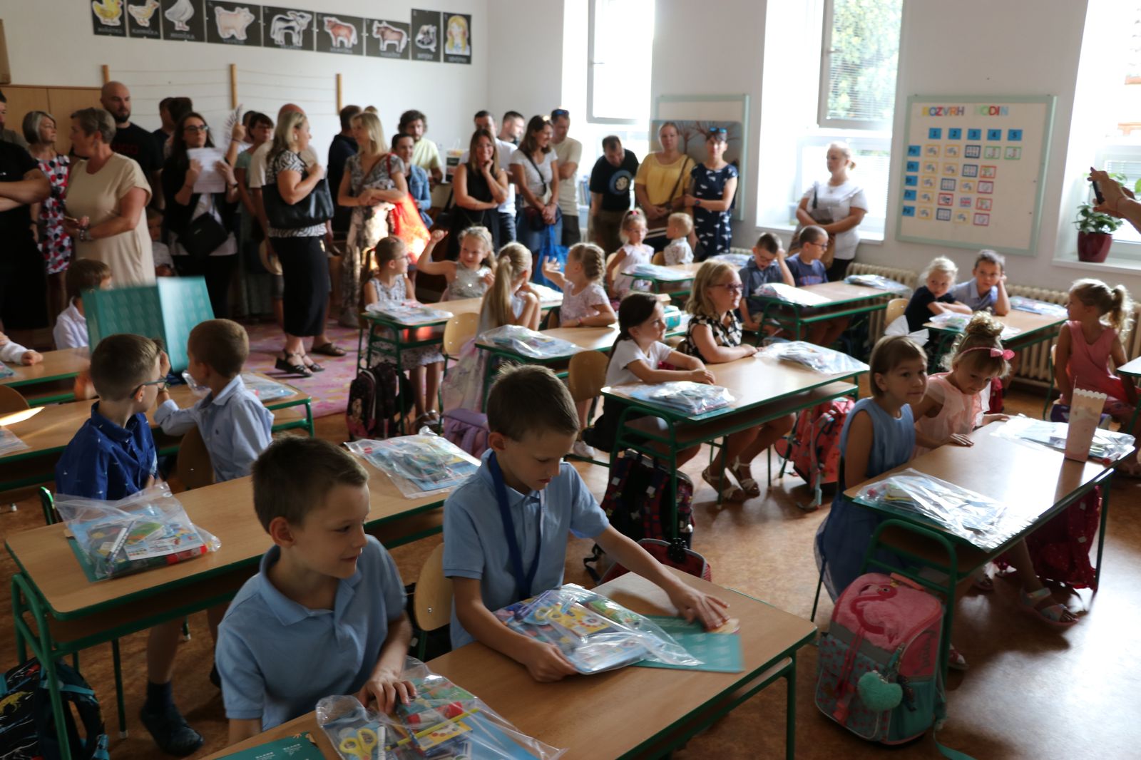 Pondělí 2. 9. 2024 byl významným dnem pro 48 prvňáčků naší školy. S aktovkou na zádech a úsměvem na rtech usedli do lavic a uslyšeli své první zvonění na Barborce. Doprovodili je rodiče, kteří jim budou určitě rádi se školními povinnostmi pomáhat. Kromě třídních učitelek přišli děti přivítat pan ředitel Radim Dubčák, paní zástupkyně Dagmar Burešová spolu s paní starostkou Lenkou Žikešovou a panem místostarostou Davidem Hrbáčkem. Věříme, že se dnešní příjemná atmosféra přenese i do dalších školních dní a společná práce se nám bude dařit.