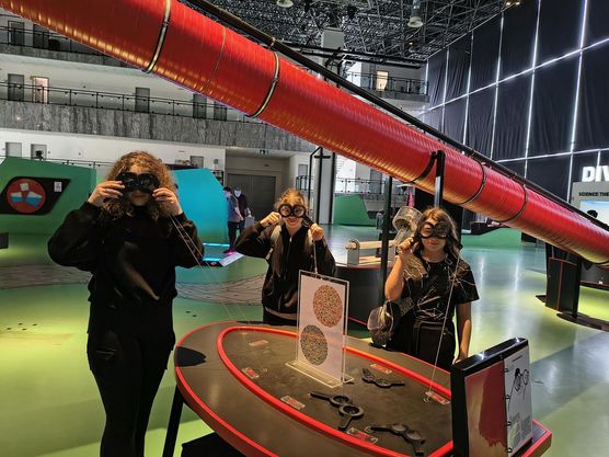 Závěrečnou a neméně poutavou částí exkurze byl volný pohyb po expozici, během kterého si mohli vyzkoušet a prozkoumat řadu exponátů zobrazujících fyzikální, biologické i matematické jevy.