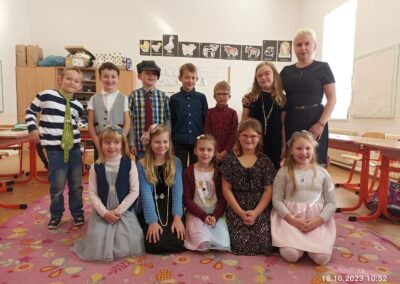 Ve třídě 3.B se v tento den naučili uvázat kravatu, což byl téměř nadlidský výkon, i s pomocí videa. Nakonec se jim uzel na kravatě podařil. Hodinu hudební výchovy věnovali hudbě Prví republiky a zatančili si Charleston. Zapojila se téměř celá třída a zjistili, že je potřeba mít dobrou fyzičku, aby mohli tento tanec správně zatančit. Elegance a noblesa té doby je skvěle naladila i na další akce.