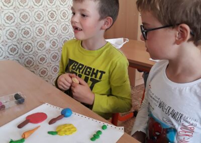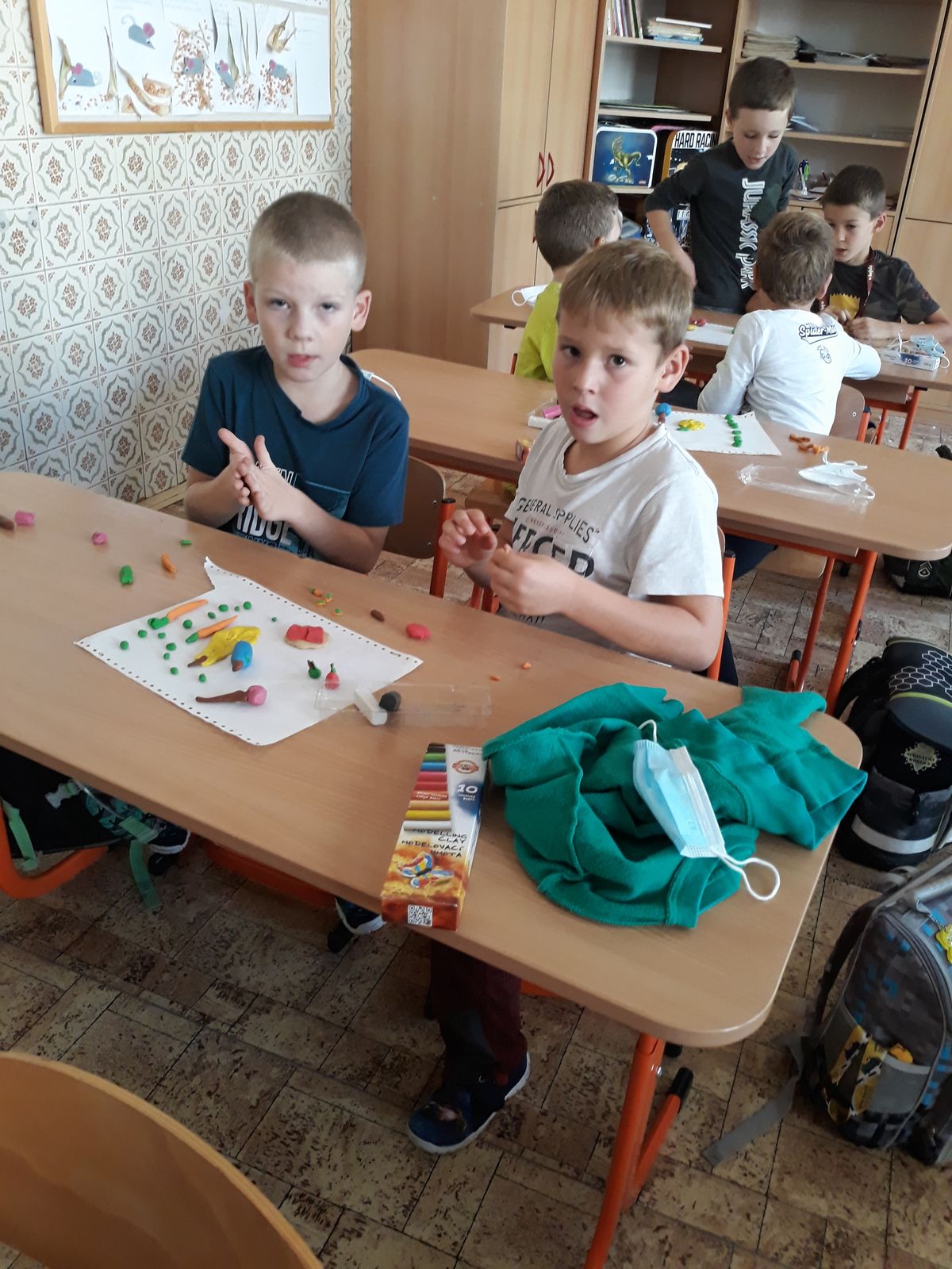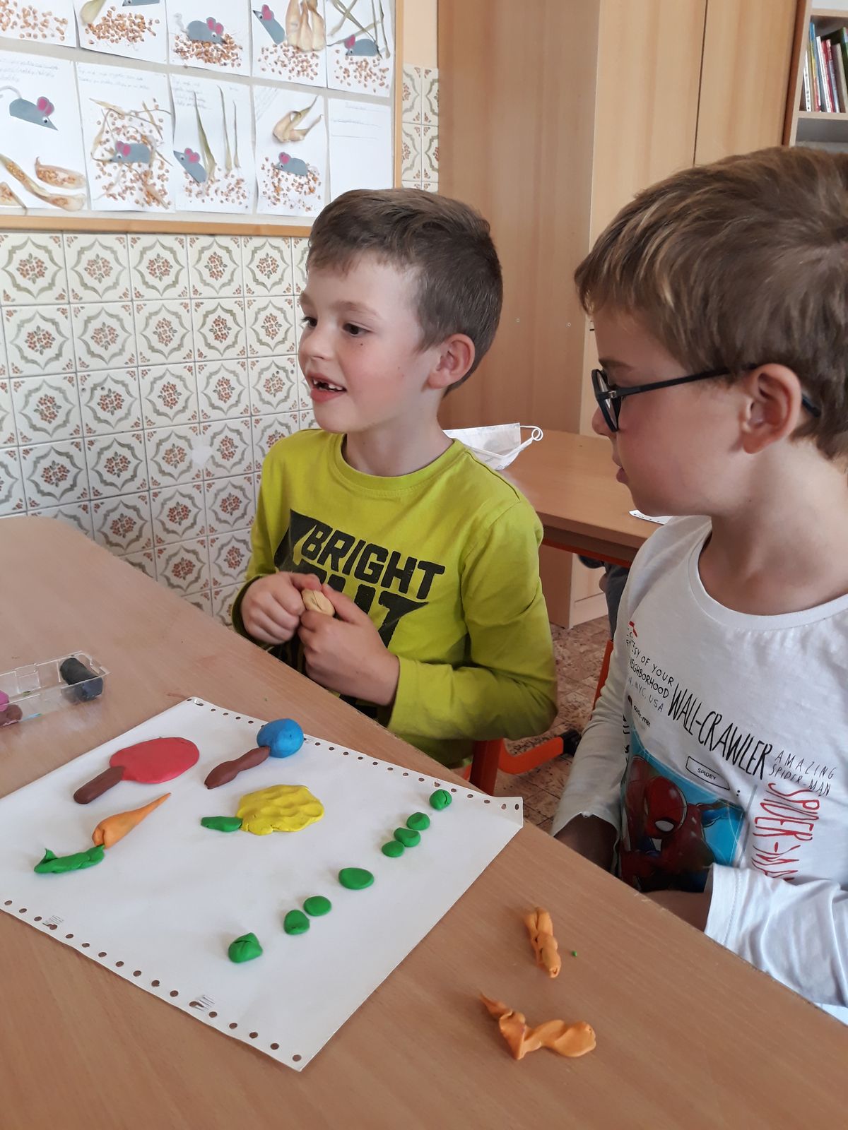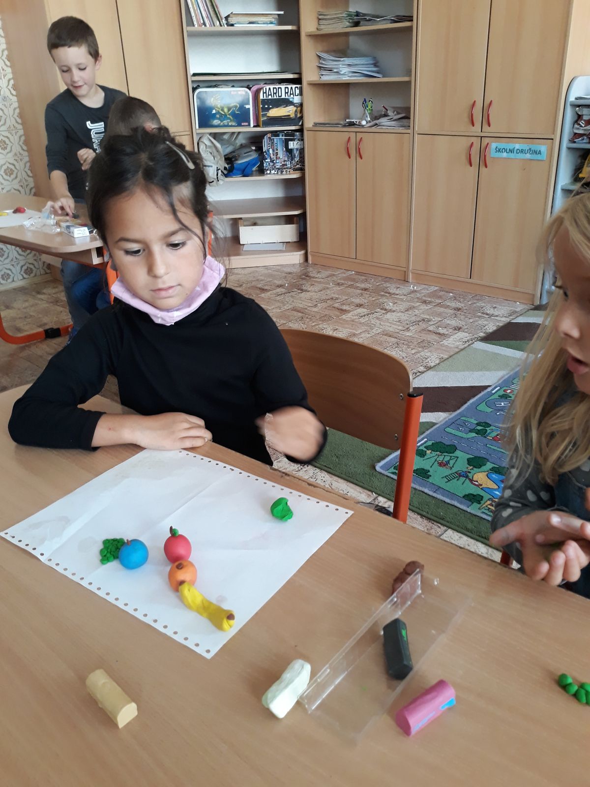 Ve čtvrtek 23. 9. 2021 jsme s dětmi ze 3. oddělení tvořili ovoce i zeleninu z plastelíny. Některé děti zpočátku nevěděly, jak a co mají vymodelovat. Jiné děti neváhaly ani na chvíli. Nakonec se všechny děti s nadšením pustily do práce. Probíhající modelování a výtvory můžete vidět na fotografiích.