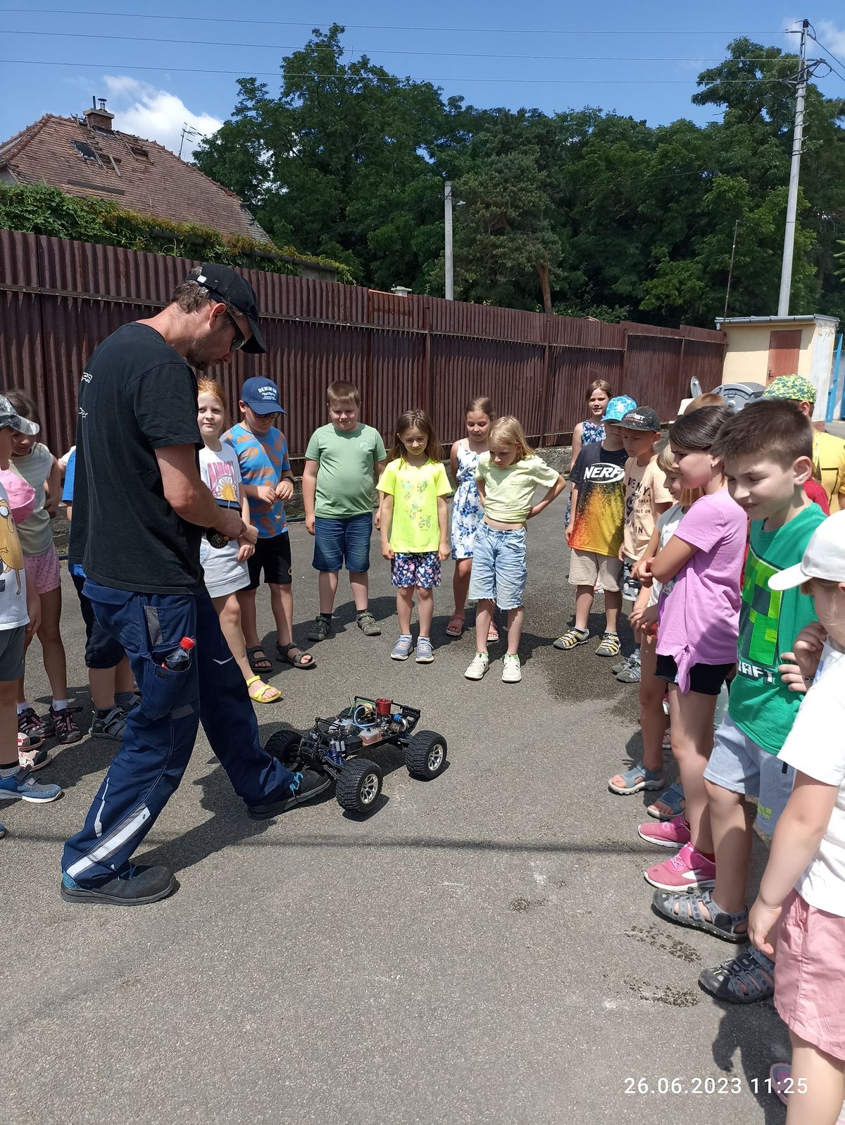 Děkujeme panu Trechovi, který nás pozval na ukázku svých modelů letadel a aut. Dětem 1.A, 2.B a 2.C ukázal, jak je náročné se o ně starat a dovolil jim, aby si samy zkusily, že jejich ovládání není jednoduché. Dokonce si děti mohly každý model osahat a vzít do ruky, přestože se nejedná o levnou záležitost. Více ve fotogalerii.